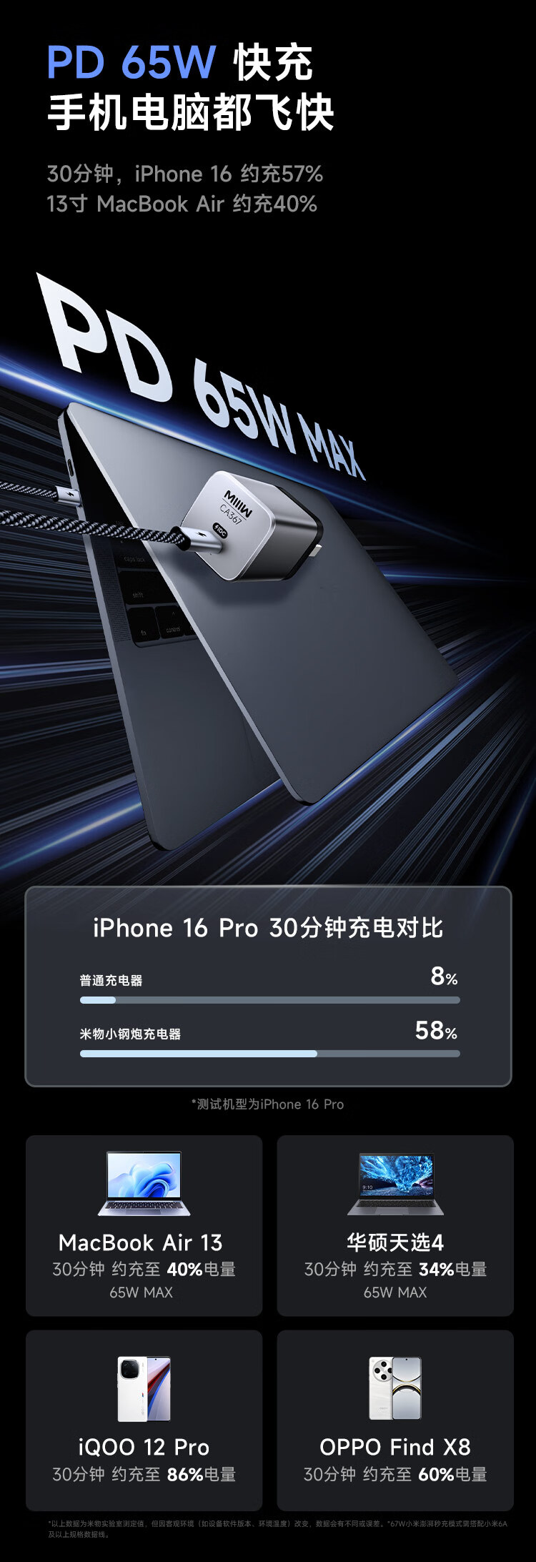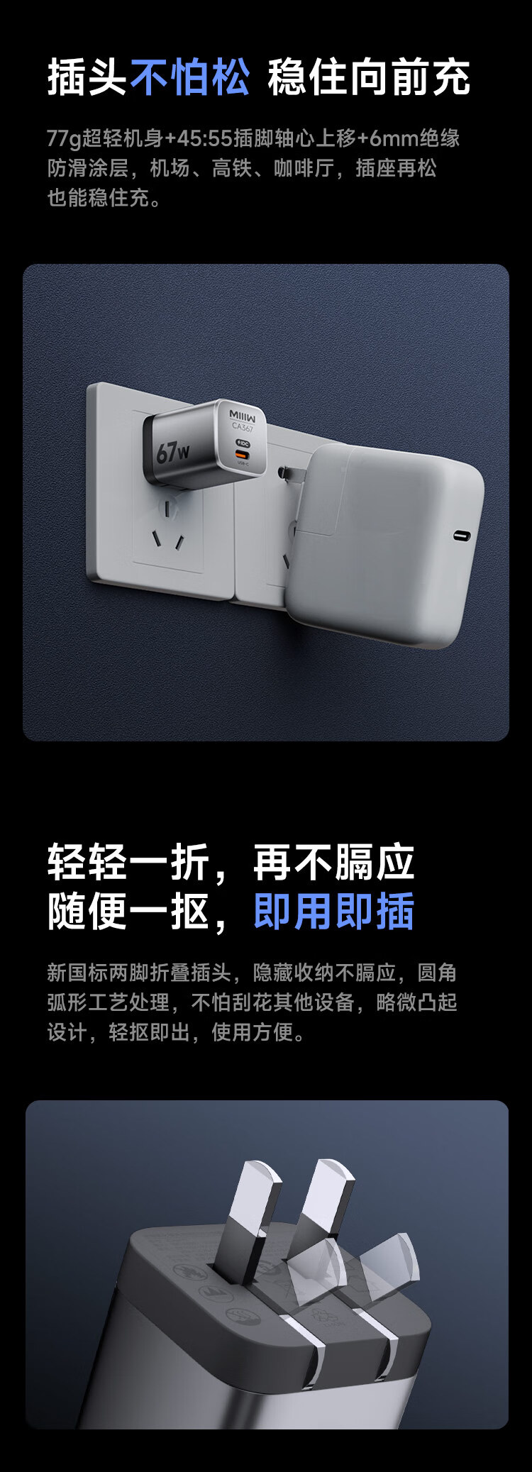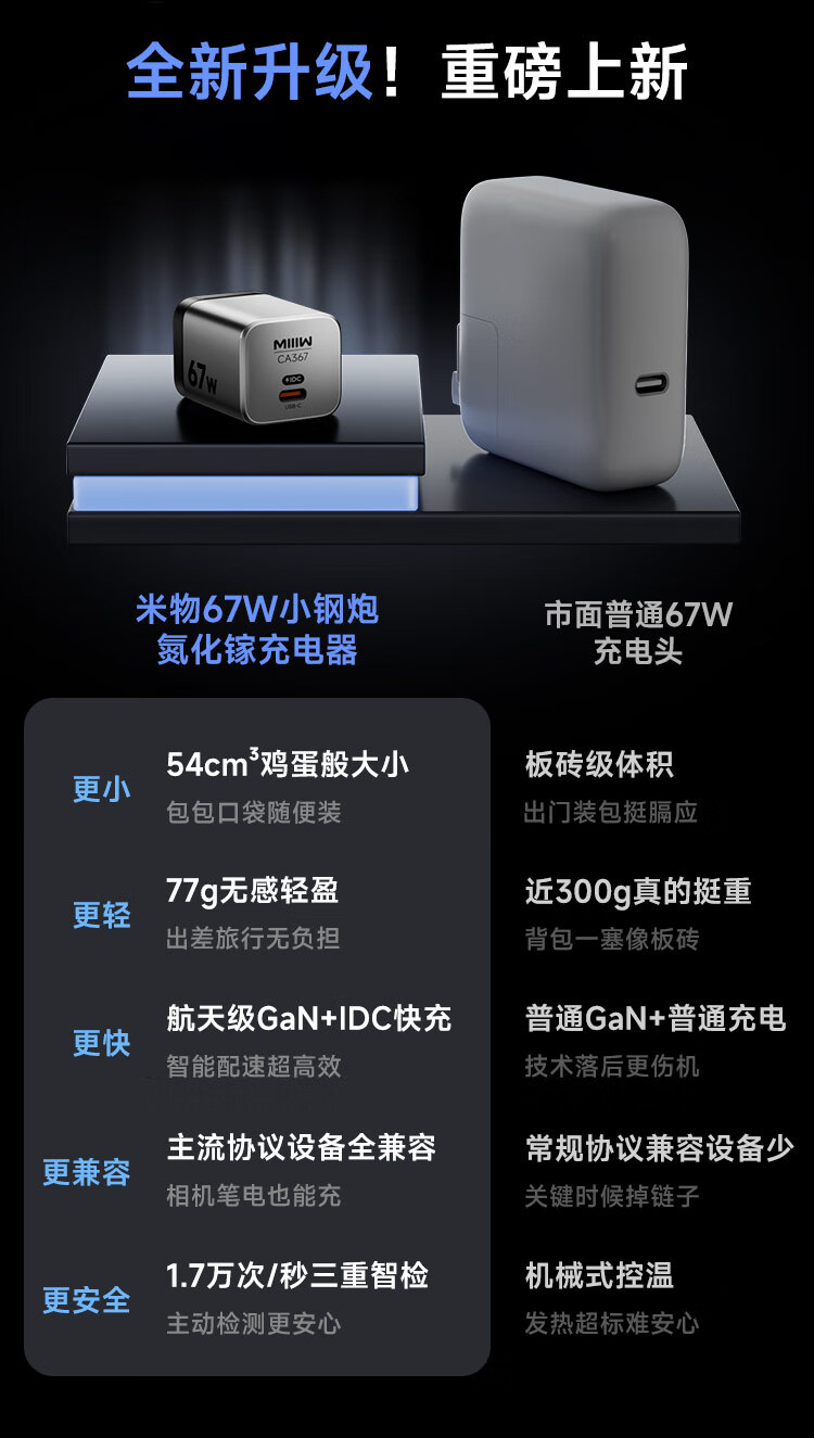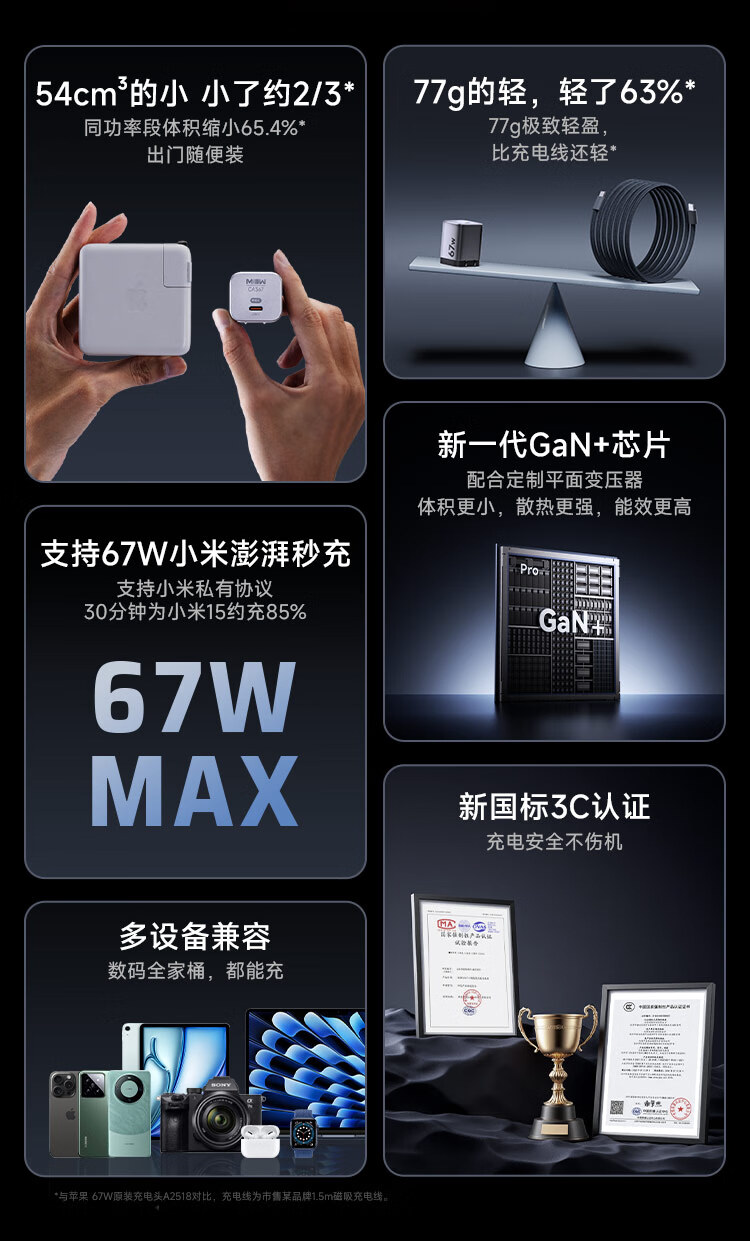 MIIIW米物67W氮化镓小钢炮【新年礼物】type-c快充充电器兼容65W/45W适用苹果/小米 支持小米私有协议