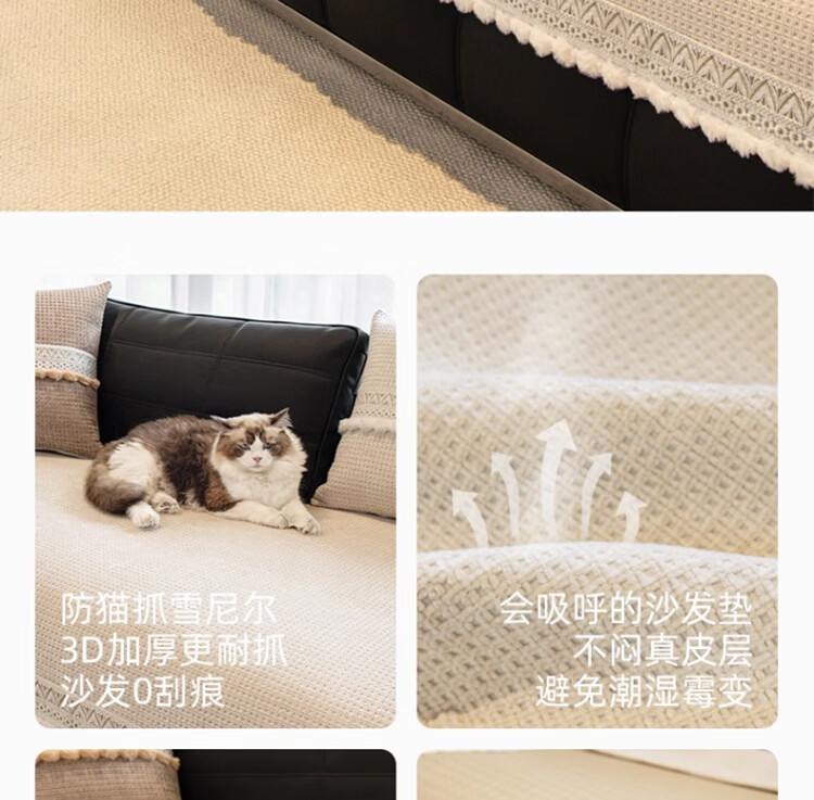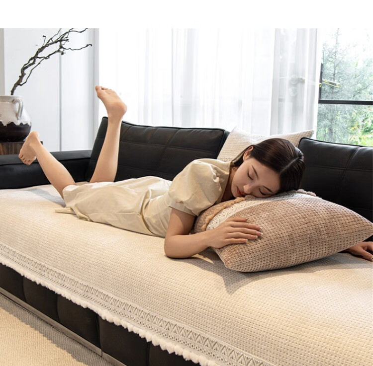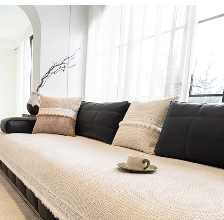 无印良品【皮沙发专用】劳伦斯沙发垫子四季通用2025新款座垫不伤沙发坐垫 和杏-米白 【专为皮质沙发设计】近期热销 70X180cm适合【适合160-180cm的沙发】
