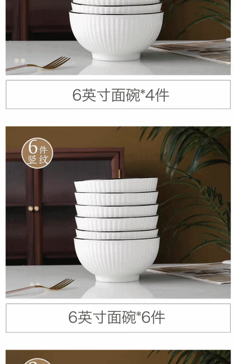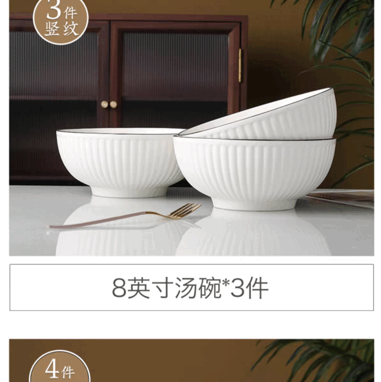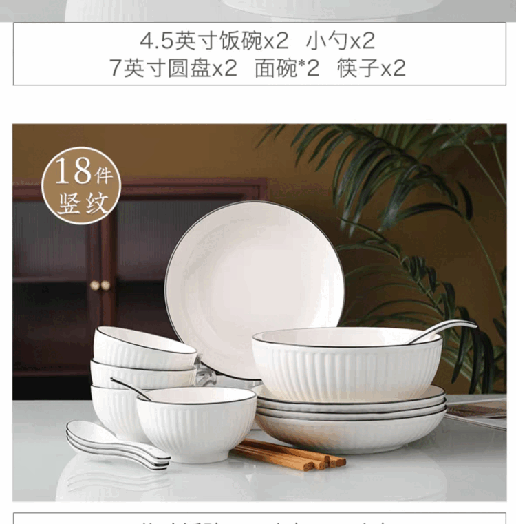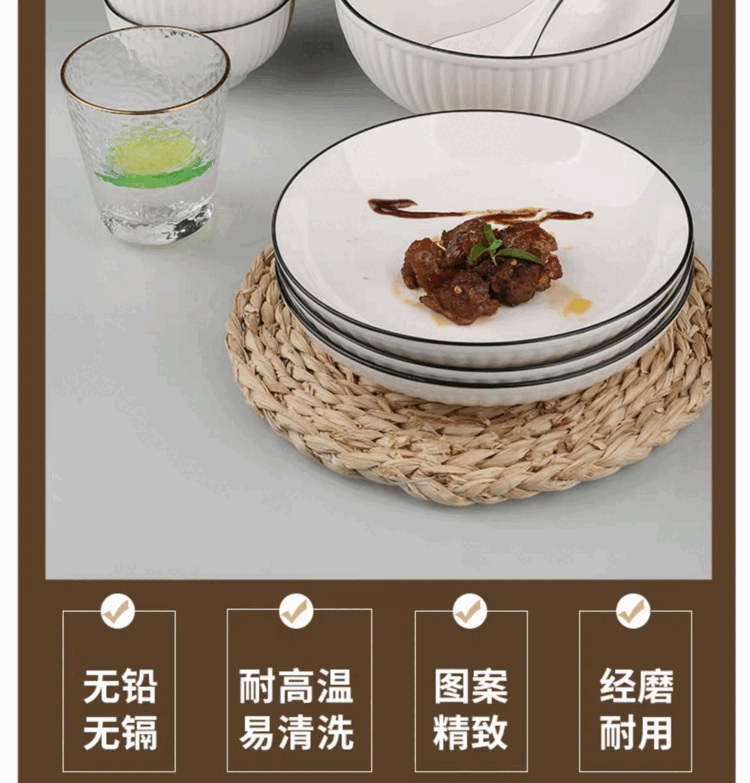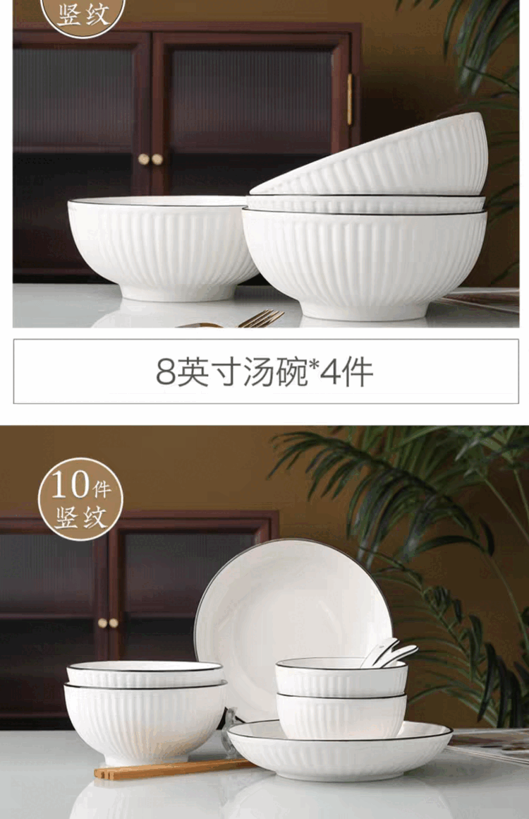 泰禧阁山田竖纹碗盘套装简约日式家用防烫碗筷组合高颜值碗碟子陶瓷餐具 竖纹山田-防烫 1碗1盘