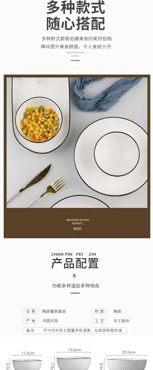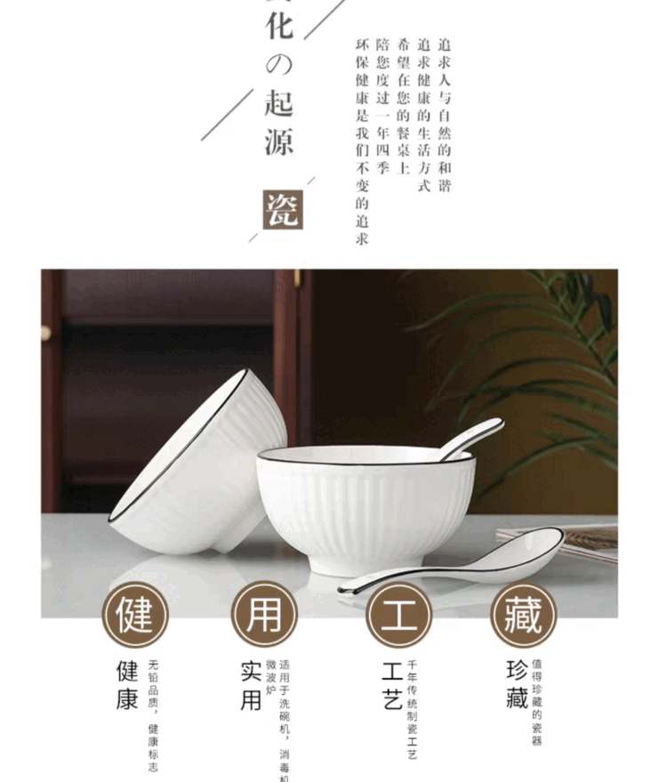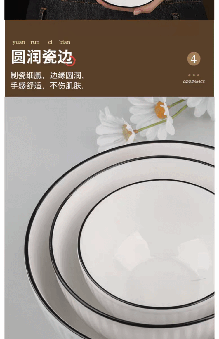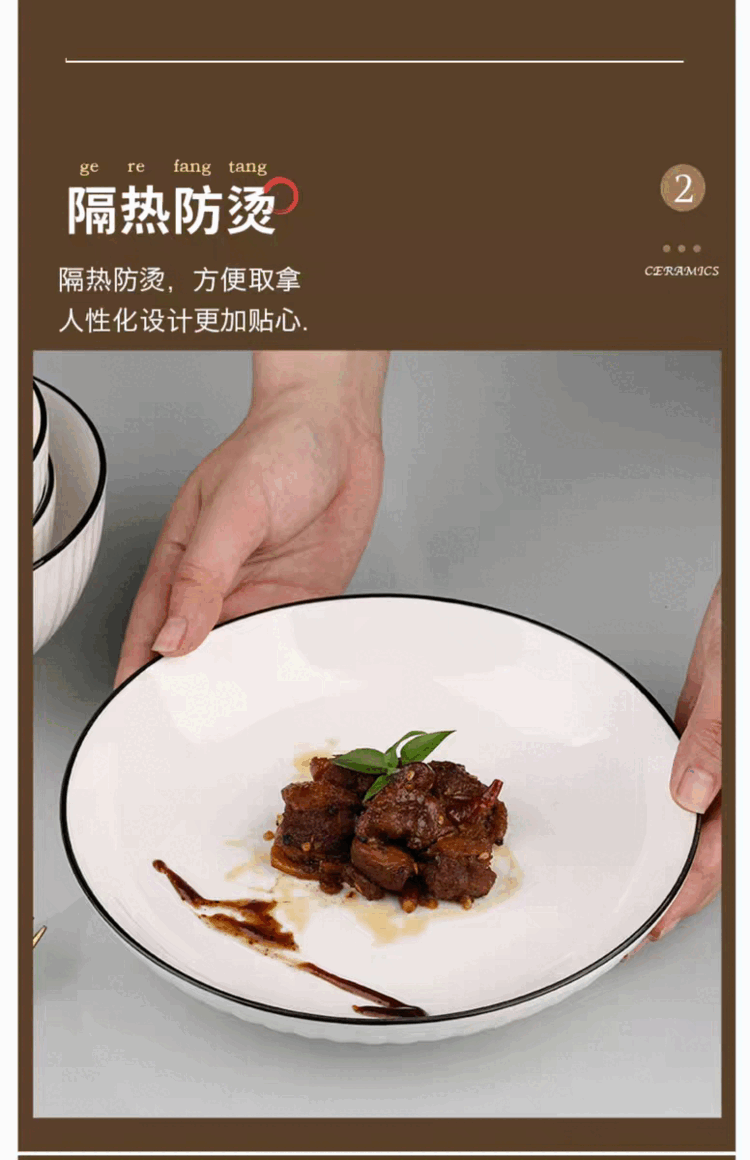 泰禧阁山田竖纹碗盘套装简约日式家用防烫碗筷组合高颜值碗碟子陶瓷餐具 竖纹山田-防烫 1碗1盘