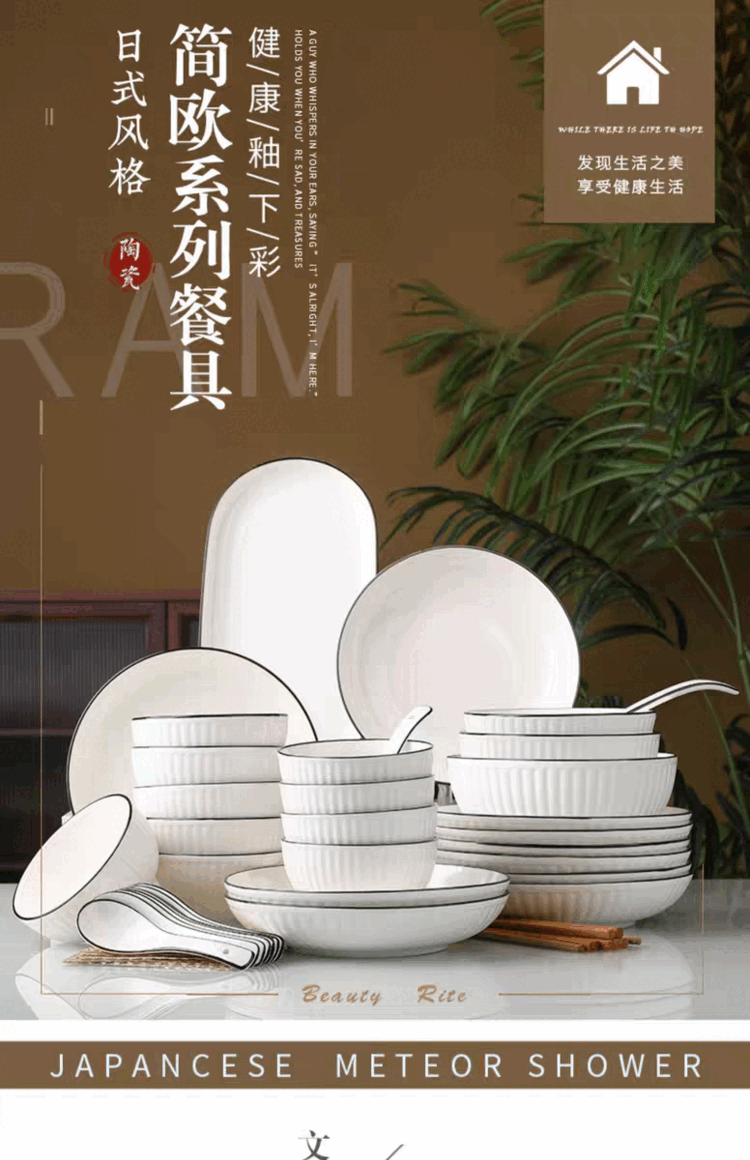 兆瓷景德镇陶瓷餐具送礼碗碟套装家用乔迁新居礼品现代简约高颜值套装 爱情海56件套 无规格