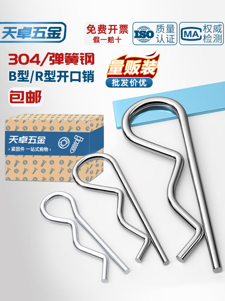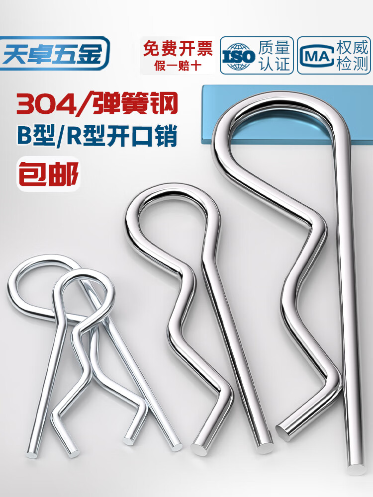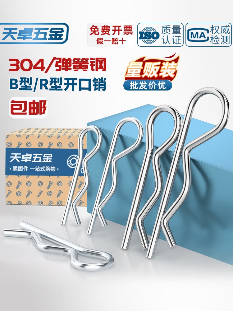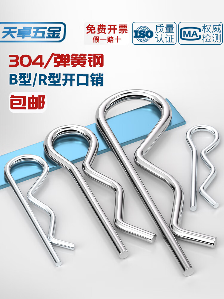 天卓五金B型销R型销弹性闭口开口销不锈钢波浪销R形销子卡销发夹锁销插销 直径1-3套装 (65个) 弹簧钢