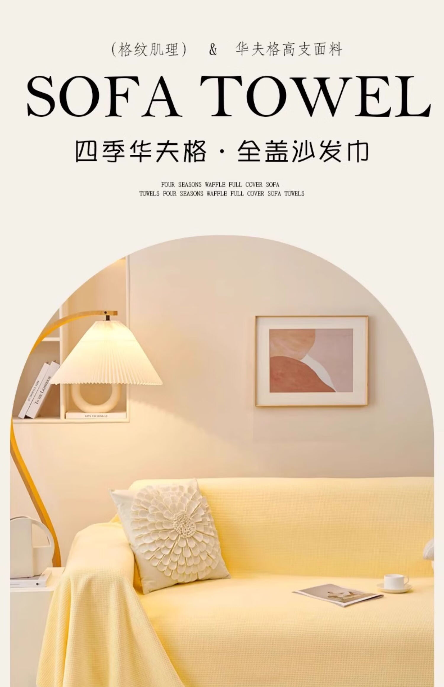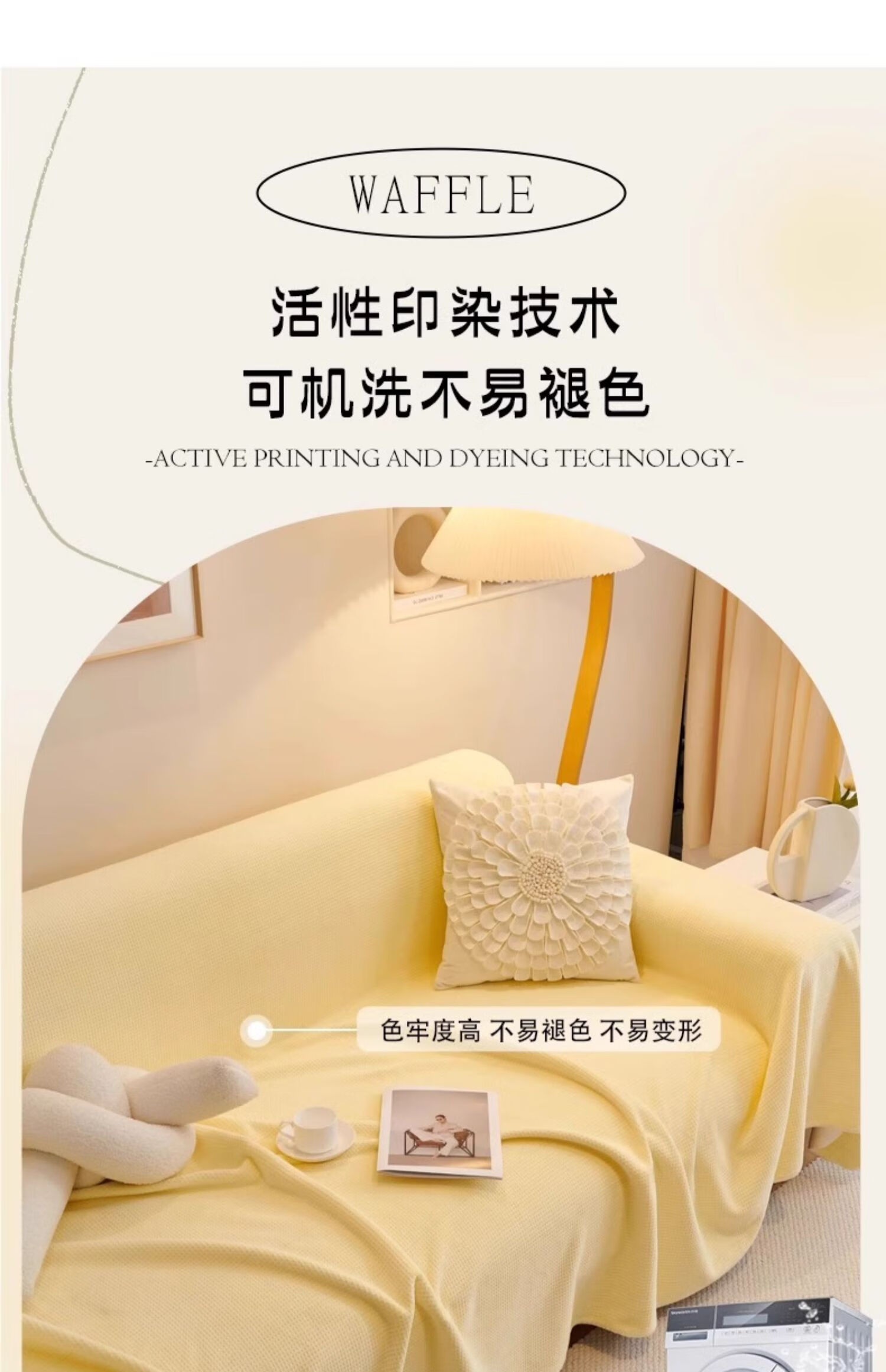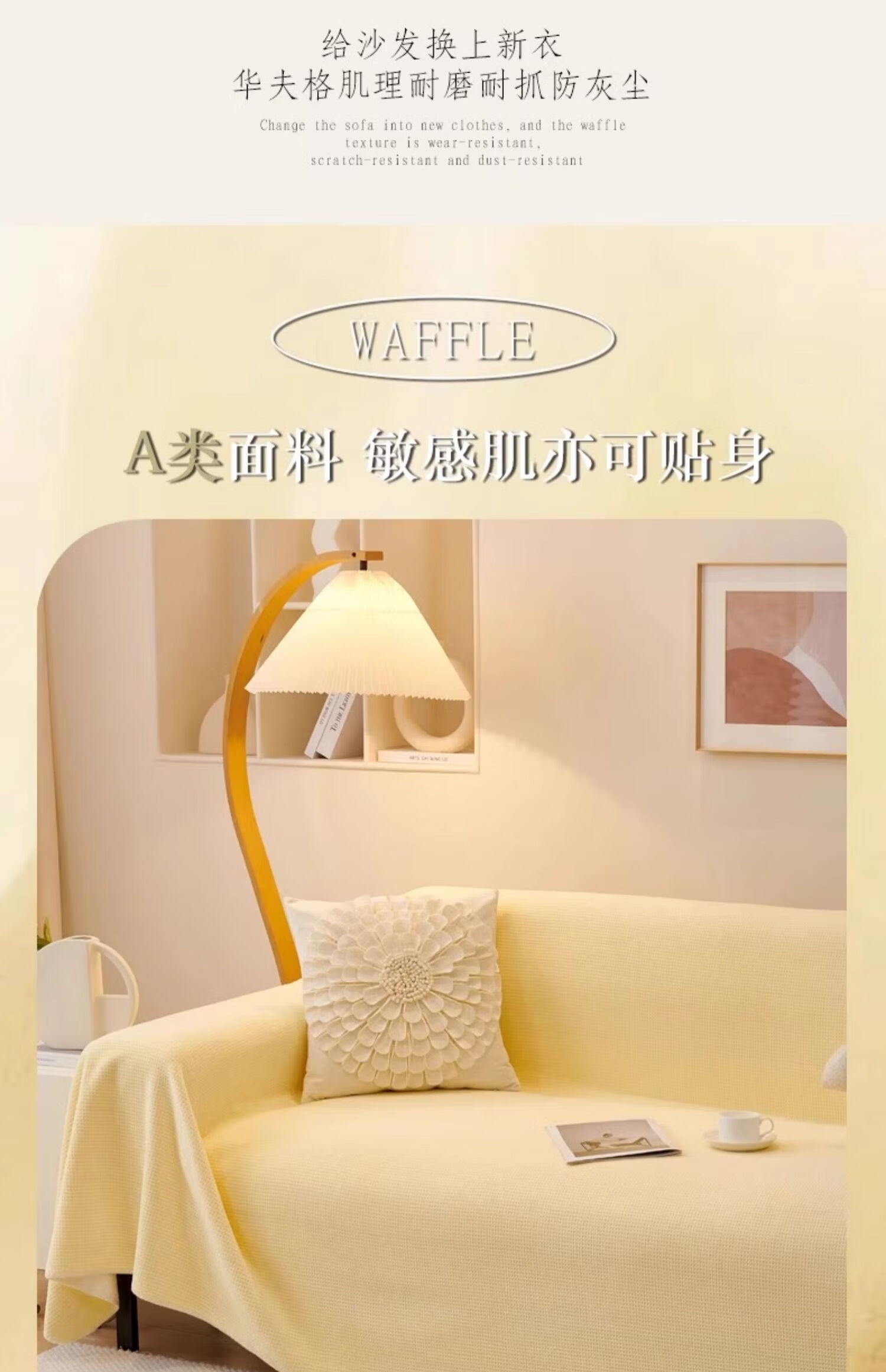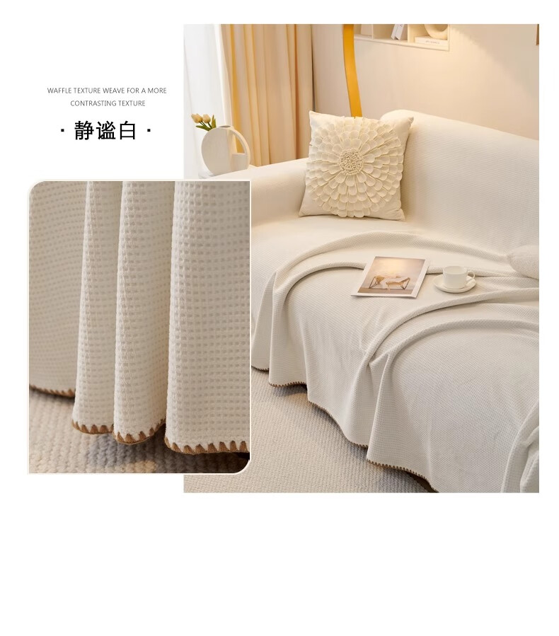 高睿2025新款奶油风沙发套万能沙发罩全包一体式四季通用不粘毛防猫抓 华夫格-素净白【防尘防猫抓+一整张全盖可机洗】 200*130cm【小单人位】