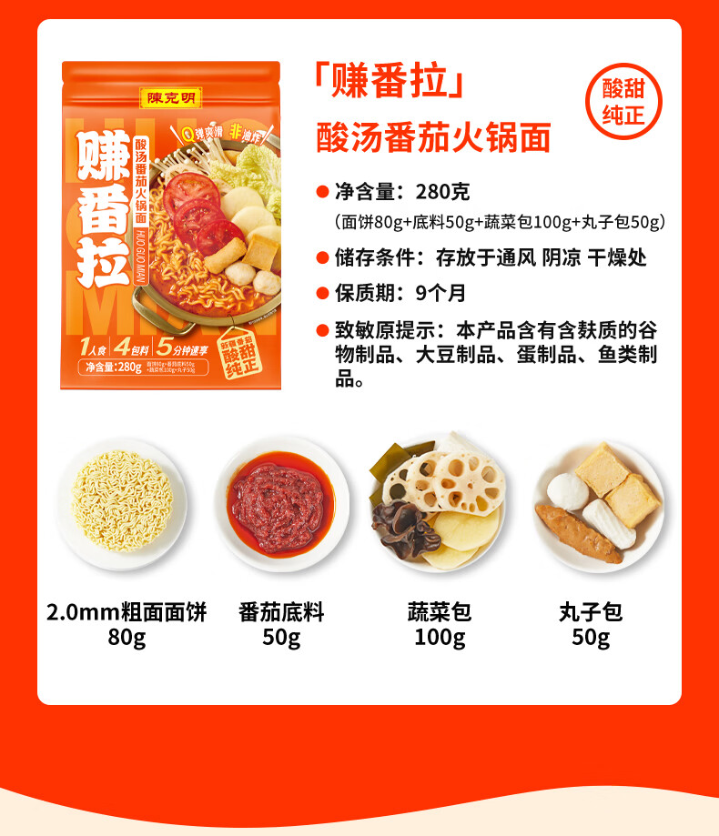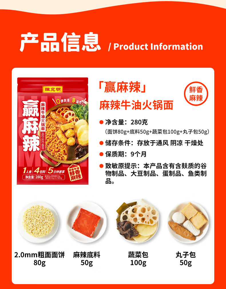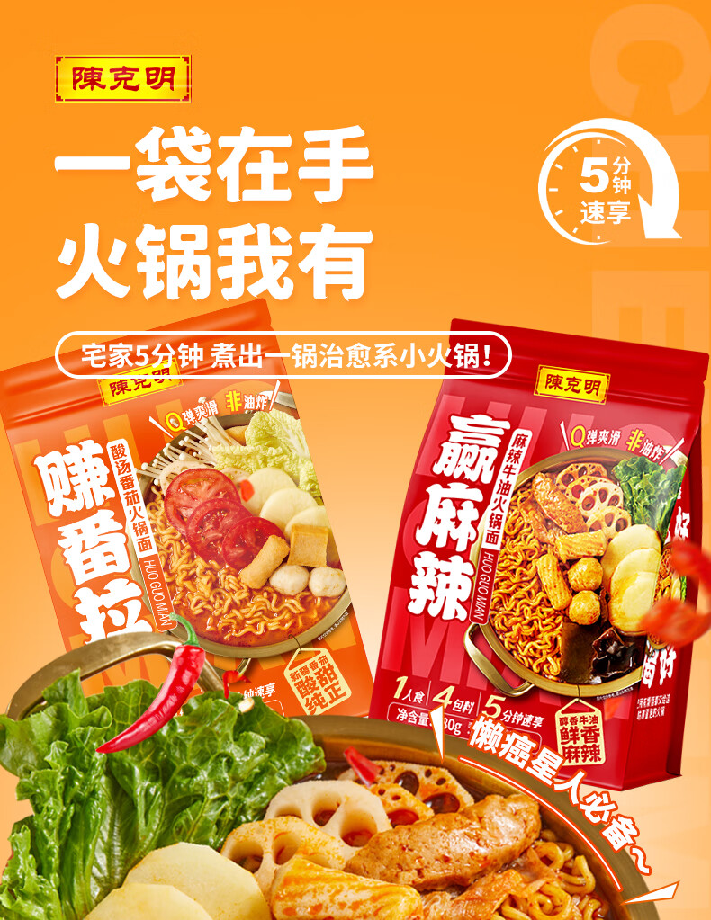 陈克明麻辣牛油火锅面Q弹爽滑非油炸醇香牛油鲜香麻辣280g