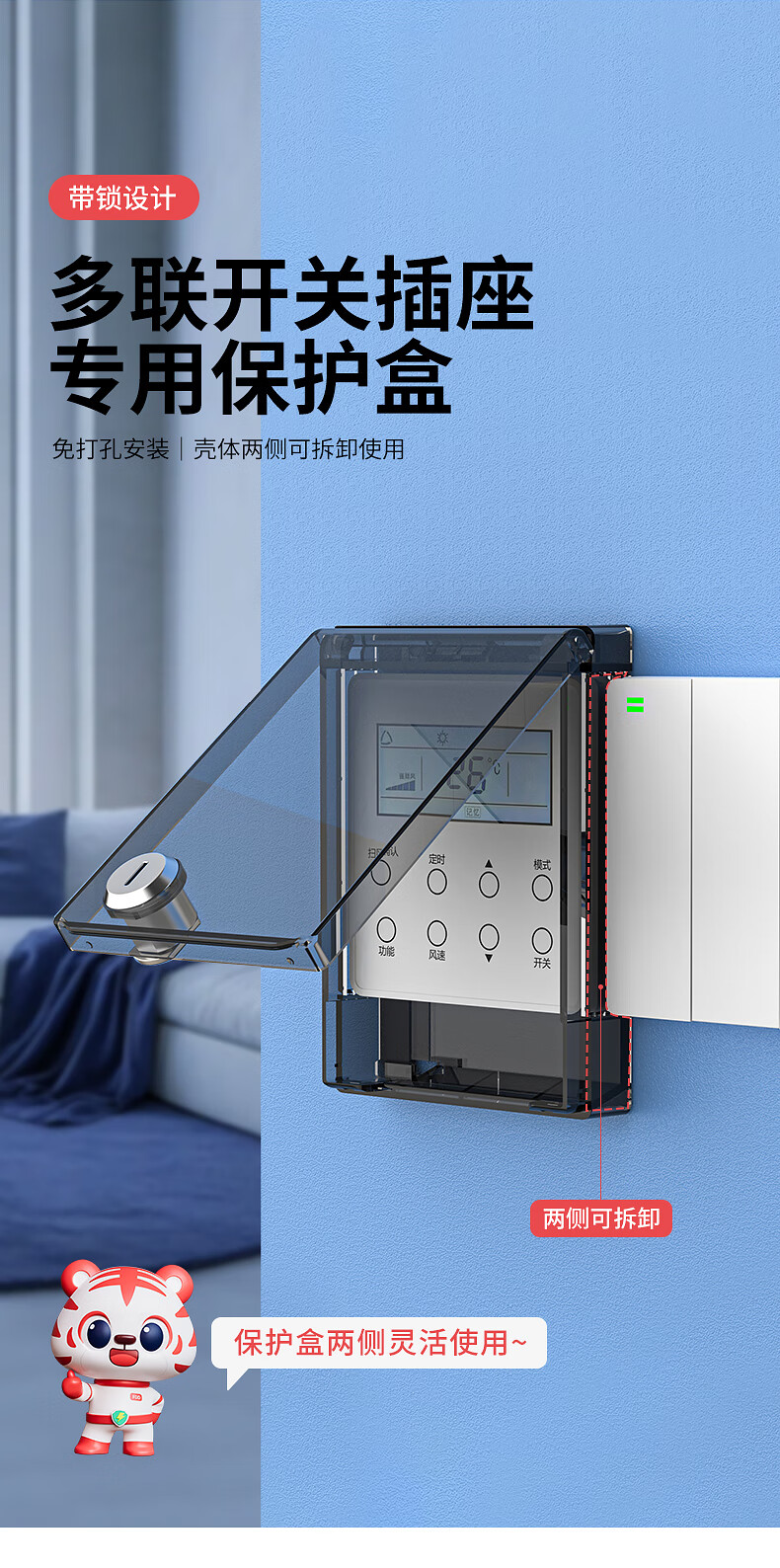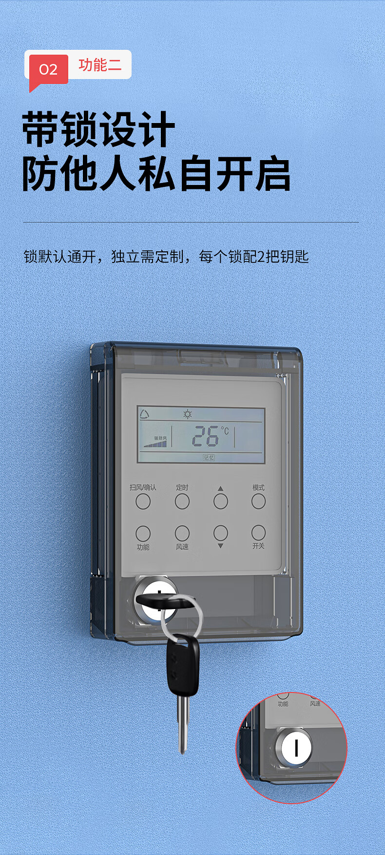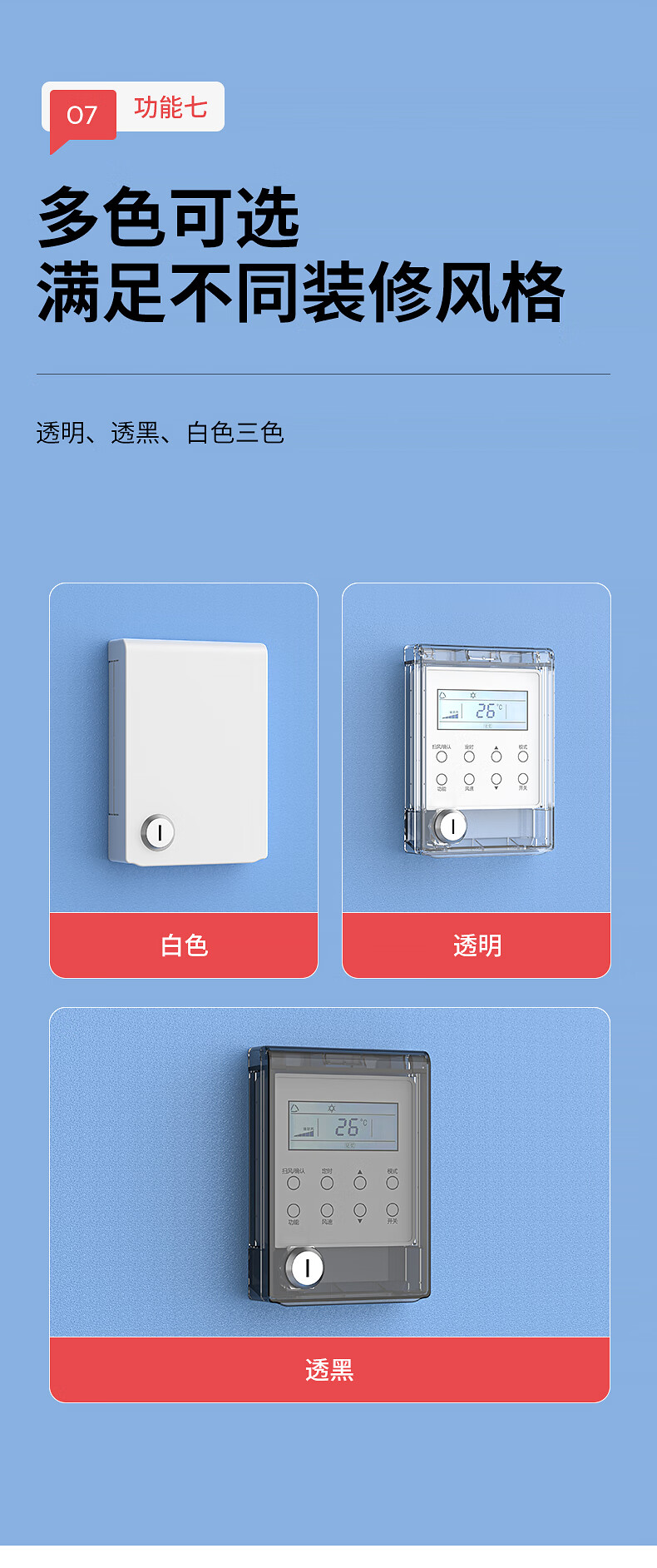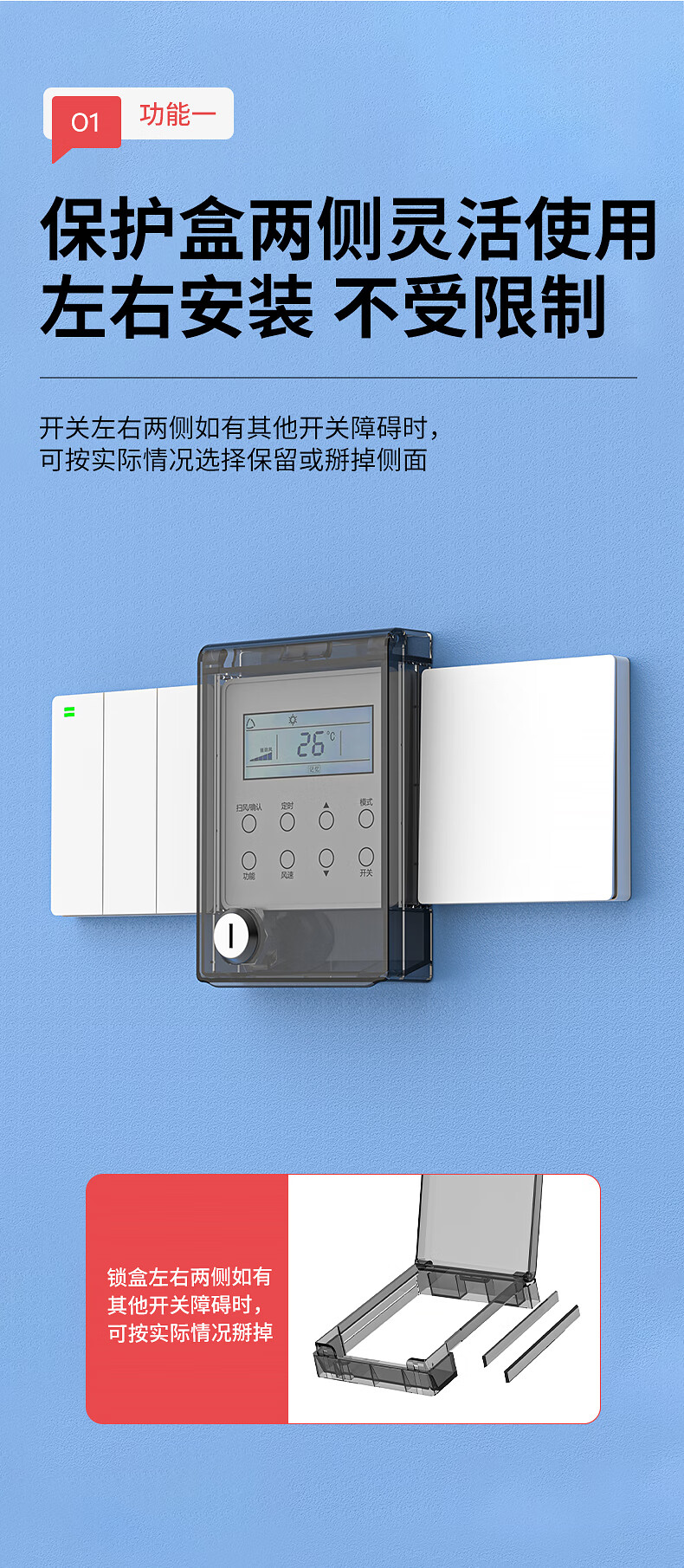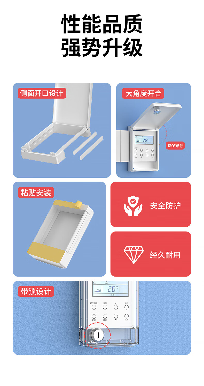 国际电工中央空调面板防水罩遮光挡板温控器带锁保护盖防误触开关防护盖 带锁防水盒-透明