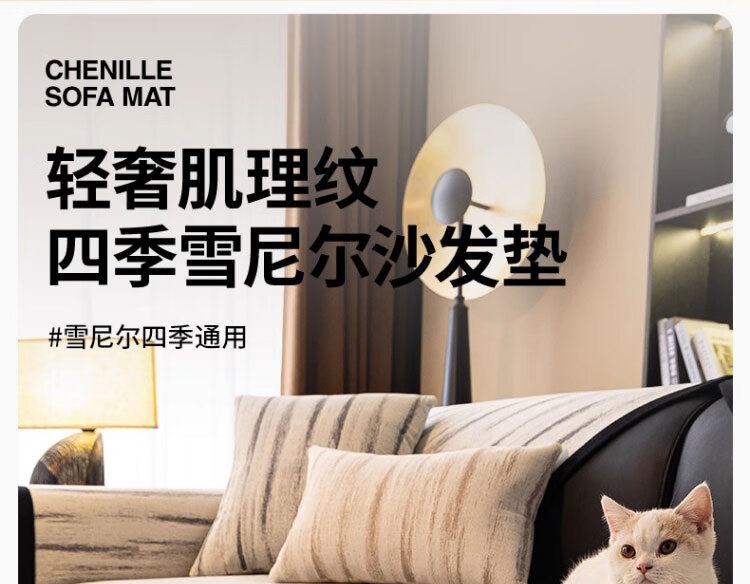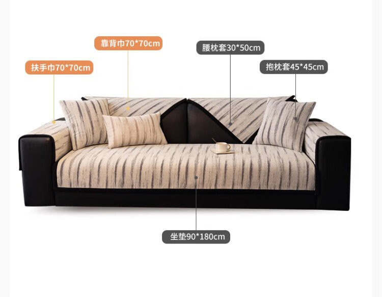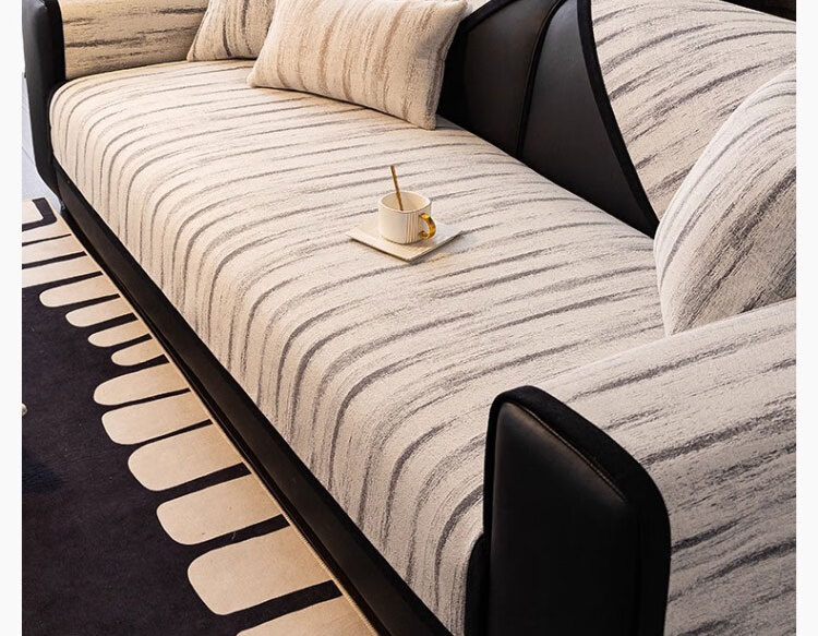 无印良品沙发垫防滑皮沙发专用垫四季通用沙发座垫雪尼尔防猫抓沙发坐垫子 漫汐-深灰 (软糯亲肤 防滑防猫抓) 70*210cm (大双人位)