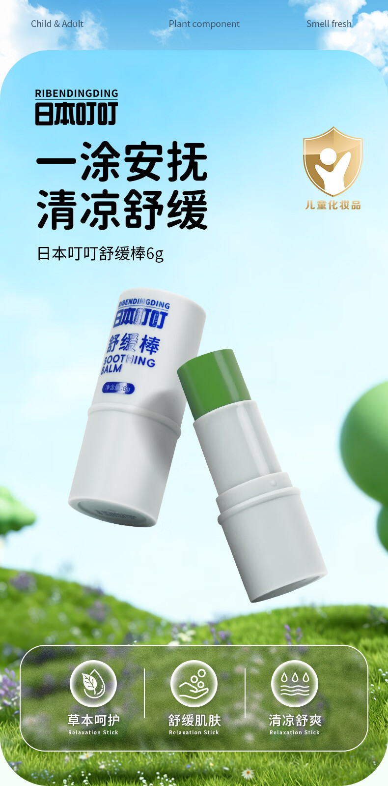 日本叮叮婴儿童止痒舒缓棒防叮咬消包草本清凉膏宝宝专用便携棒6g