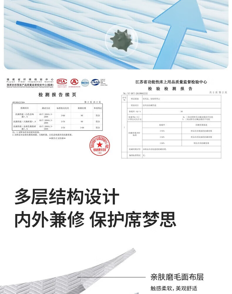 LOVO罗莱生活旗下品牌 家用软垫床褥垫子单双人可水洗席梦思床护垫 【抗菌防螨】可水洗床护垫 135cm*200cm
