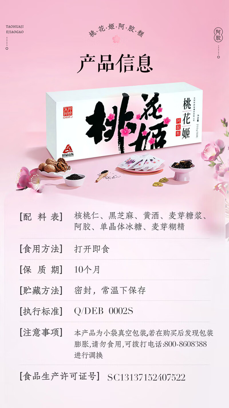 东阿阿胶桃花姬阿胶糕 即食阿胶固元膏营养品补气血送长辈女友 阿胶糕250g
