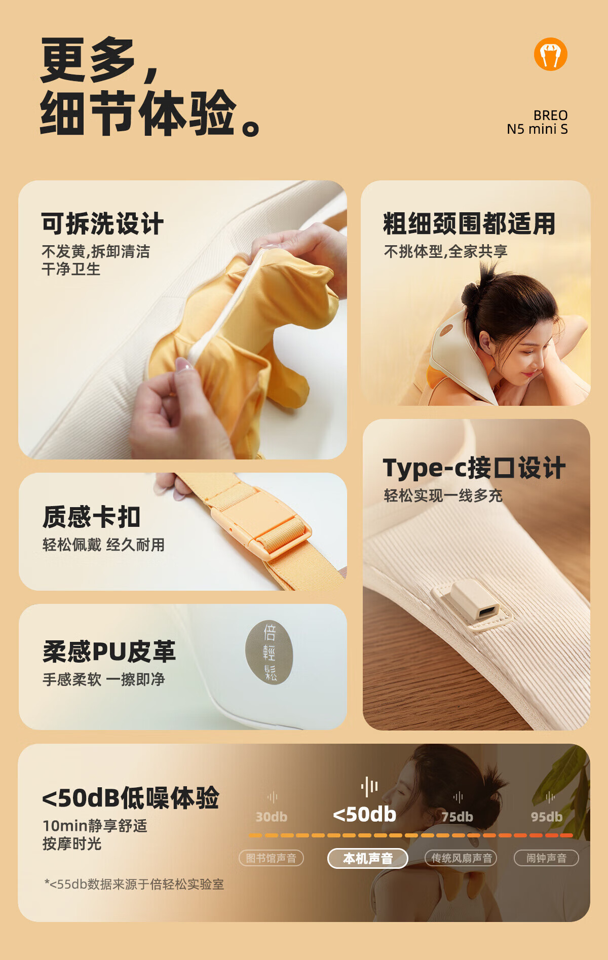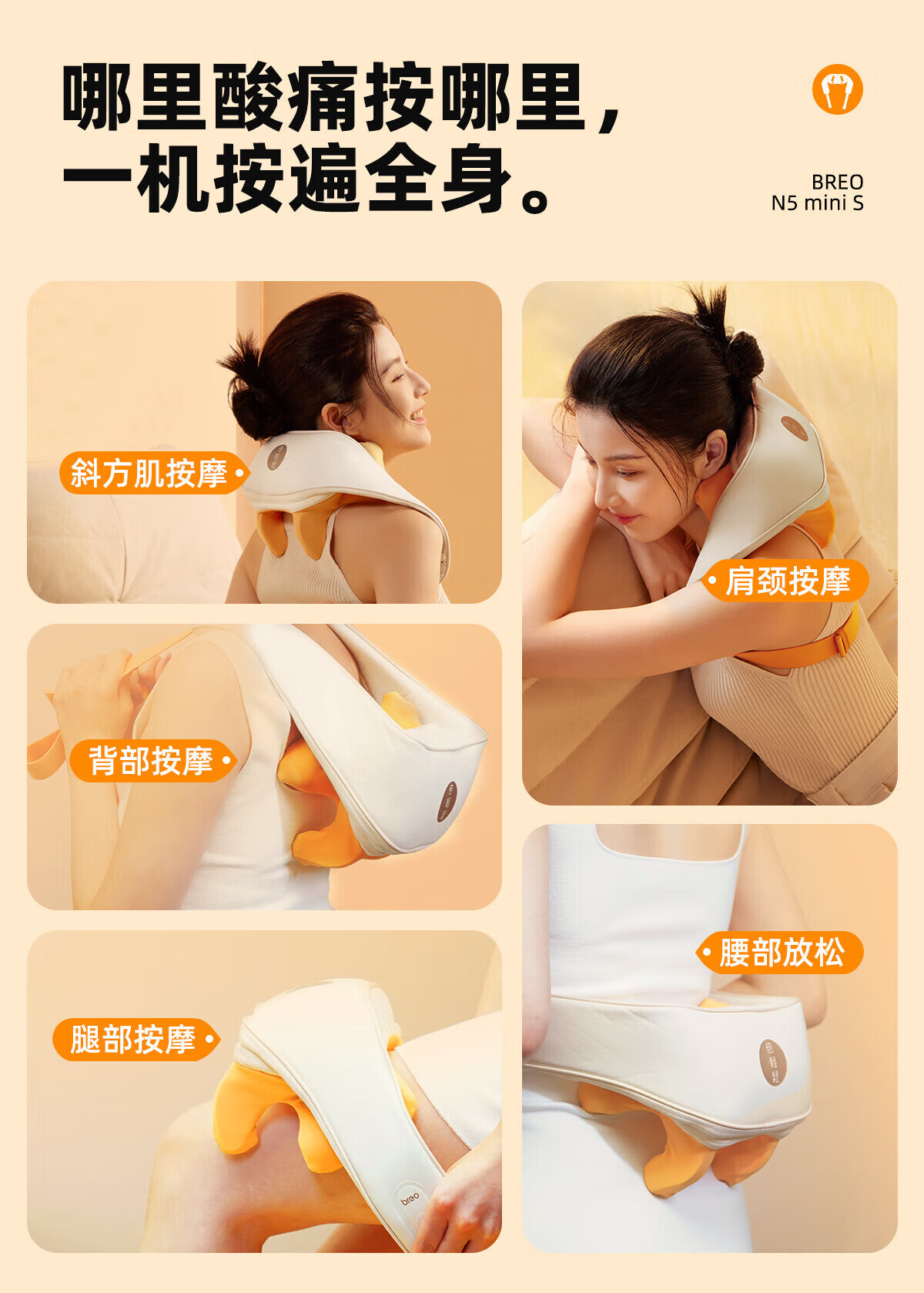 倍轻松(breo) 颈椎按摩器 N5miniS颈部按摩仪肩颈按摩器无线锂电家用按摩披肩 国家补贴送母亲父亲节生日礼物 送礼推荐-N5miniS