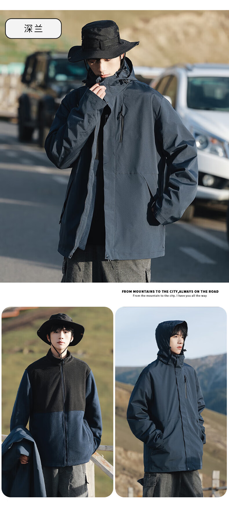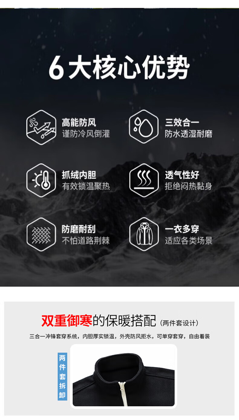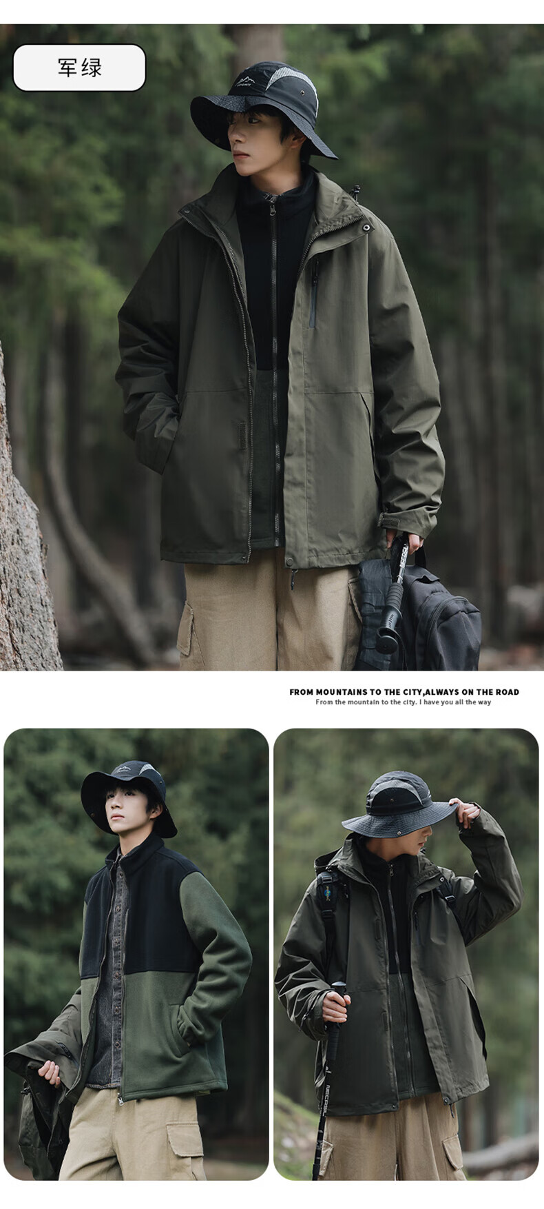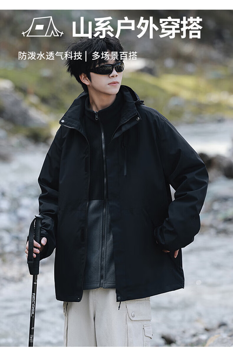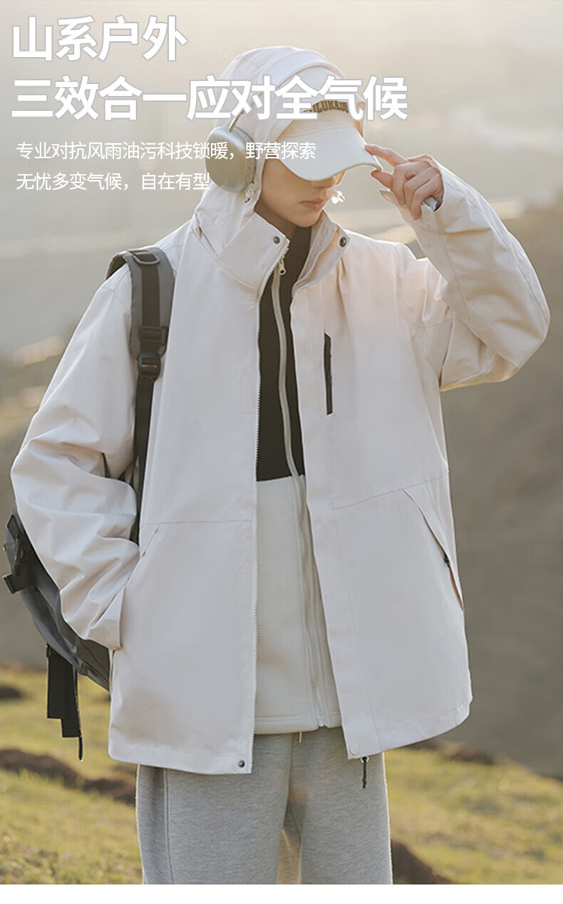 东方骆驼三合一夹克男士冲锋外套春秋户外上衣情侣款宽松休闲山系登山服 军绿 4XL