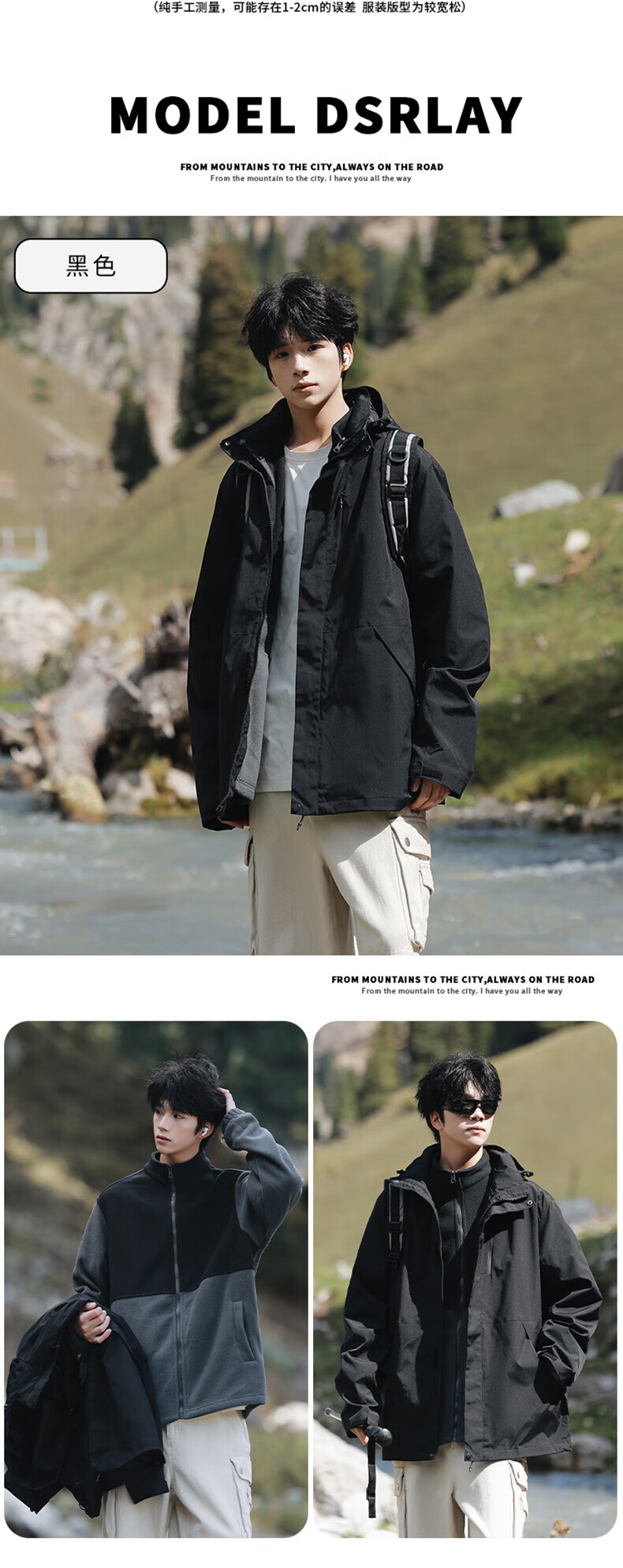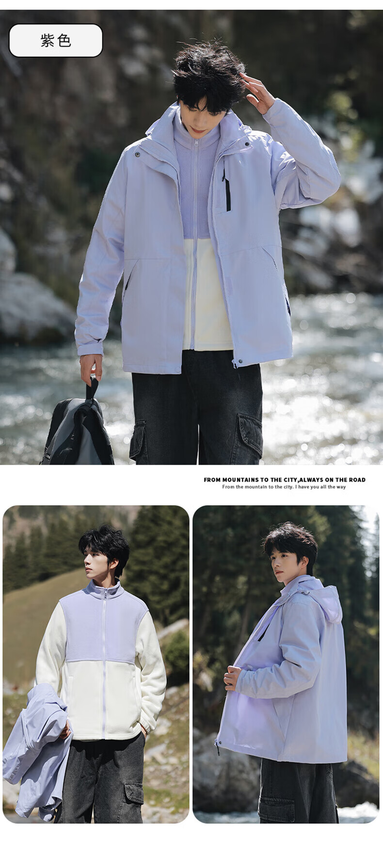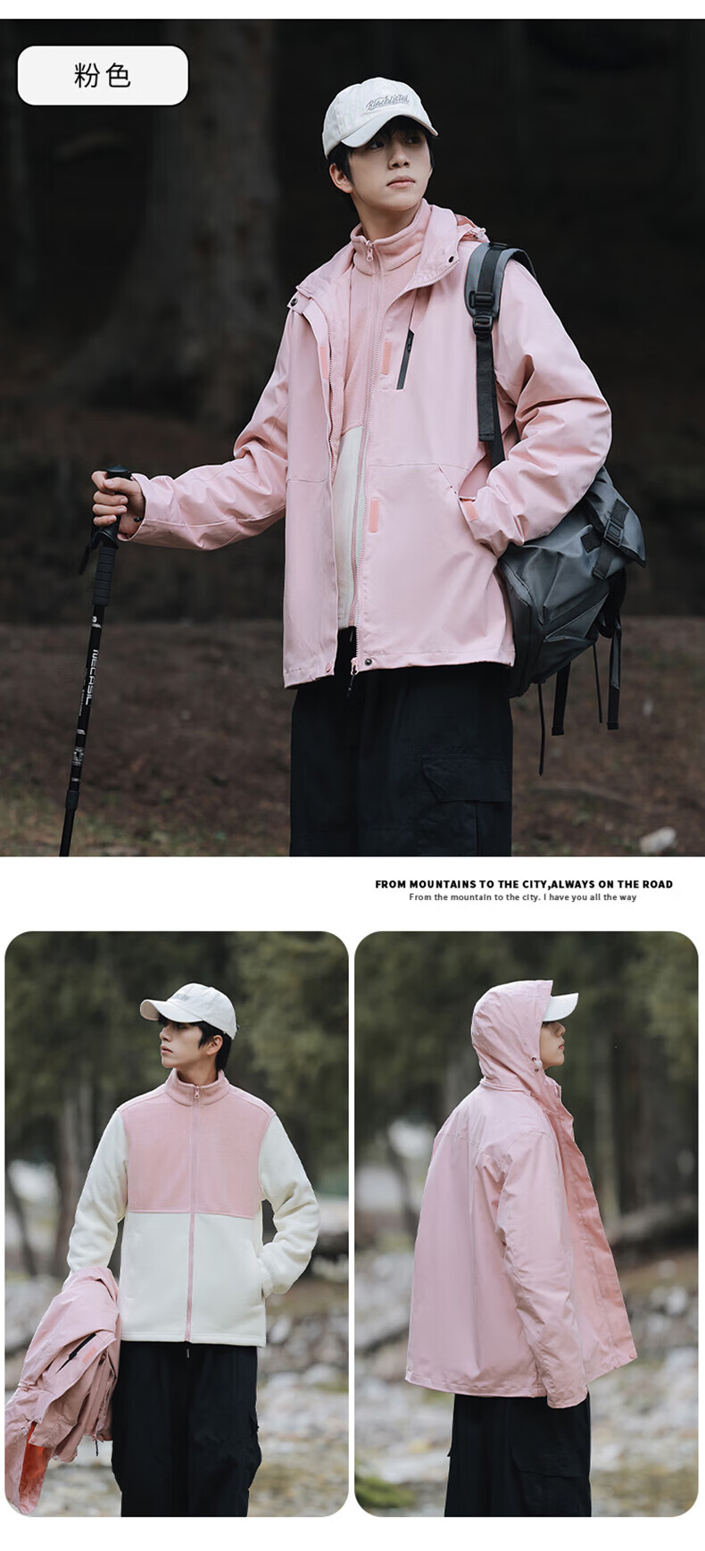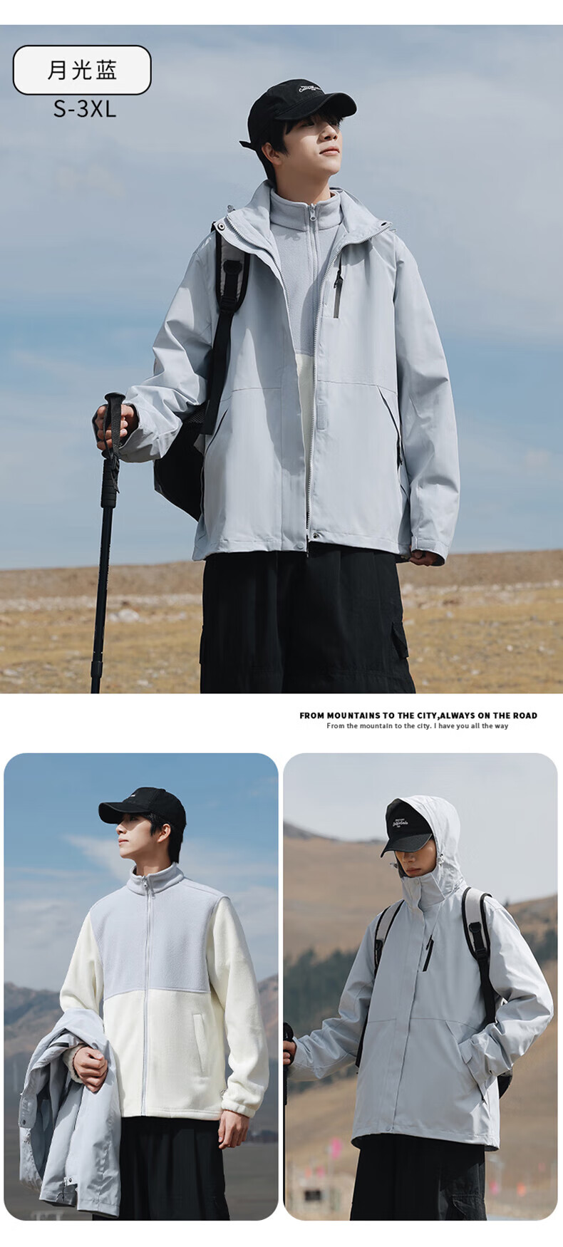 东方骆驼三合一夹克男士冲锋外套春秋户外上衣情侣款宽松休闲山系登山服 军绿 4XL