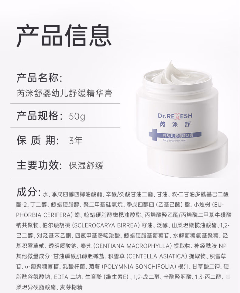 芮洣舒婴幼儿舒缓精华小白膏新生宝宝舒缓儿童面霜补水保湿防干红敏 【镇店王牌】50g