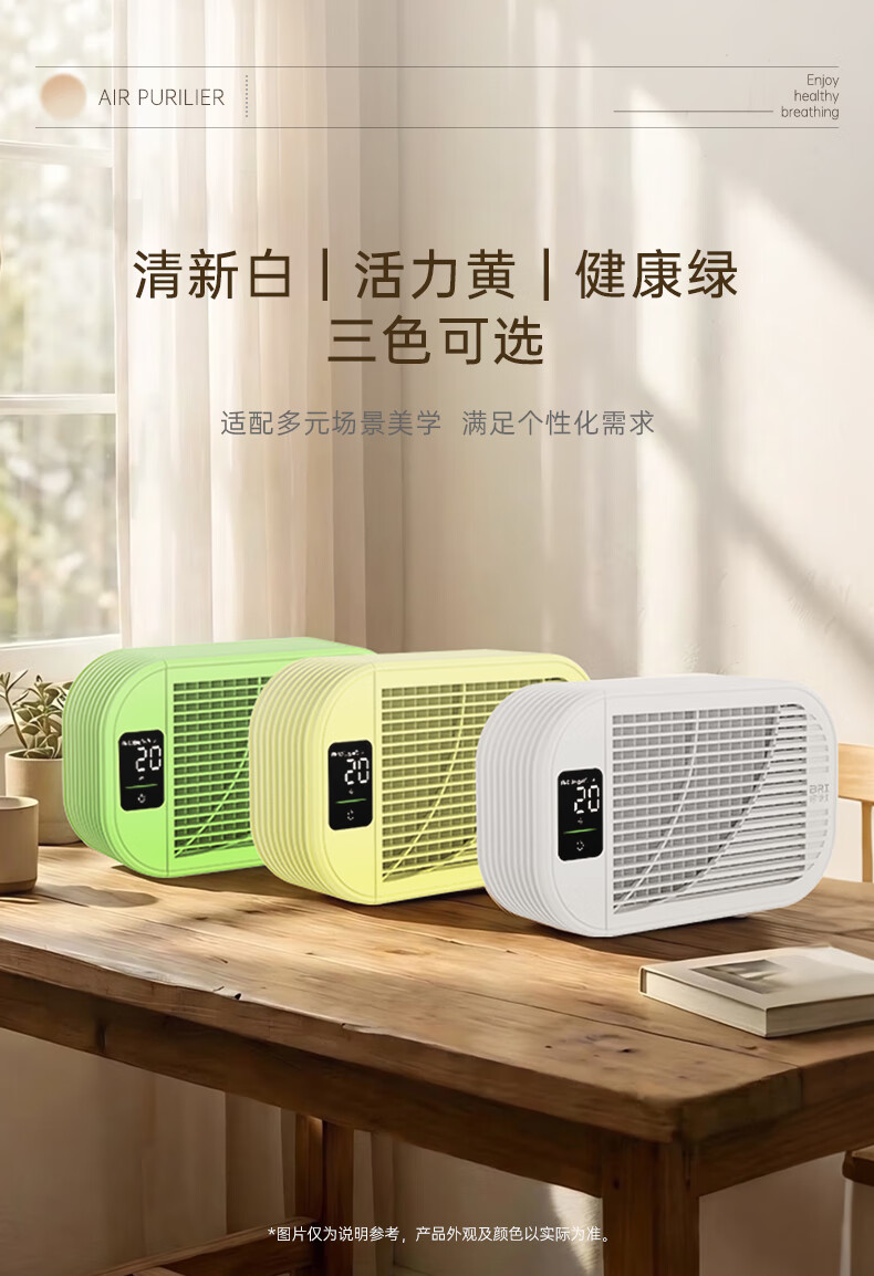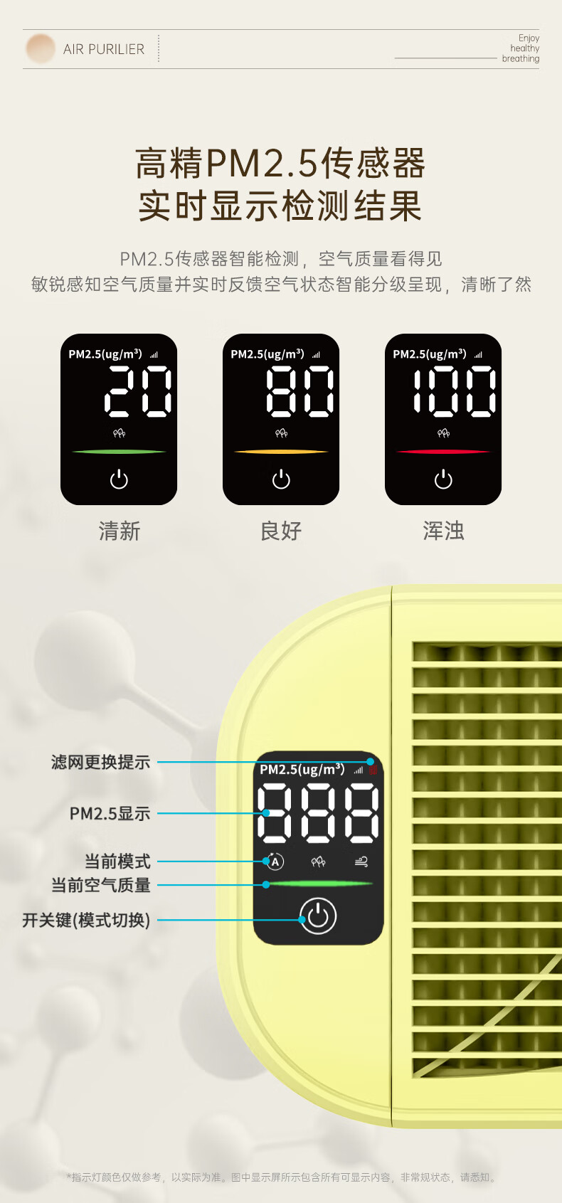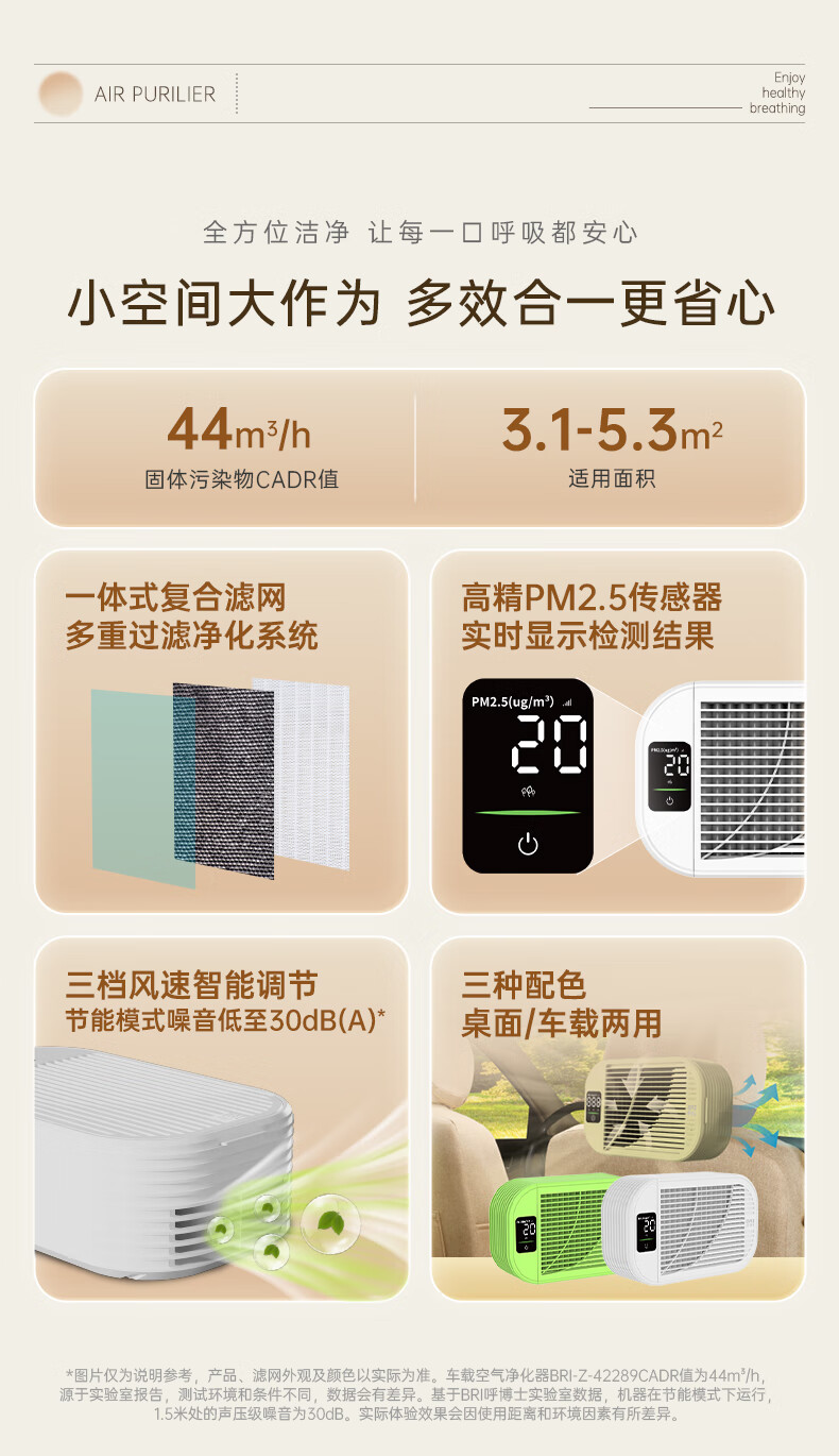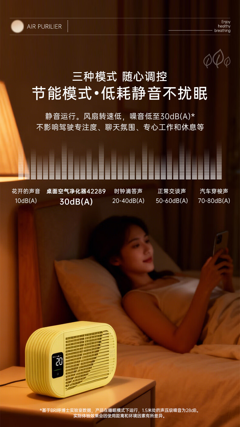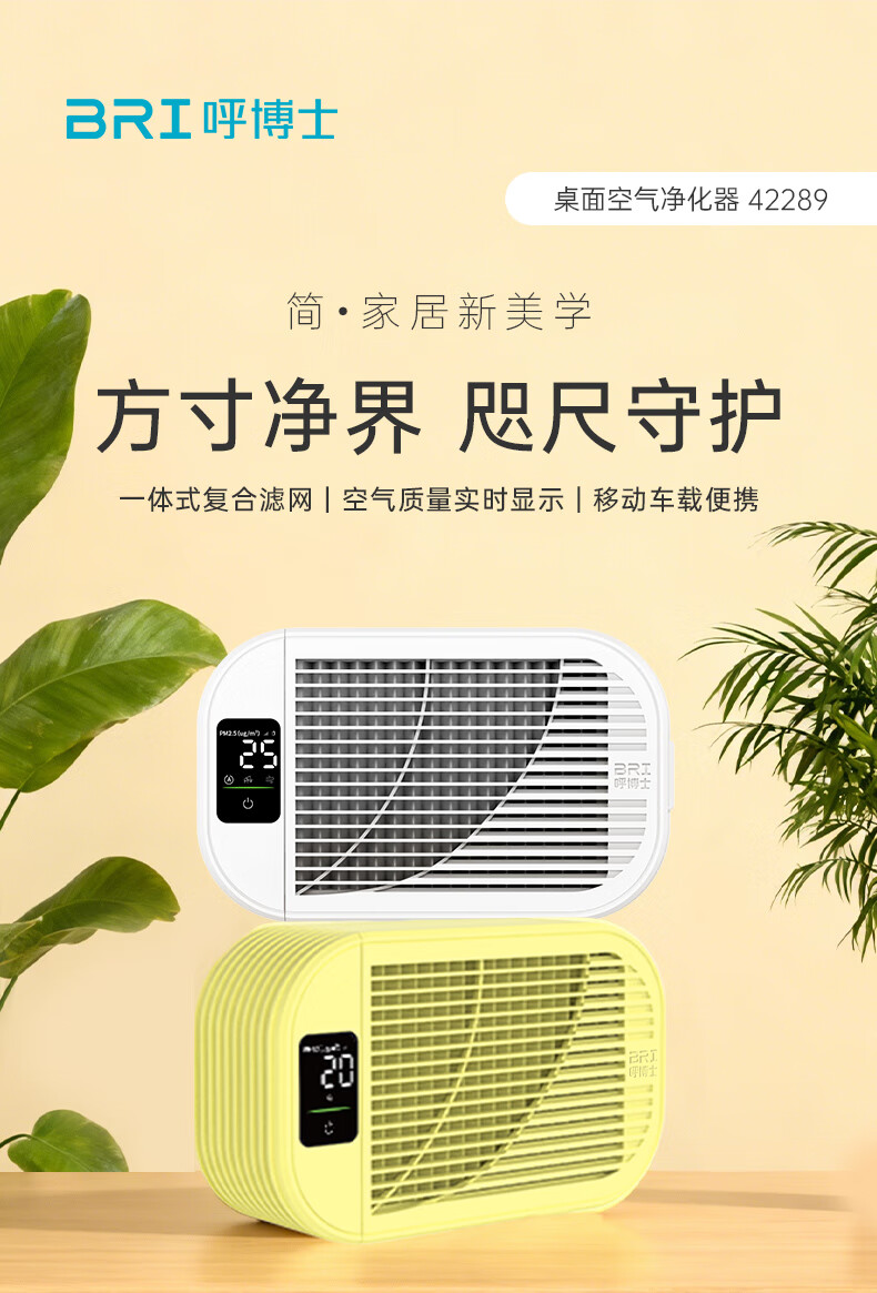 呼博士车载桌面空气净化器除异味甲醛二手烟H12高效滤网三挡风速智能LED显示屏滤网更换提示BRI-Z-42289 【淡雅黄】