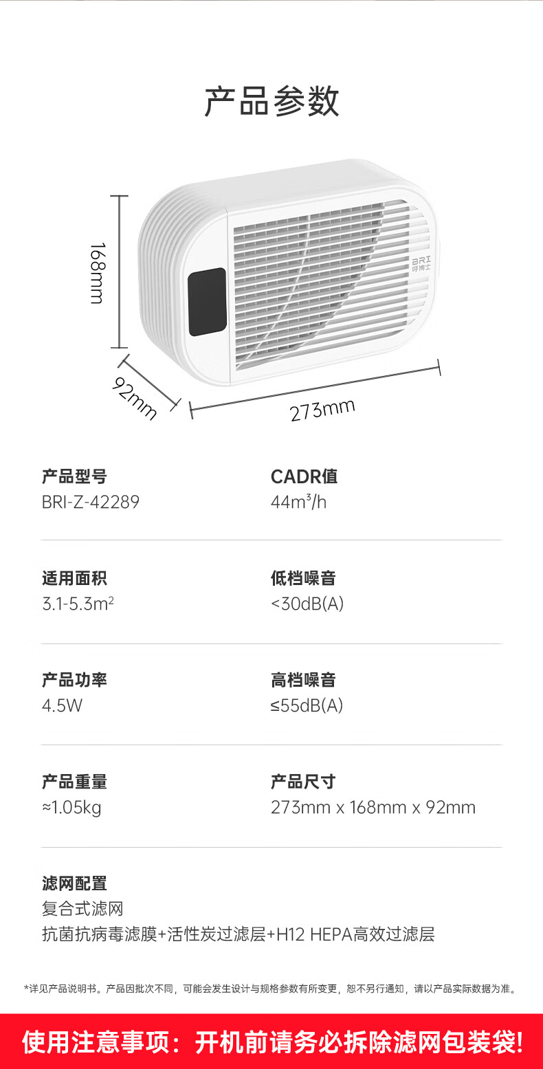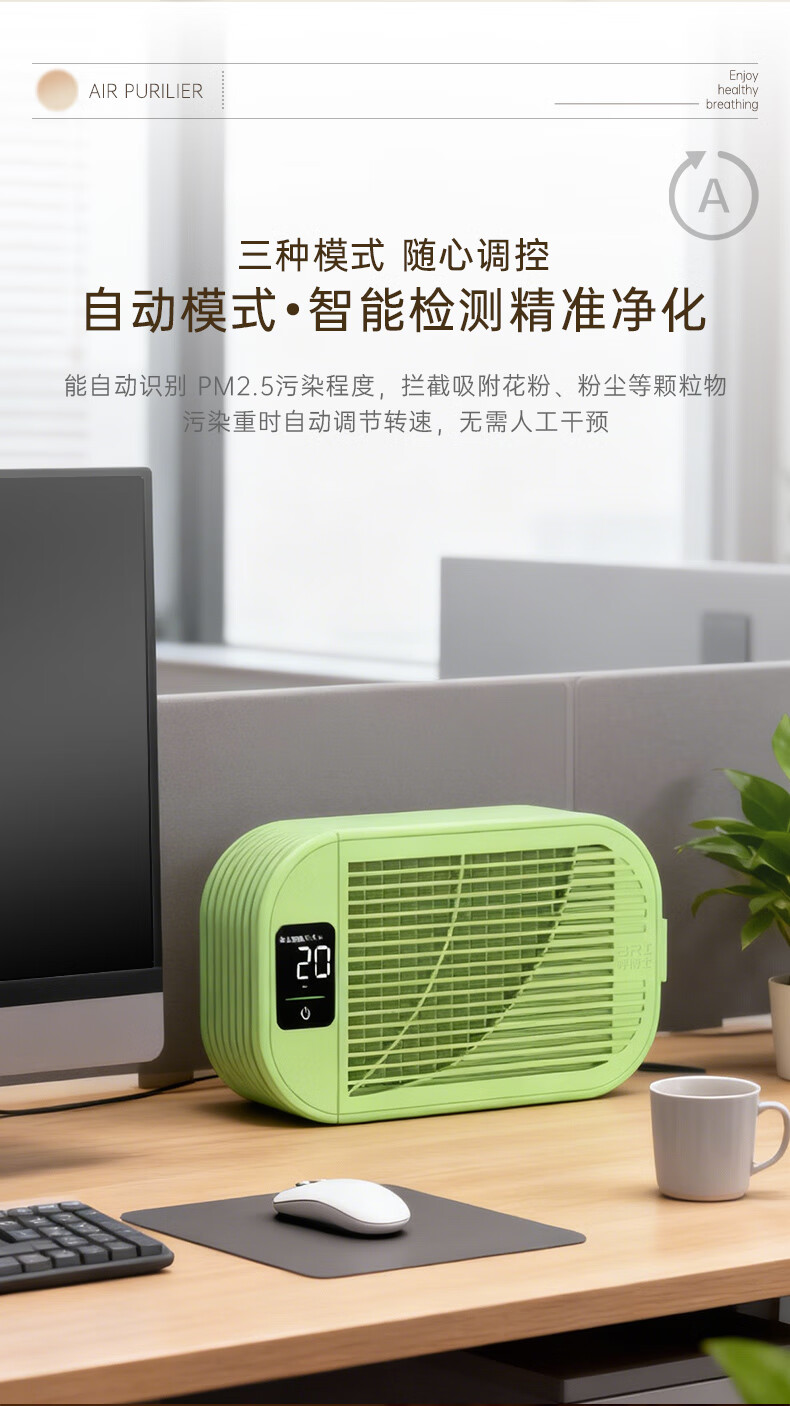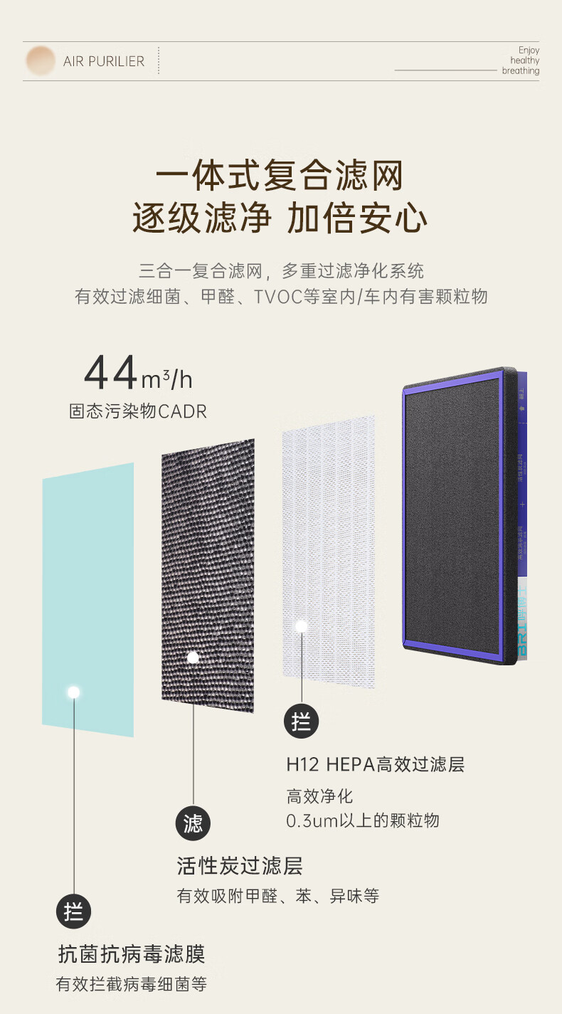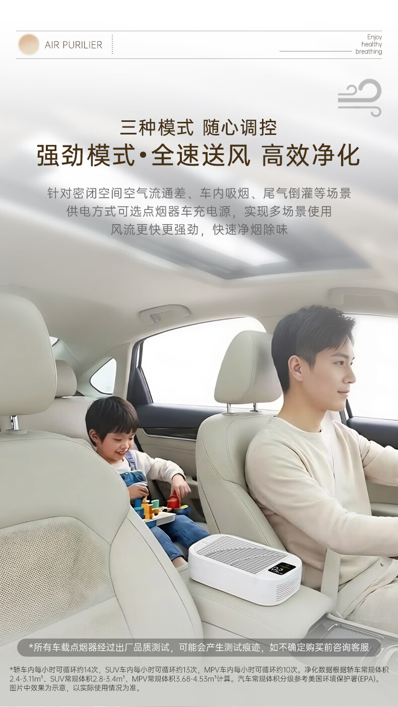 呼博士车载桌面空气净化器除异味甲醛二手烟H12高效滤网三挡风速智能LED显示屏滤网更换提示BRI-Z-42289 【淡雅黄】