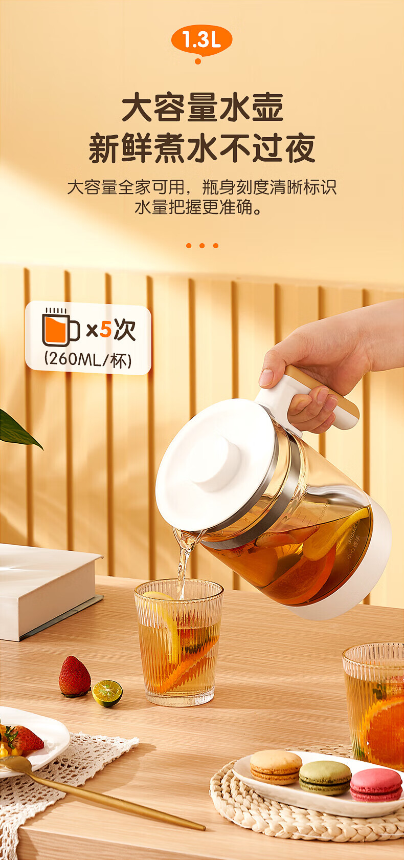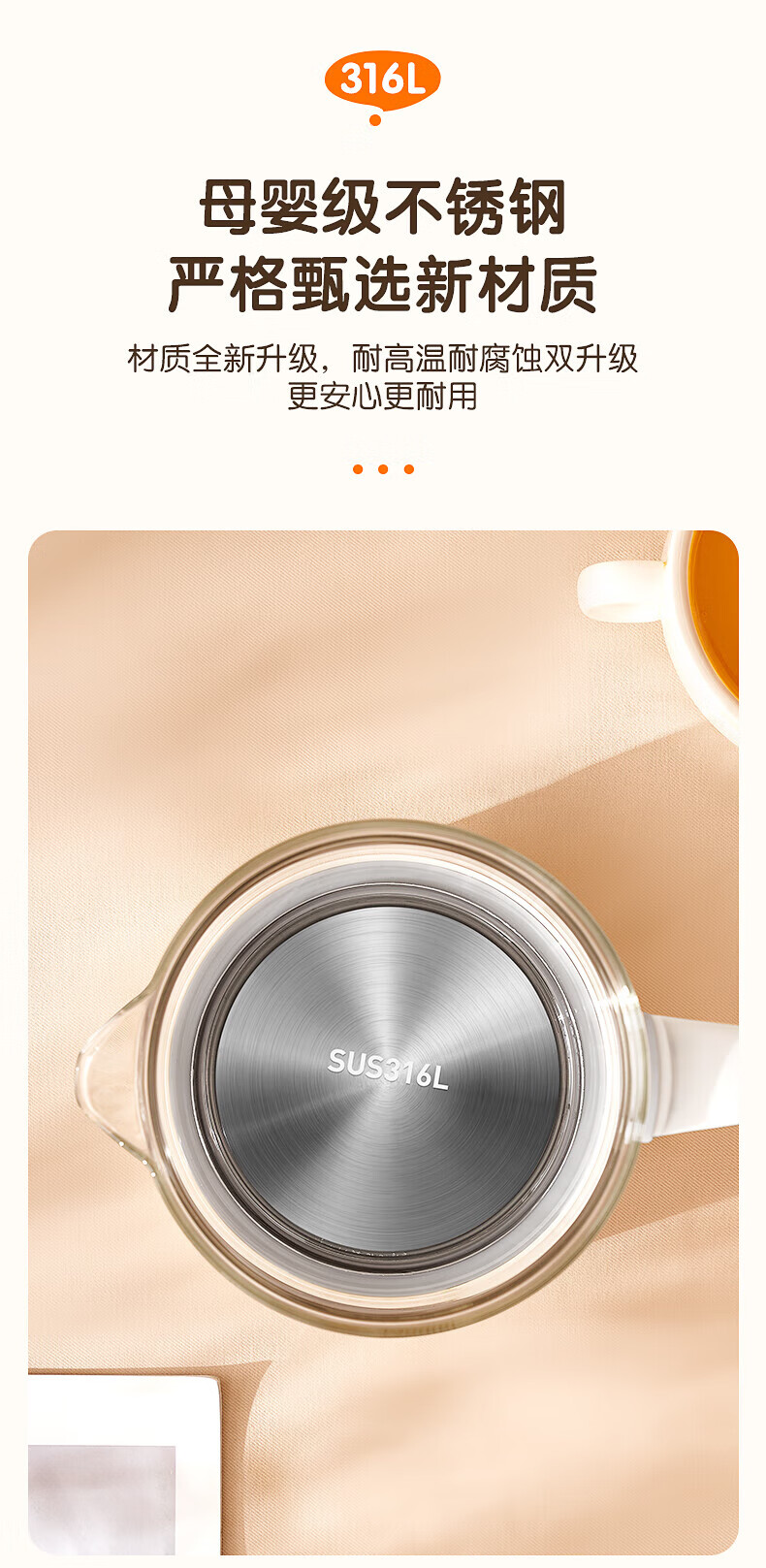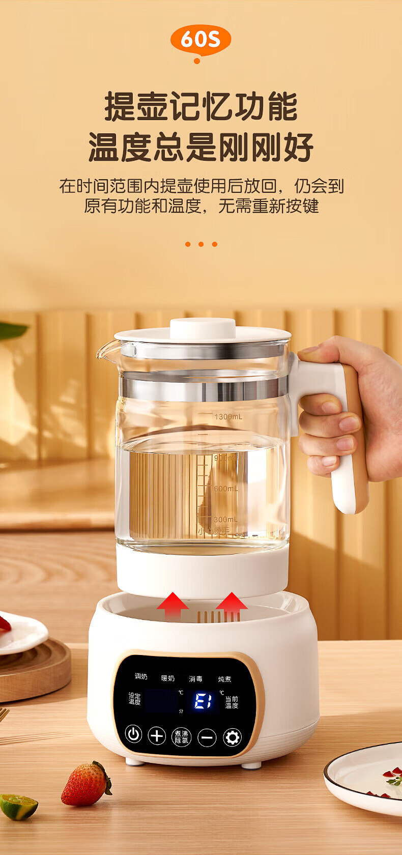 美的(Midea)同款养生壶煮茶壶恒温水壶保温烧水一体智能电热水壶花茶壶烧水壶 白色 1.3L 医用级-316L不锈钢带提壶记忆