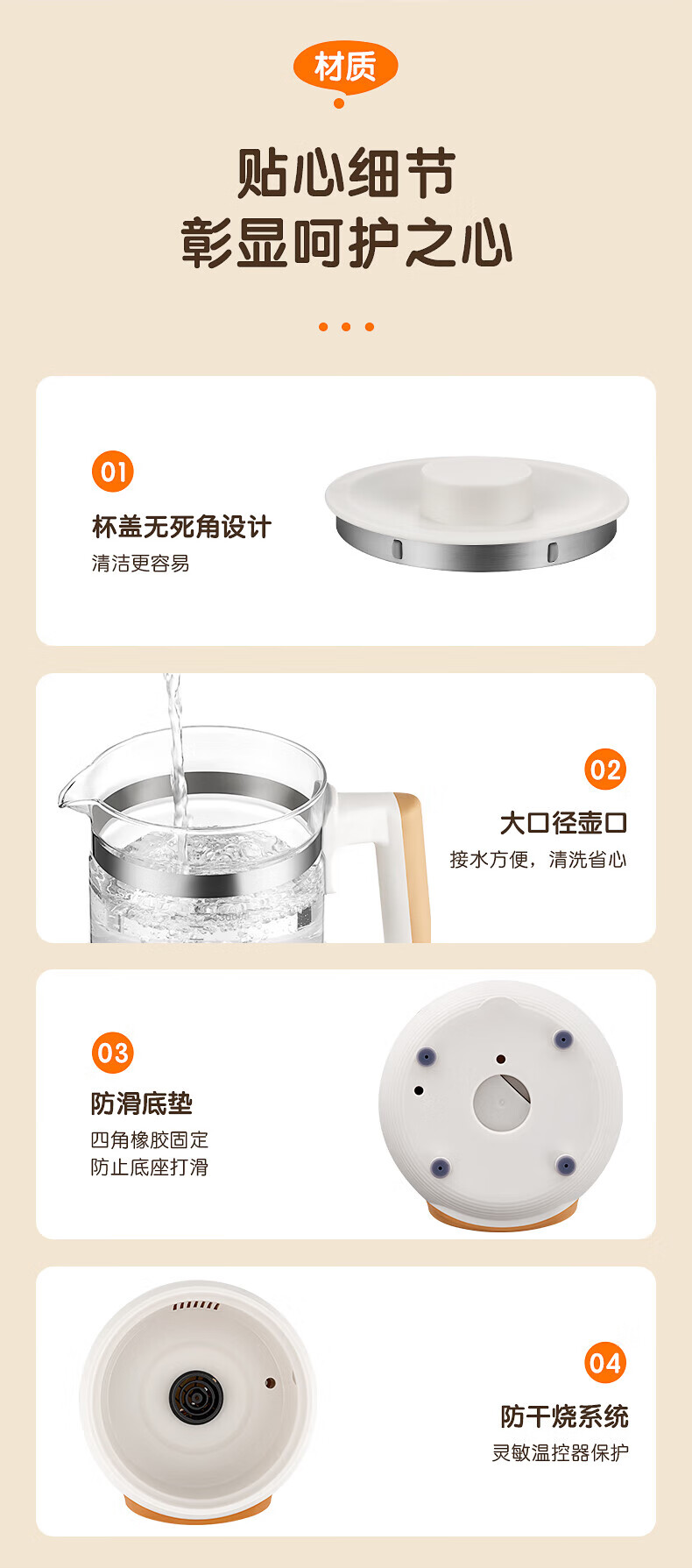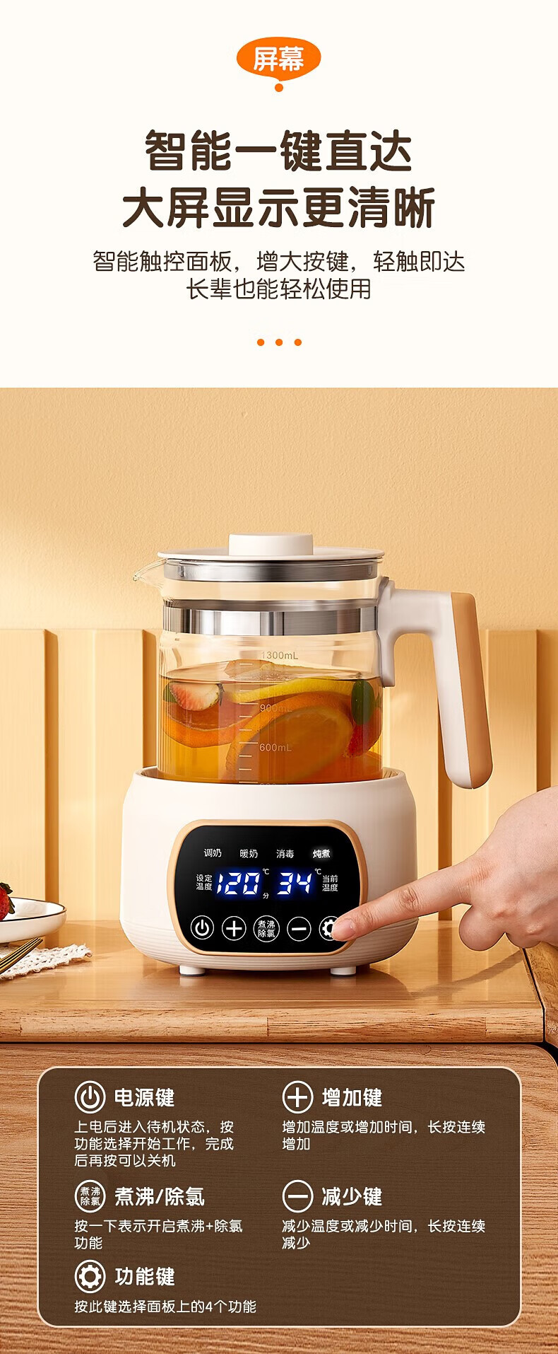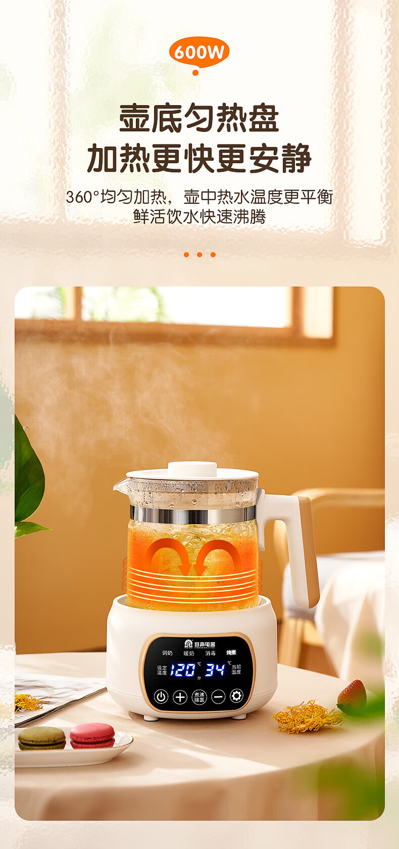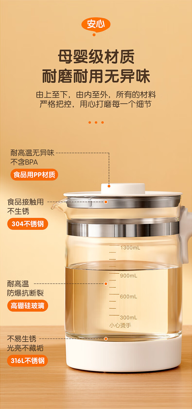 美的(Midea)同款养生壶煮茶壶恒温水壶保温烧水一体智能电热水壶花茶壶烧水壶 白色 1.3L 医用级-316L不锈钢带提壶记忆