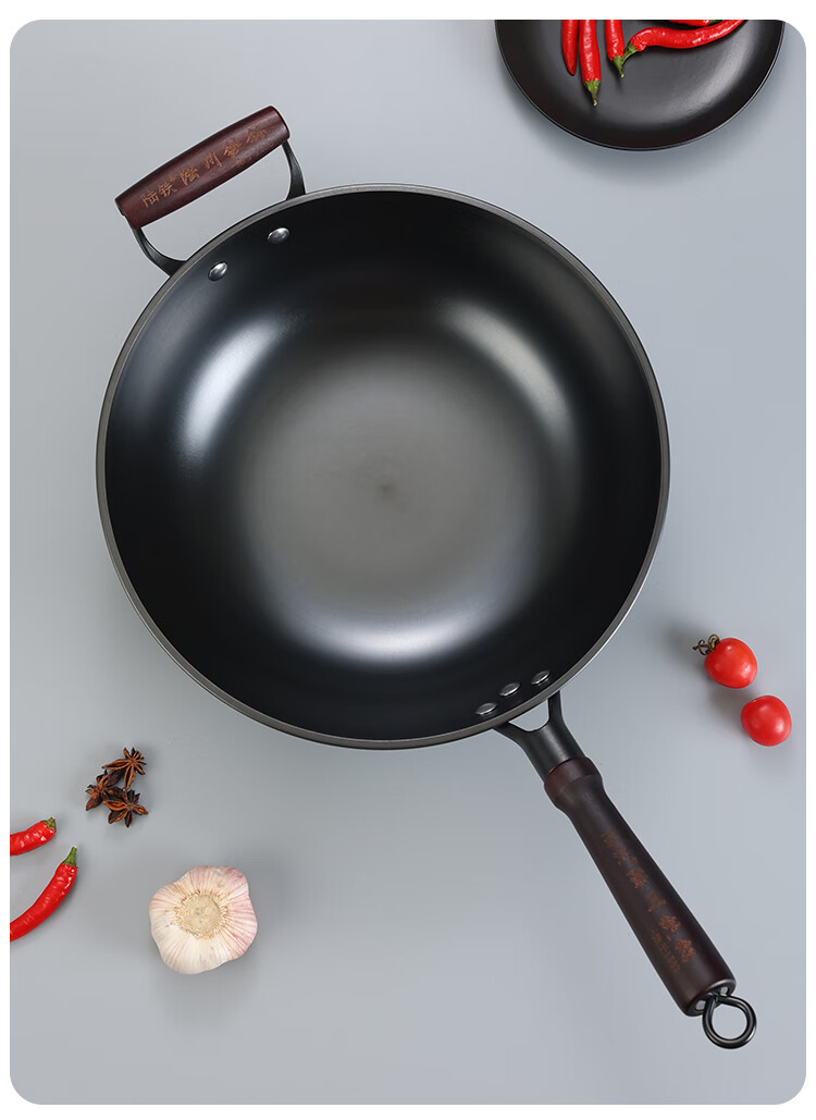 万代传铁锅章丘款炒锅不粘锅锻打无涂层老式炒锅燃气煤气灶通用圆底锅 【4-8人使用】 36cm 手工锻打古法黑锅