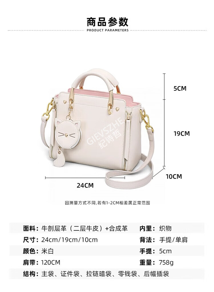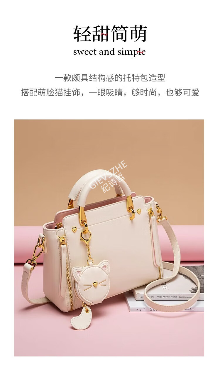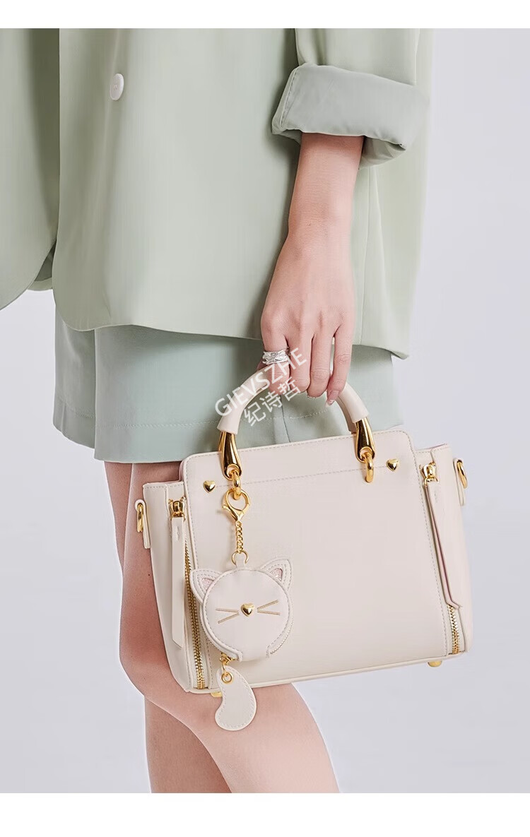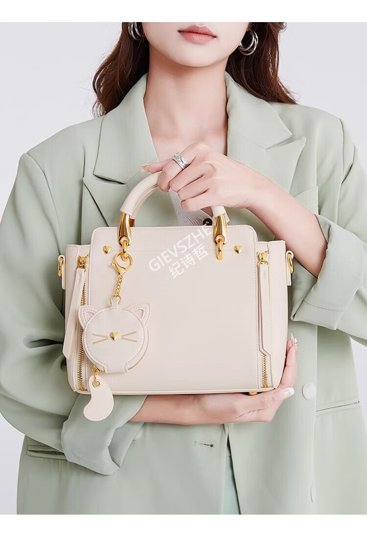 纪诗哲轻奢包包女包单肩包女士斜挎包七夕圣诞节送老婆女友纪念节日礼物 米白色【当日达/次日达】圣诞礼物 中包精美礼盒包装