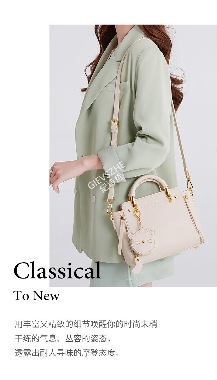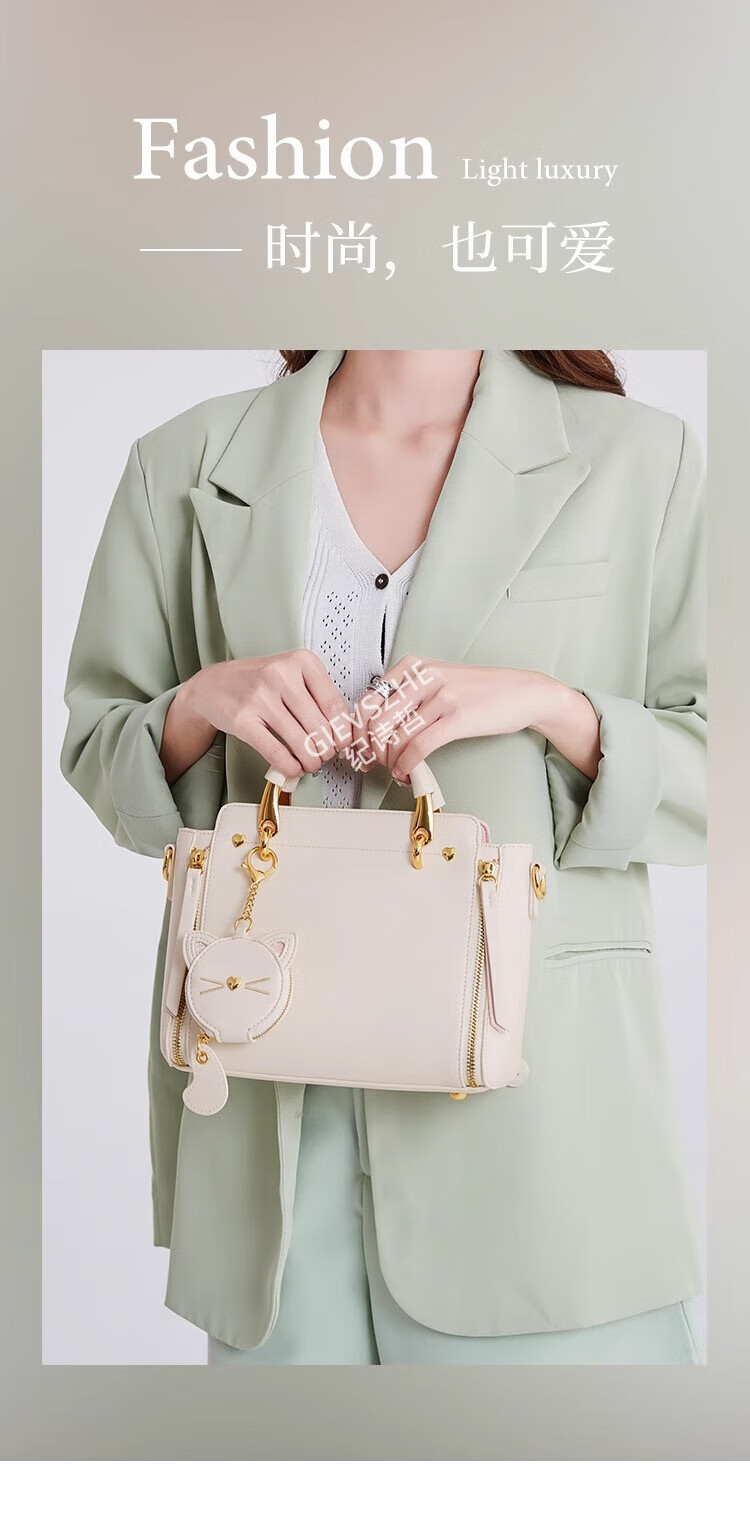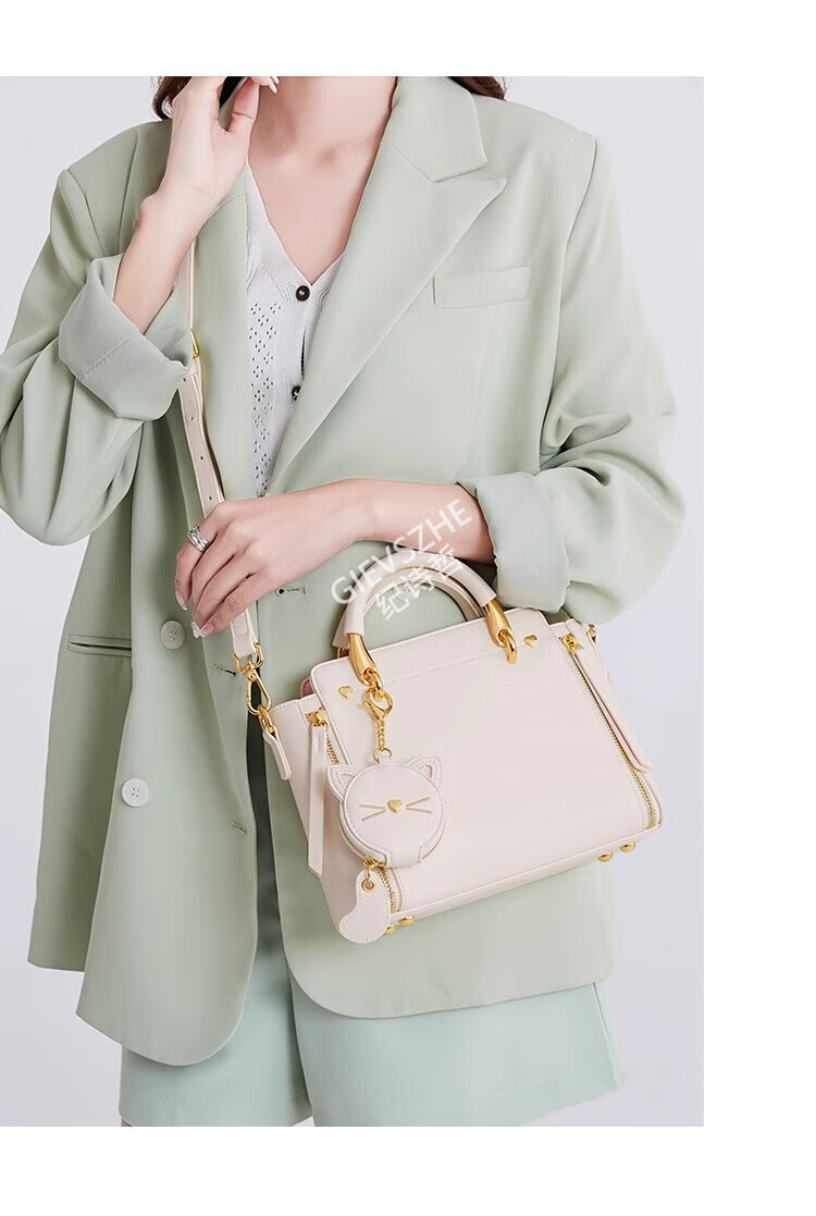 纪诗哲轻奢包包女包单肩包女士斜挎包七夕圣诞节送老婆女友纪念节日礼物 米白色【当日达/次日达】圣诞礼物 中包精美礼盒包装