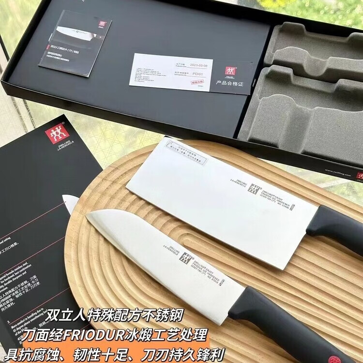 双立人红点刀具两件套多功能切片刀菜刀家用厨房不锈钢切菜切肉 60以下 18cm 二件套