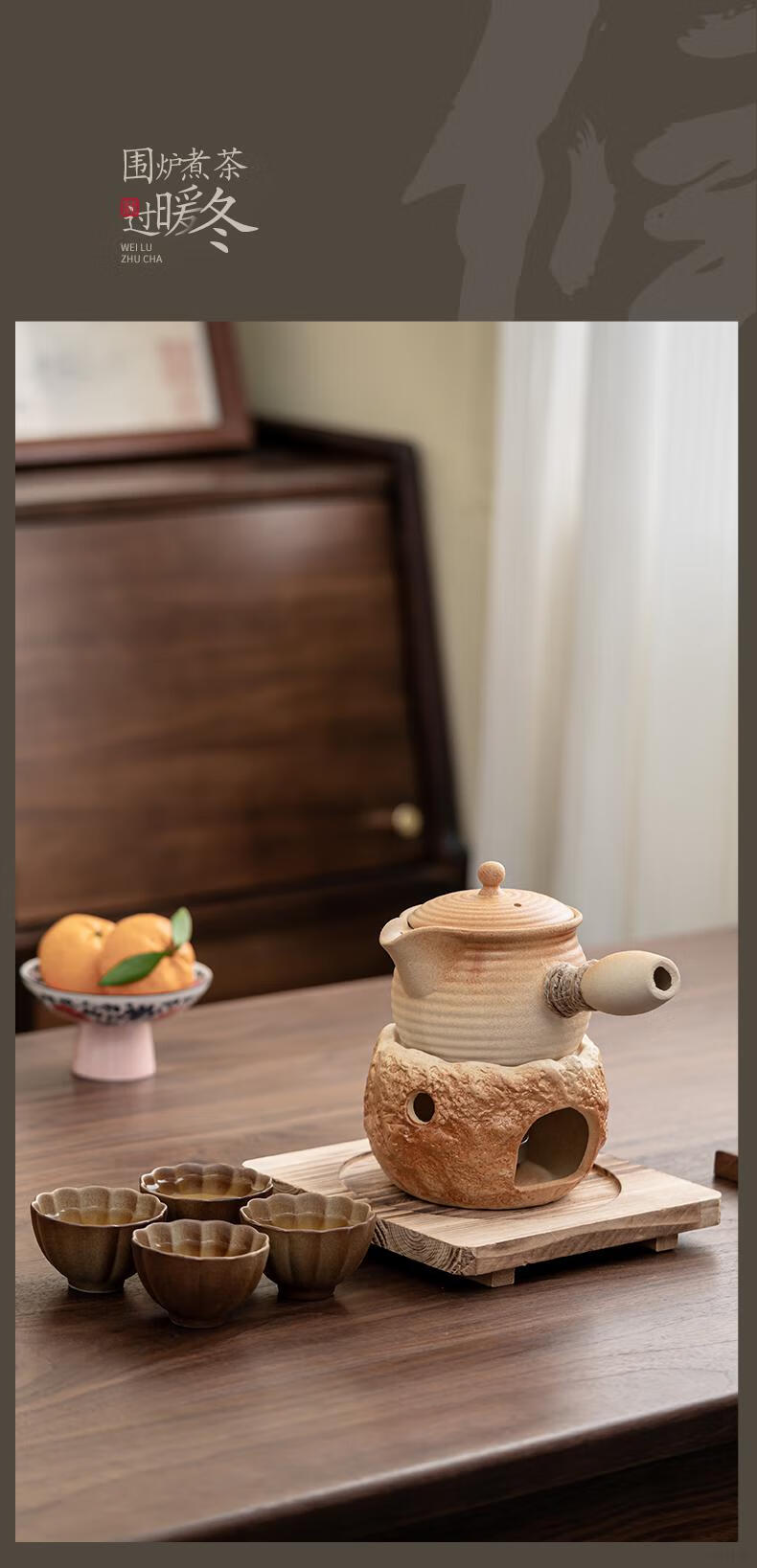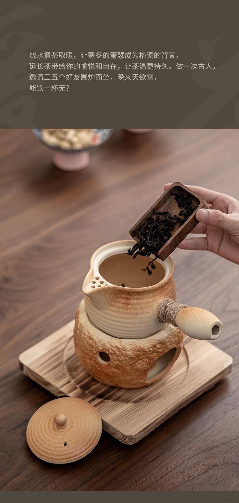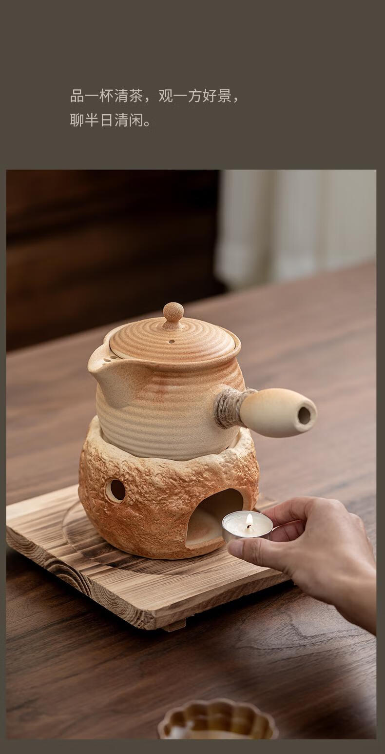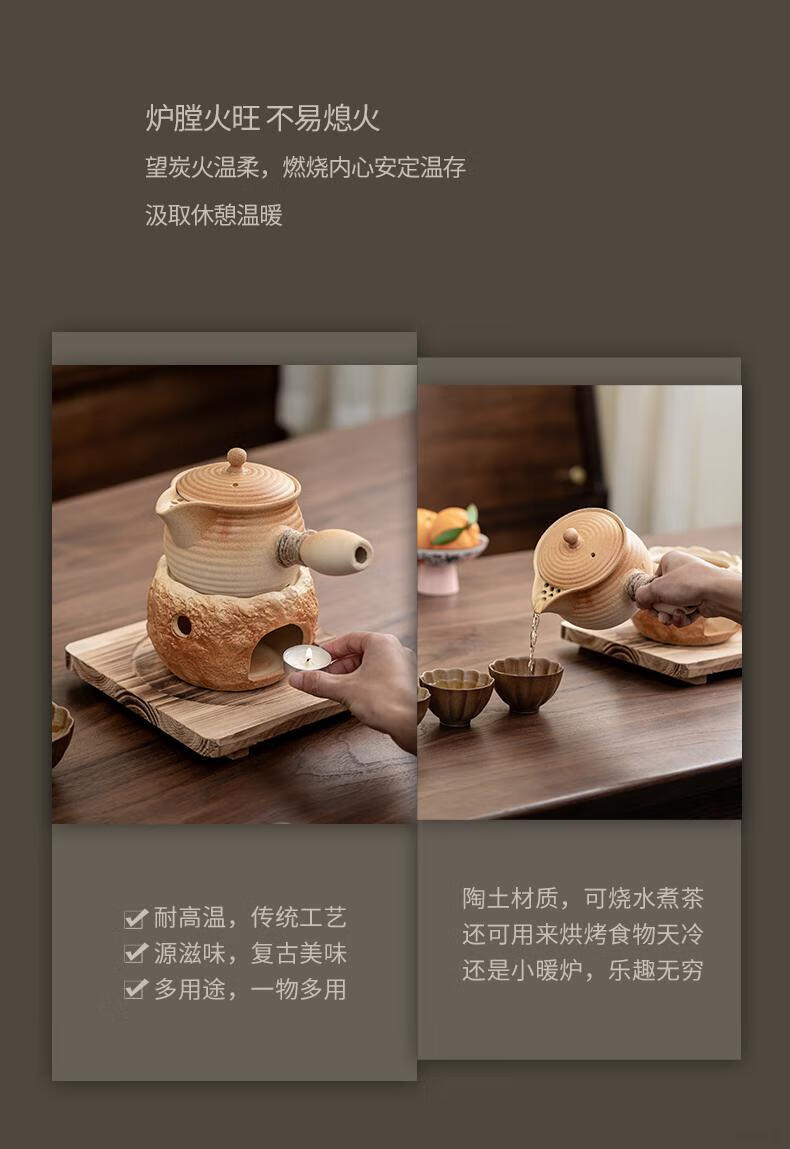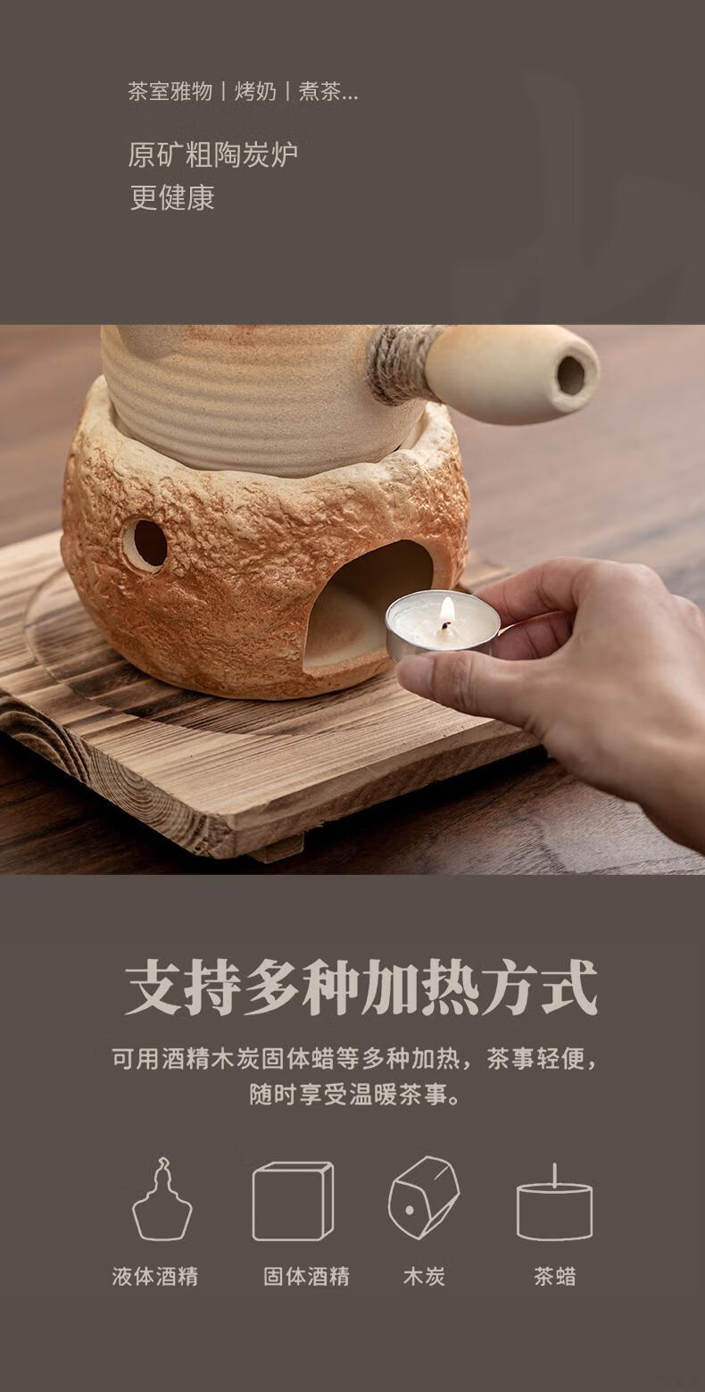 希格鲨中式围炉煮茶器罐罐茶烤奶单壶泡茶家用户外烧碳火炉套装复古侧把 渐变侧把壶+炉+垫【可木炭蜡烛】 【图上可见】