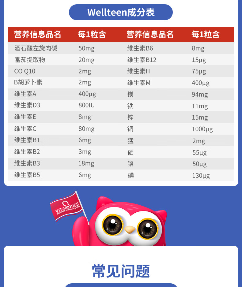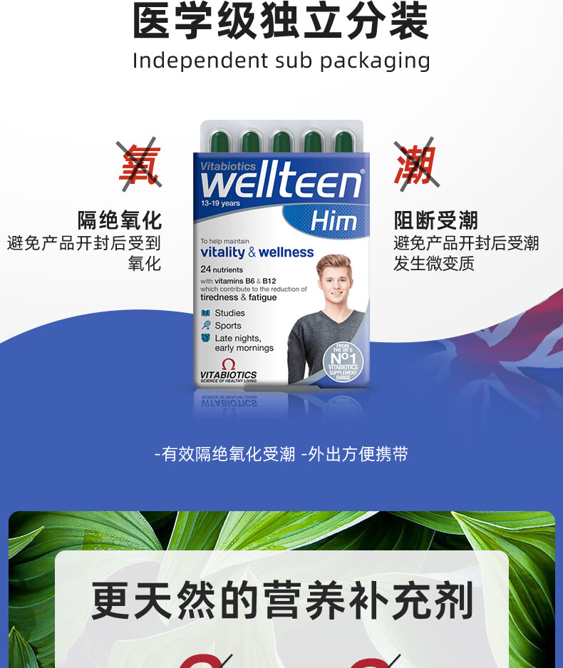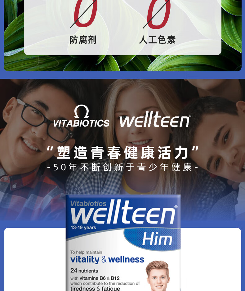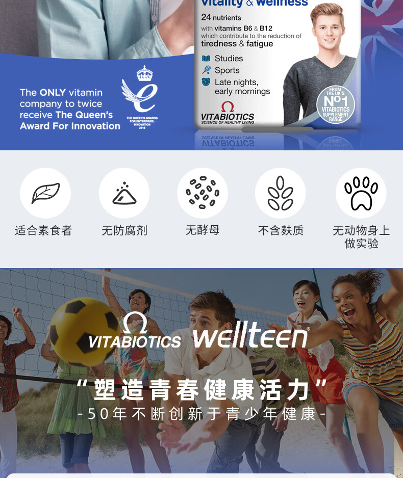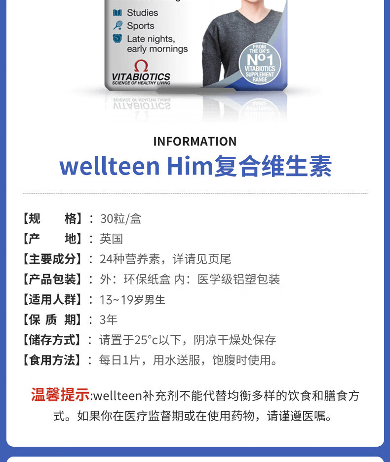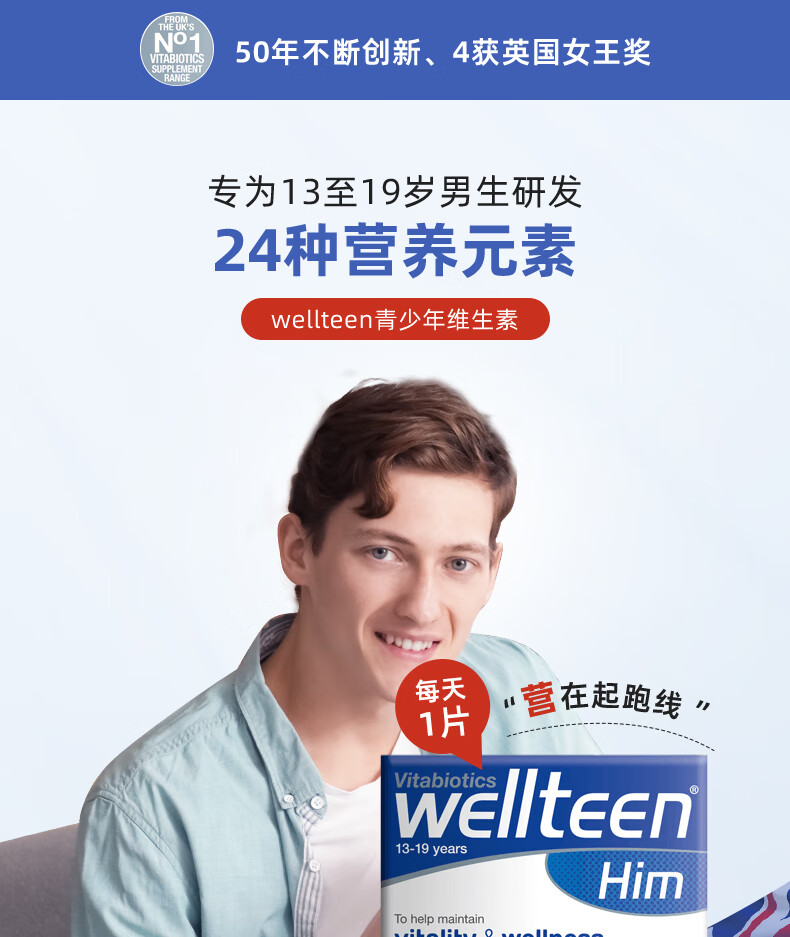 薇塔薇塔贝尔多种复合维生素营养13-19岁青少年男性适用 增强免疫力 青少年男孩复维30粒