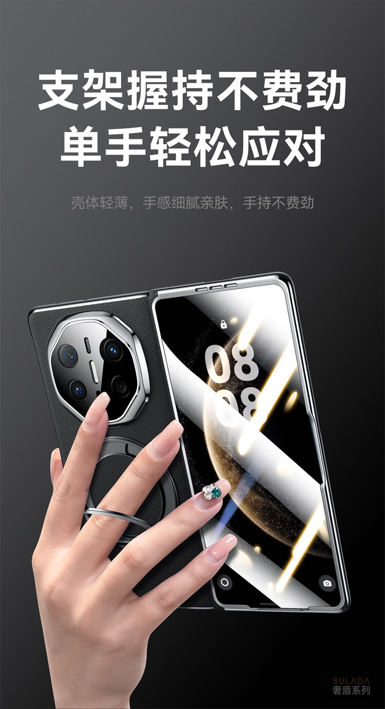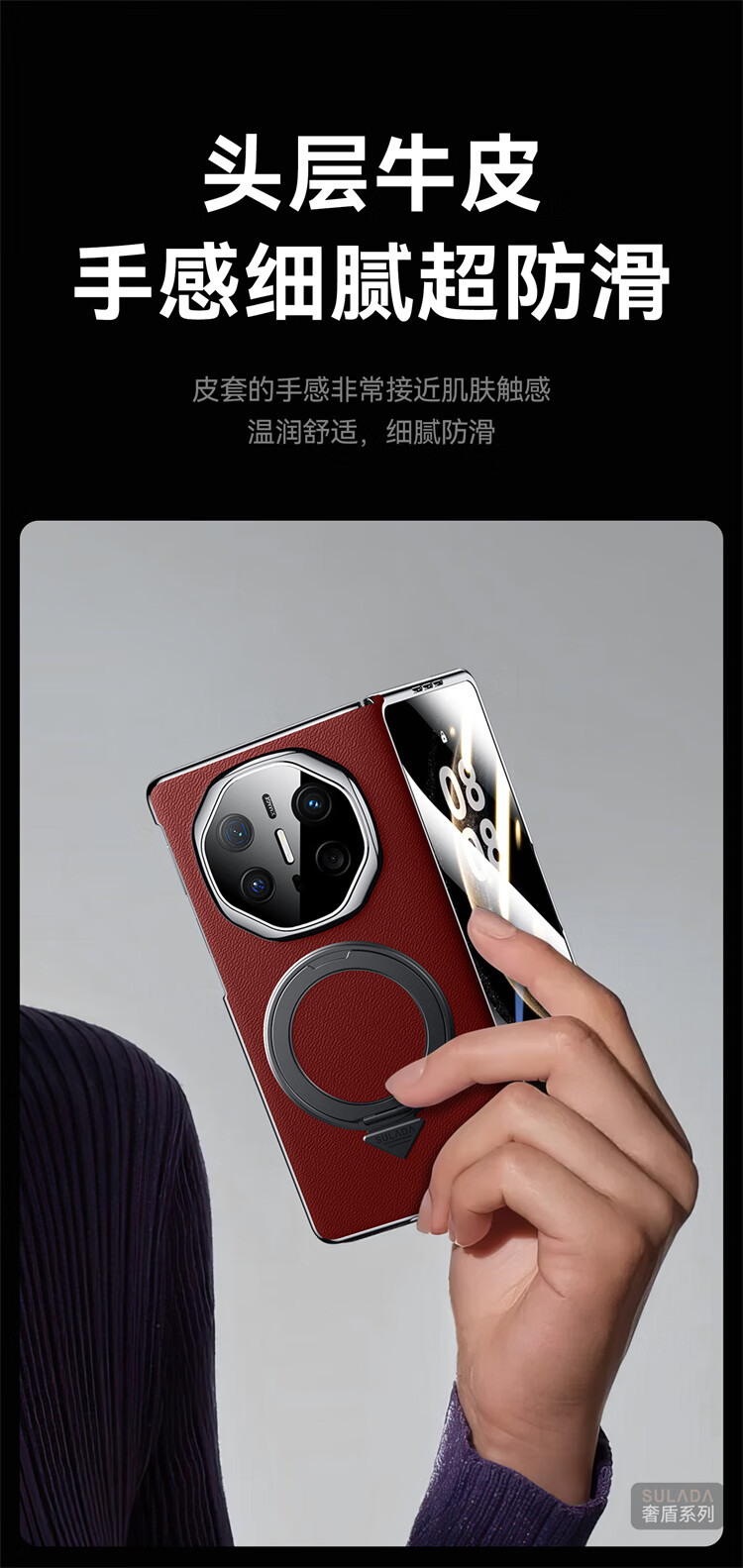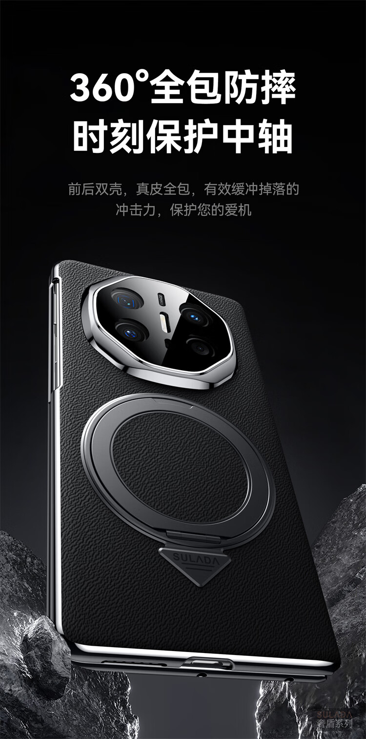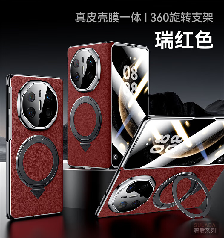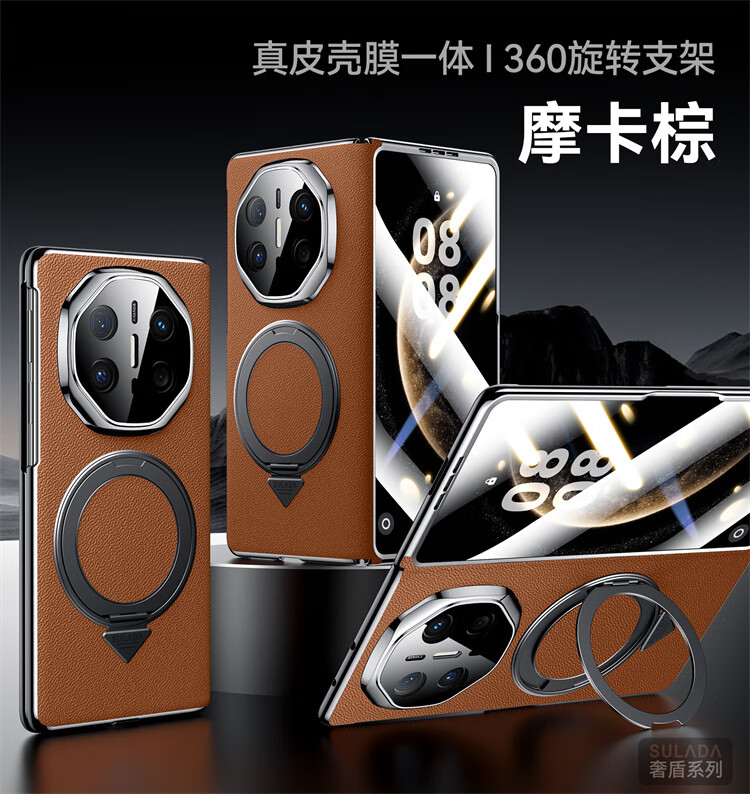 苏拉达适用华为MateX6/MateX5手机壳真皮壳膜一体旋转支架全包磁吸防摔 【摩卡棕】奢盾系列/壳膜一体 华为 MateX3 典藏版