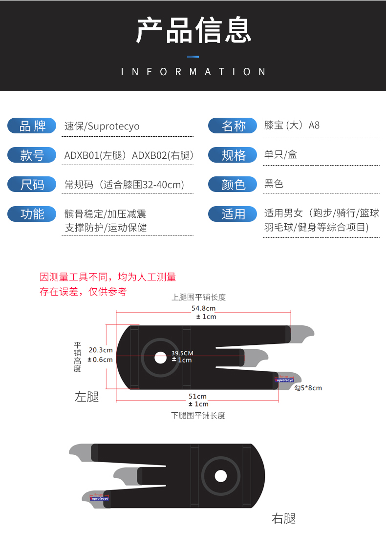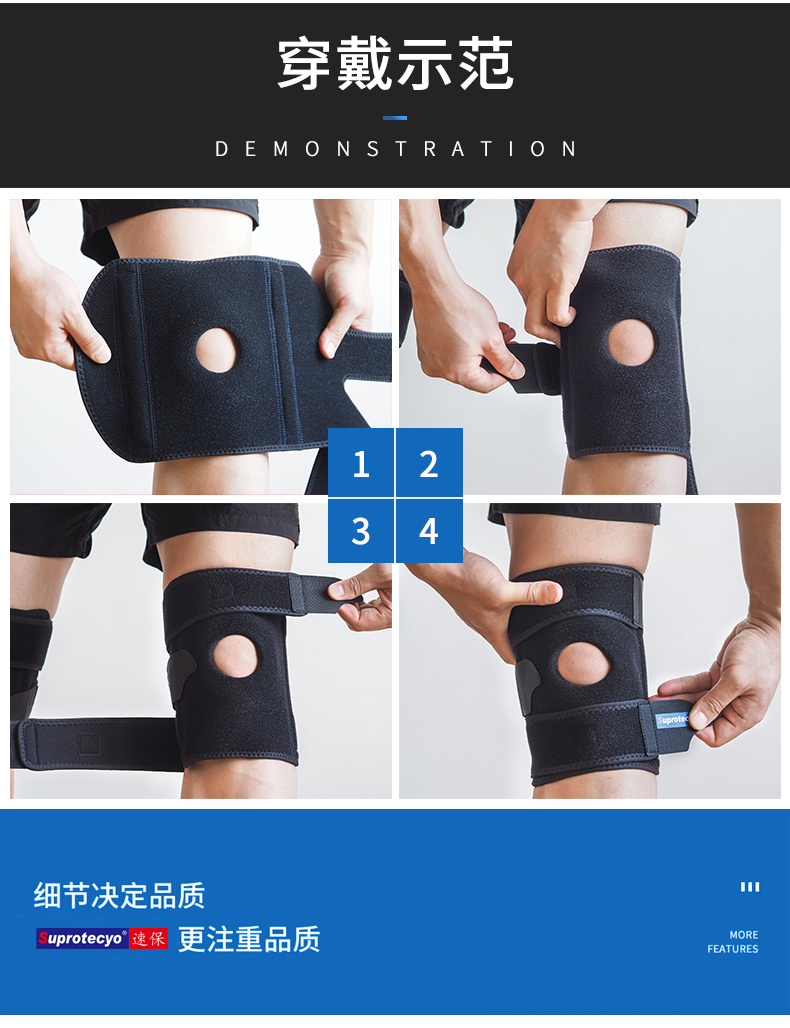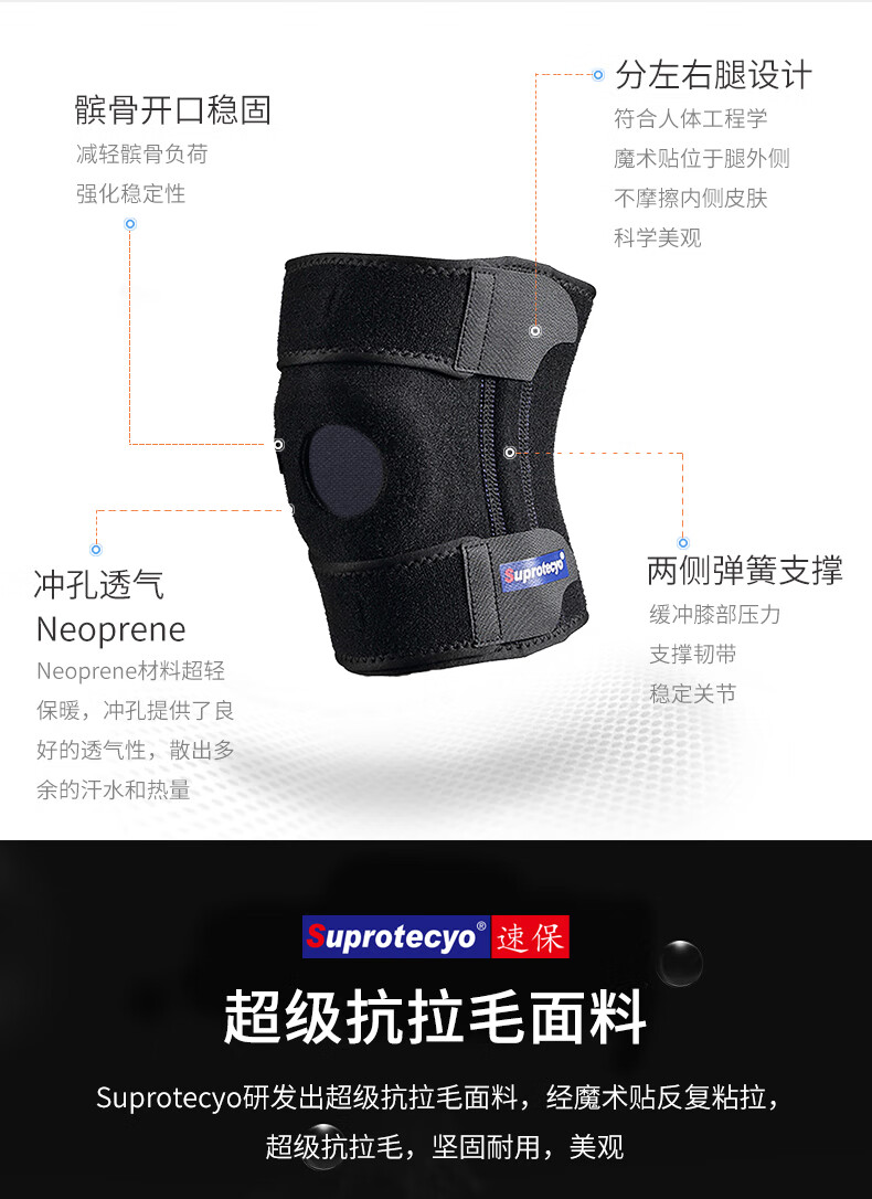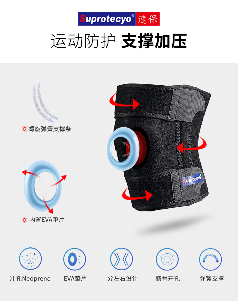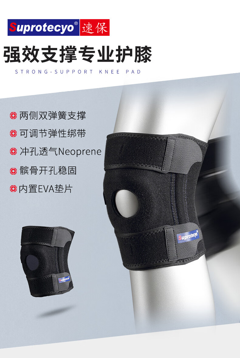 Suprotecyo专业运动护膝男女跑步篮球爬山健身弹簧支撑半月板护具 大膝宝A8(右腿) 均 码 (膝围32-40cm)