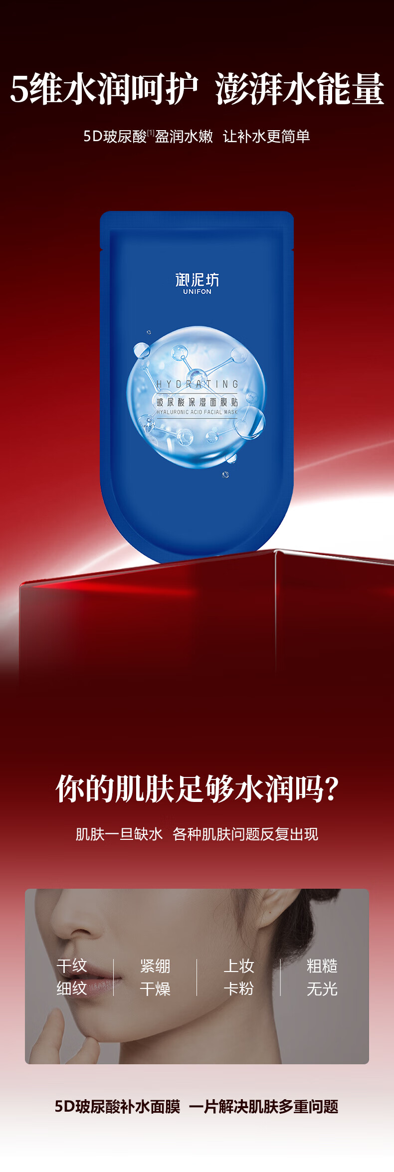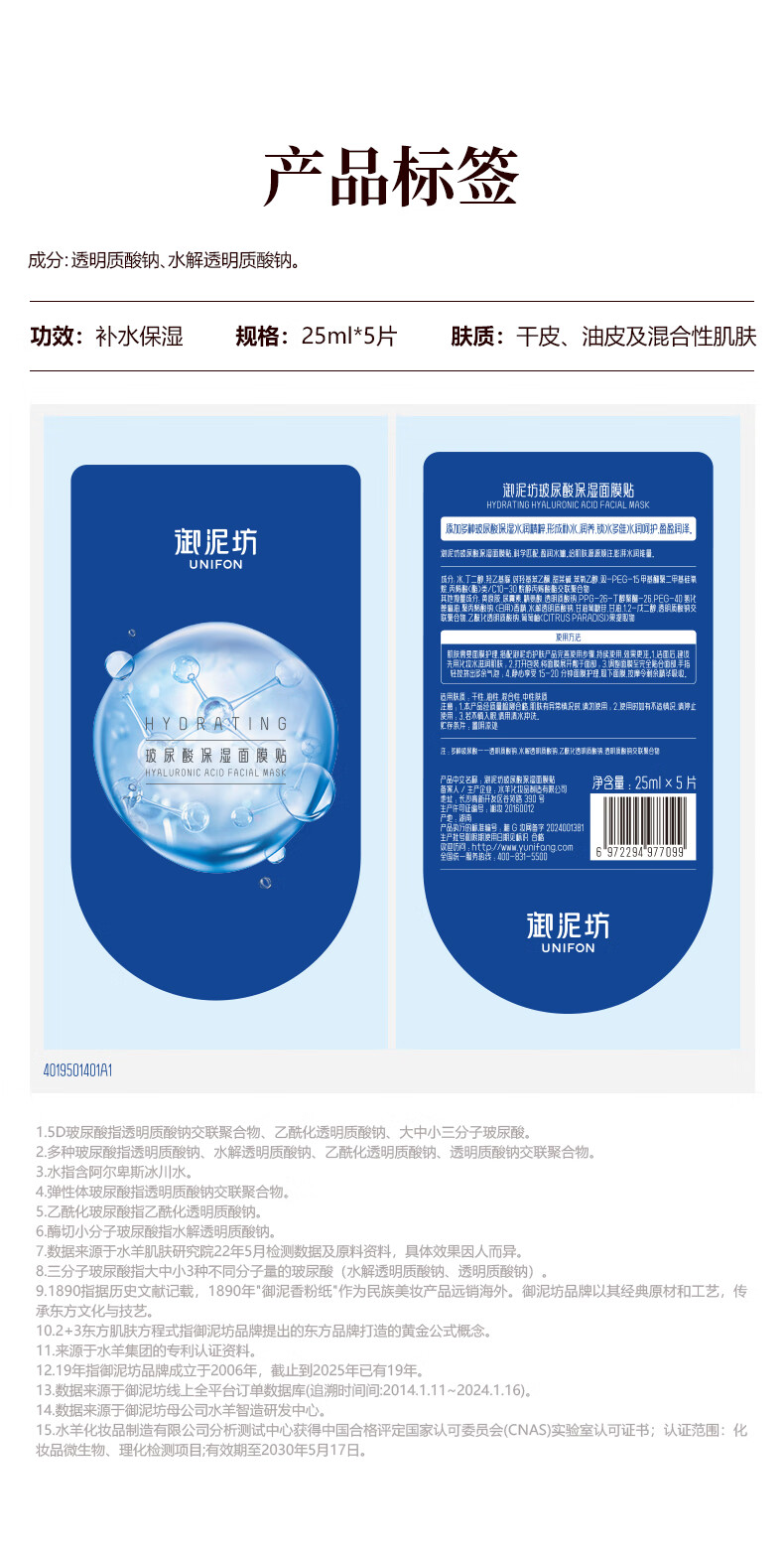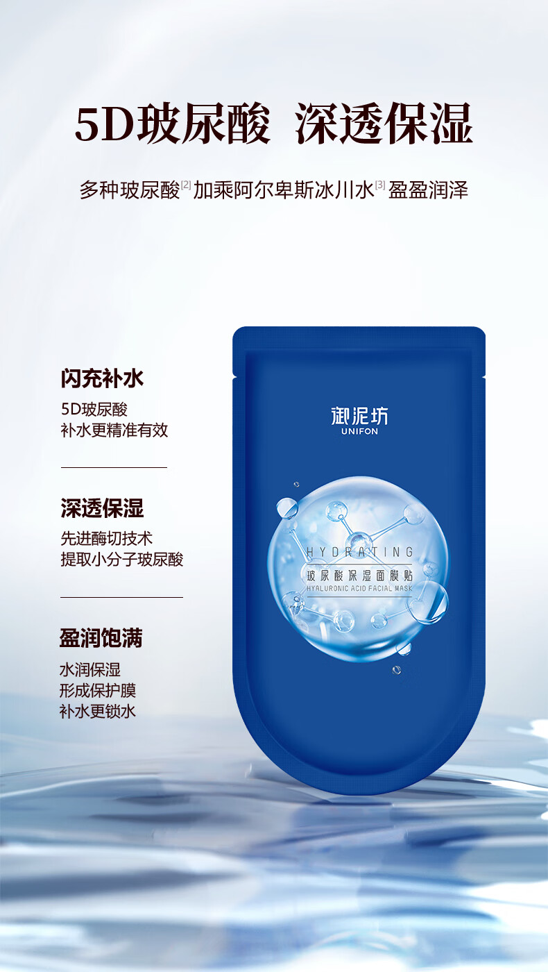 御泥坊【超值玻尿酸补水】5D玻尿保湿面膜闪充补水滋养护肤礼物 玻尿酸面膜30片