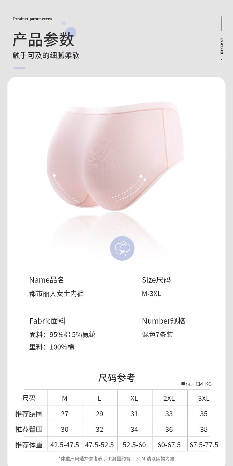 都市丽人女士内裤女纯棉7A抑菌云感棉吸汗透气舒适亲肤少女蝴蝶结内裤7条 款式一 XL