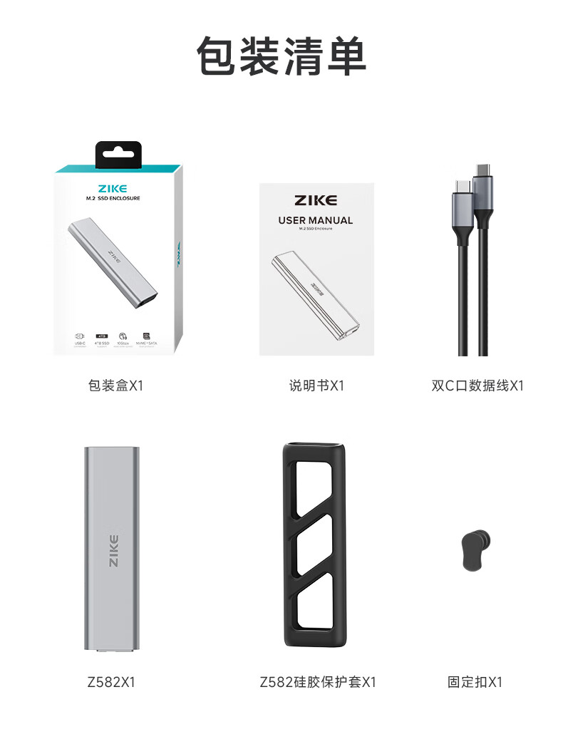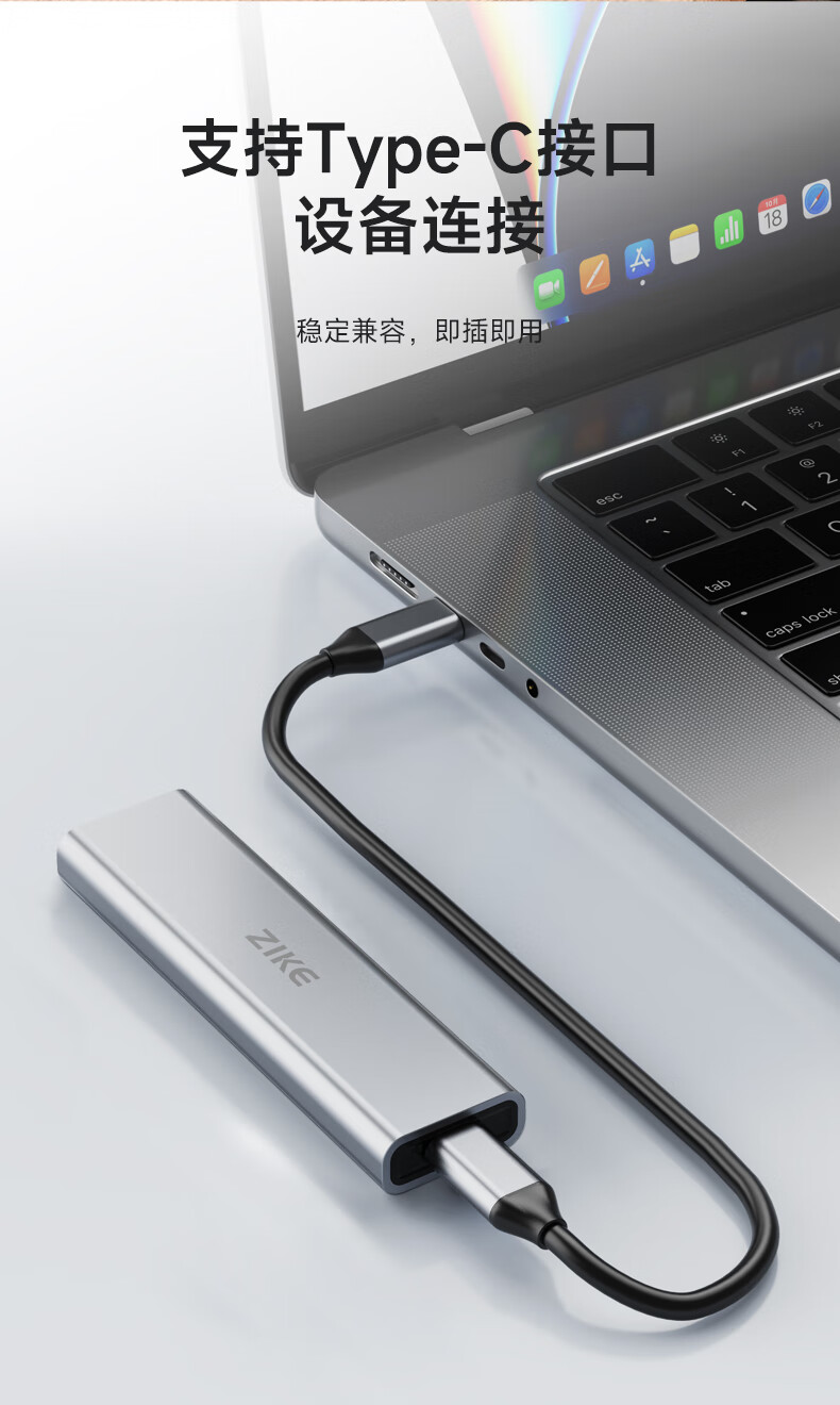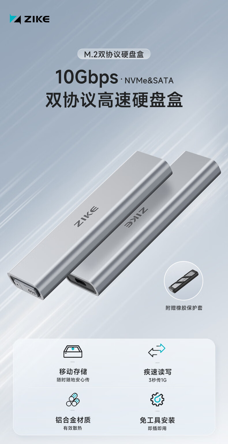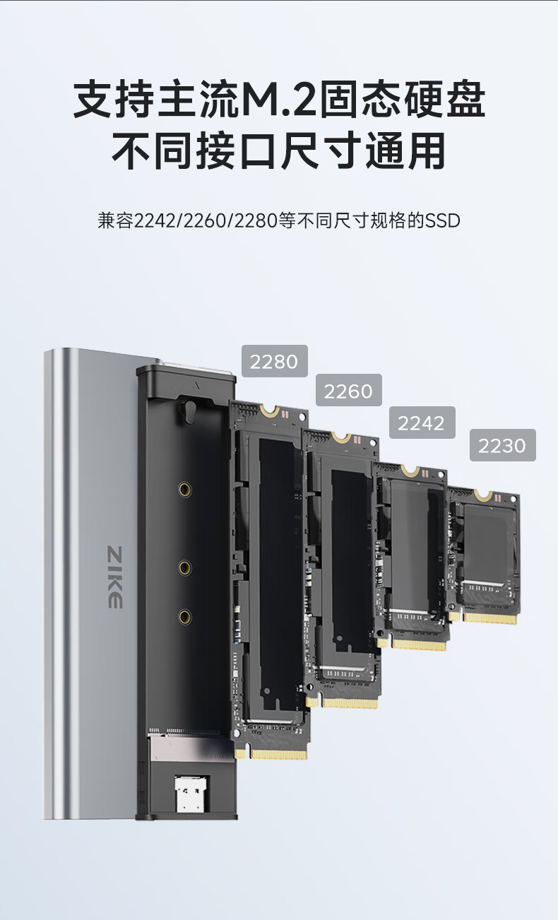 ZIKE m.2移动nvme固态硬盘盒子外接盒M2Type-C/USB3.2接口外置笔记本电脑SSD