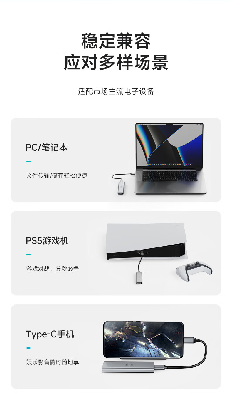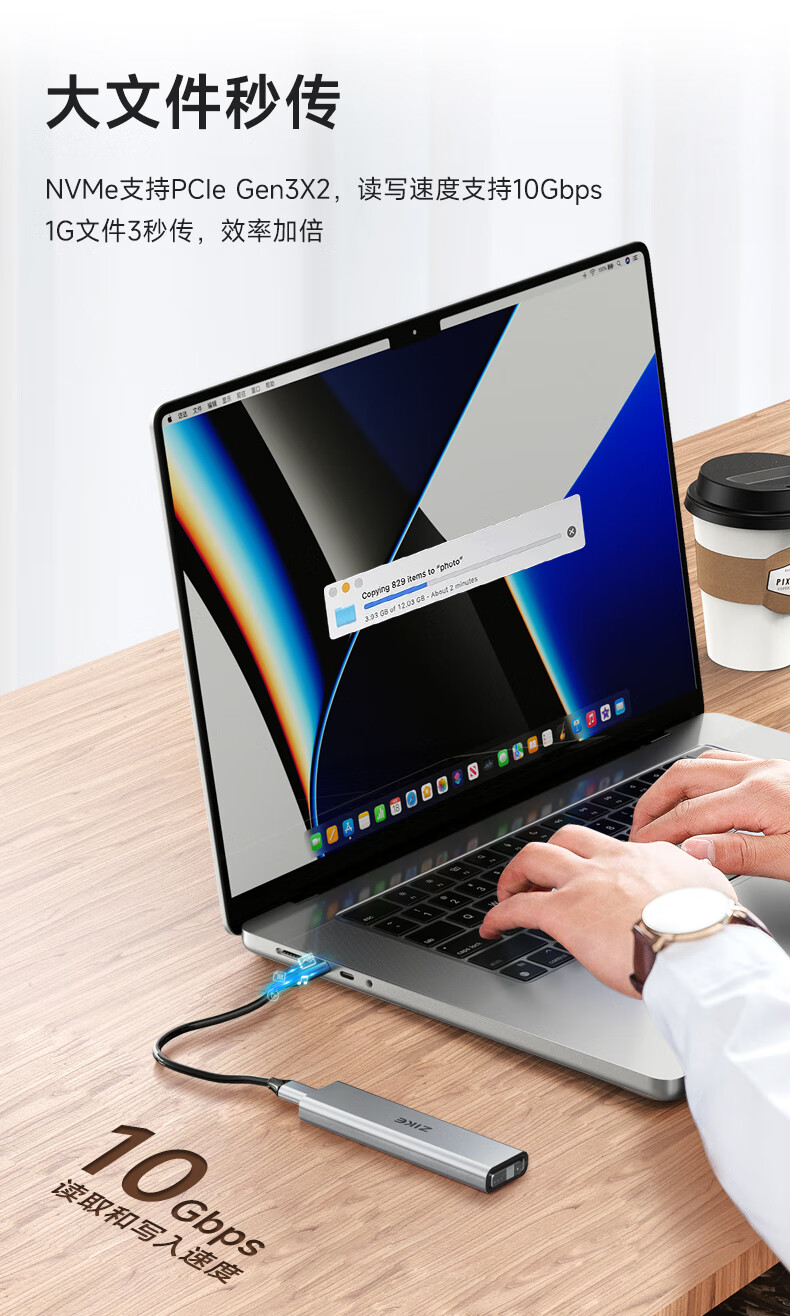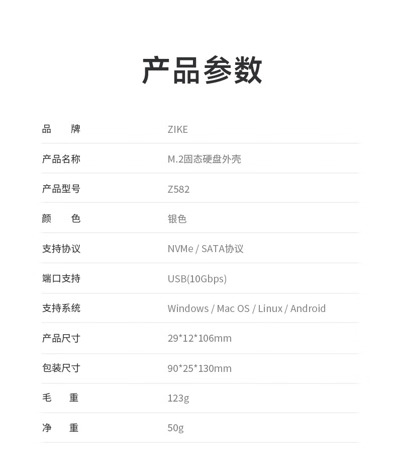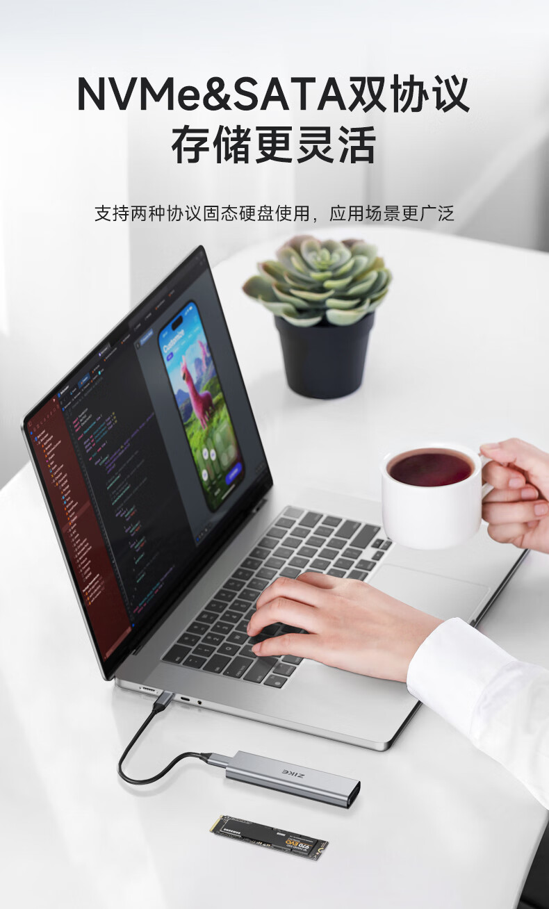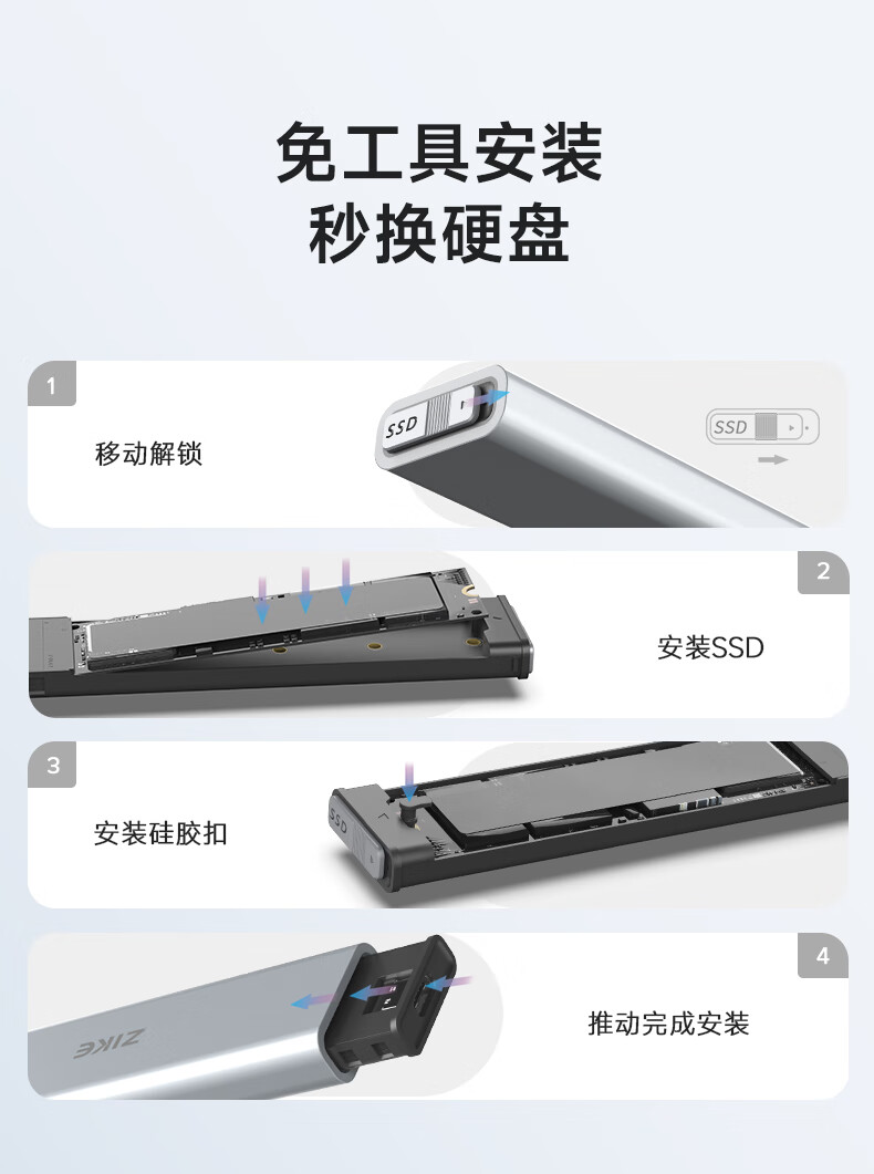 ZIKE m.2移动nvme固态硬盘盒子外接盒M2Type-C/USB3.2接口外置笔记本电脑SSD
