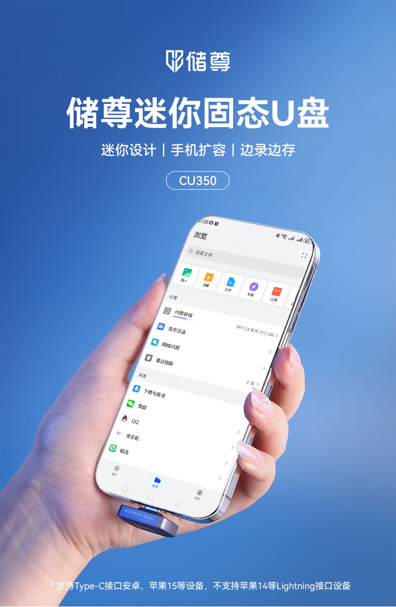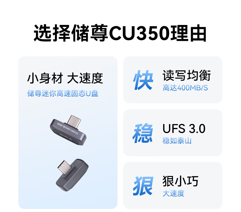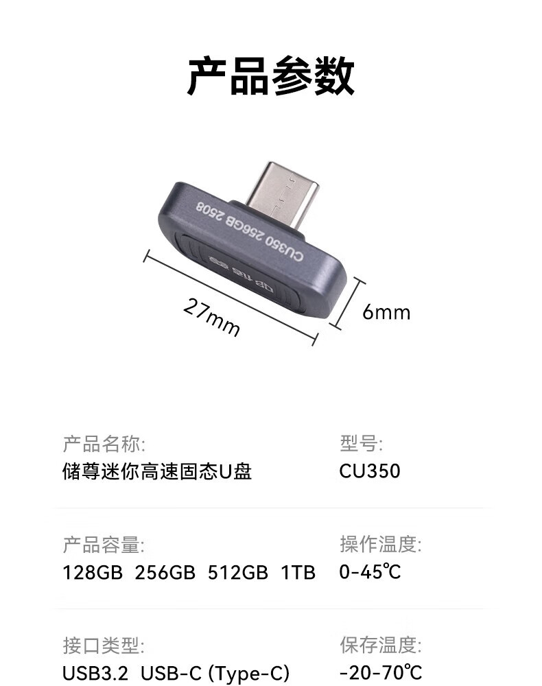 储尊Type-C固态手机U盘 迷你车载哨兵高速U盘CU350 读写速400MB/s固态级大容量优盘 1TB