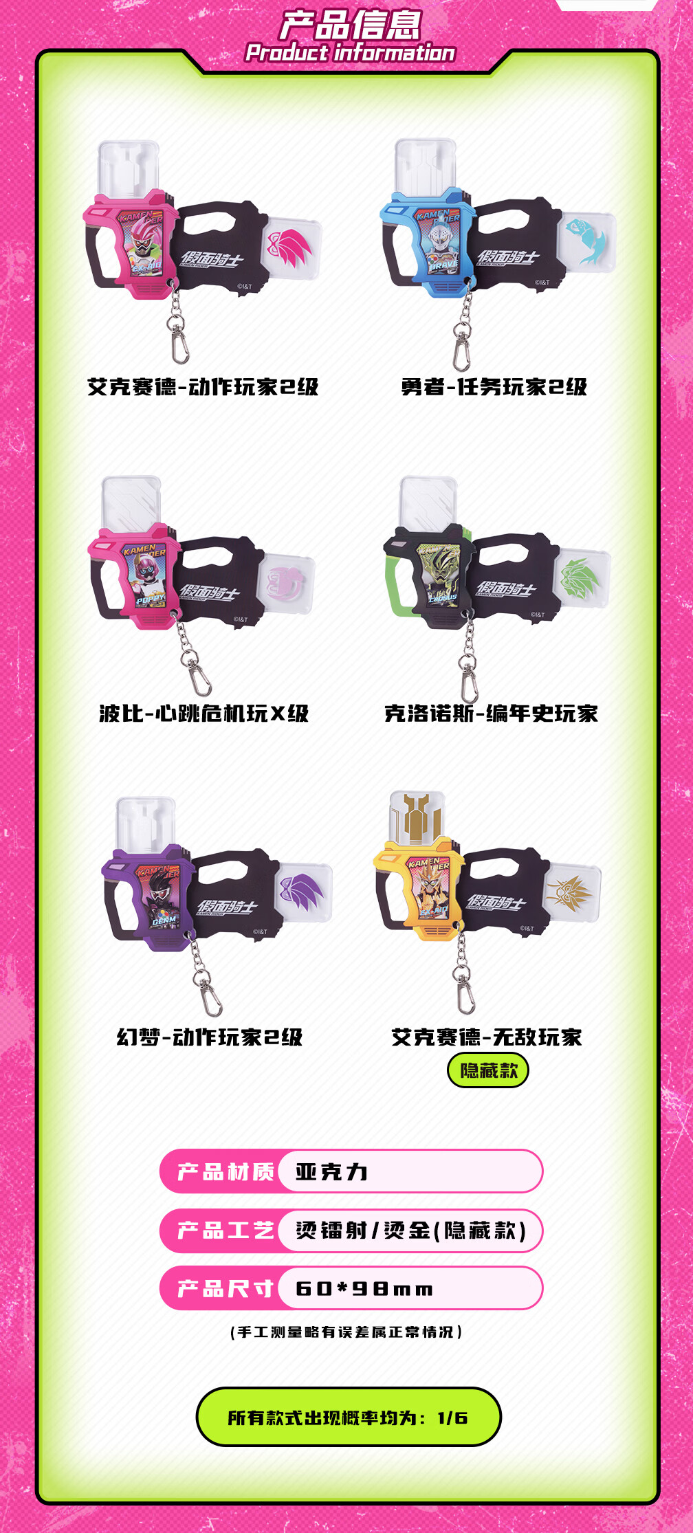 moeyu假面骑士艾克赛德系列亚克力挂件钥匙扣二次元周边谷子盲盒 随机单抽1个【拍6个发整盒】
