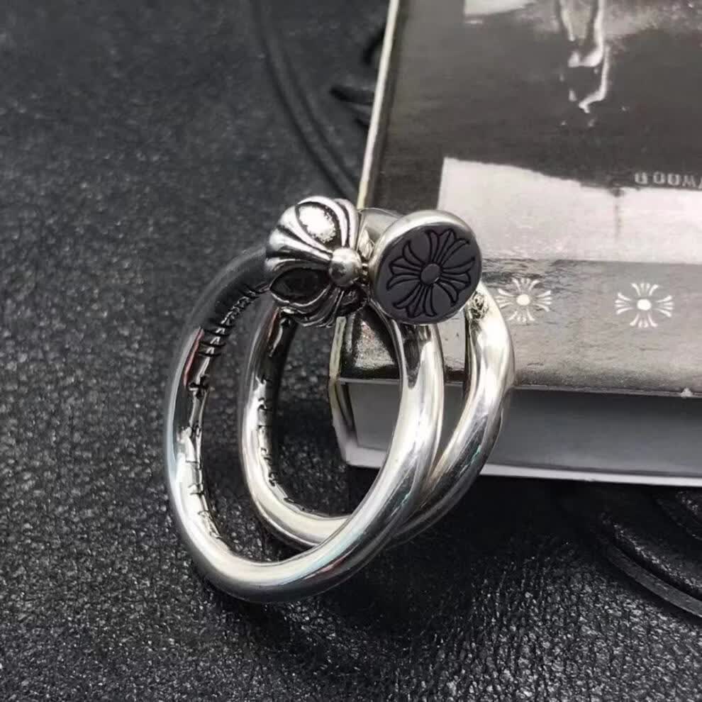 克罗心(chrome heart)戒指镶钻十字架鸢尾花厚身潮流指环欧美朋克情侣开口 JZ11银色 开口可调节