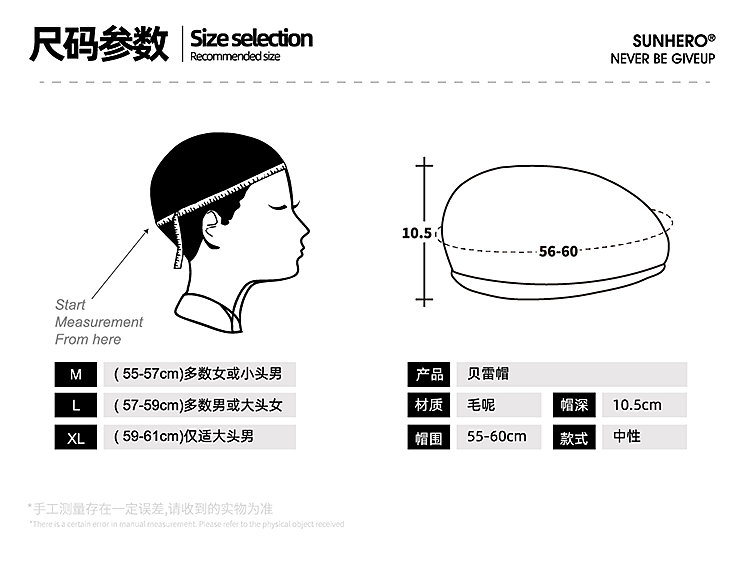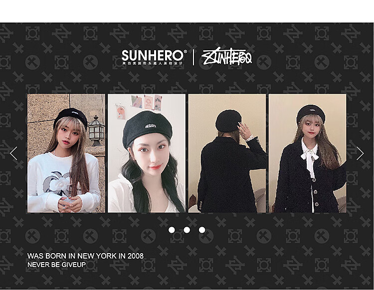 sunhero美潮毛尼贝雷帽反戴前进帽复古雅痞风显脸小画家帽秋款 品牌涂鸦贝雷帽 M (55-57cm)[女款或小头男]
