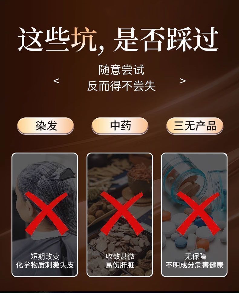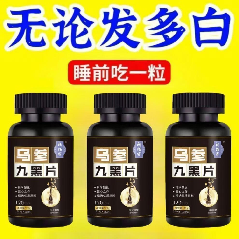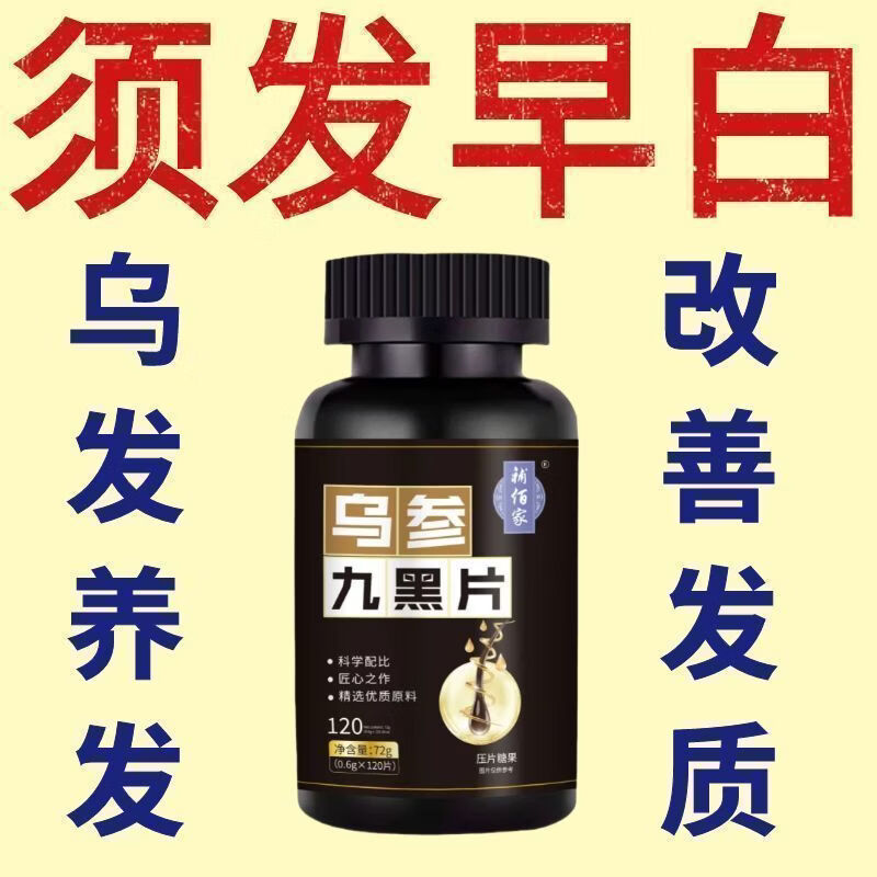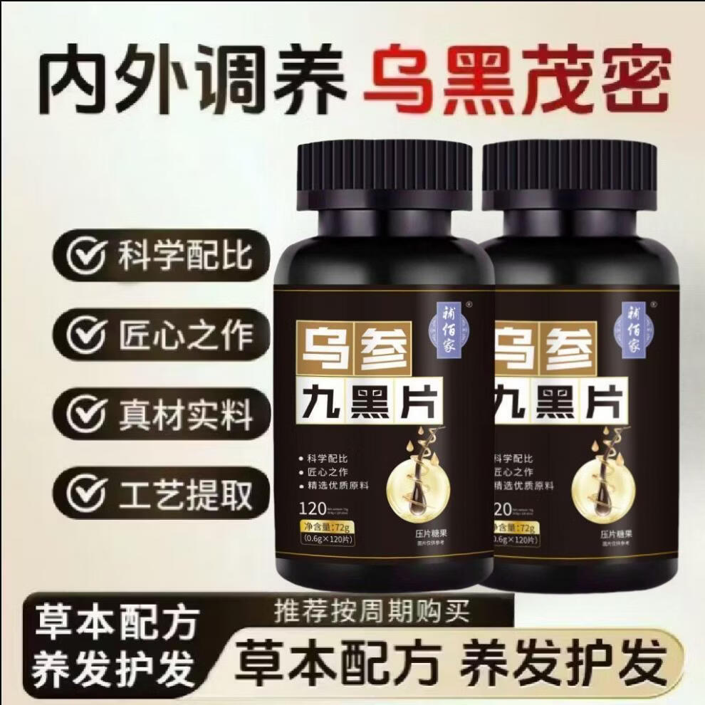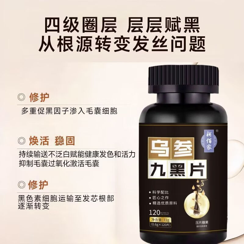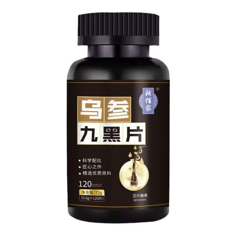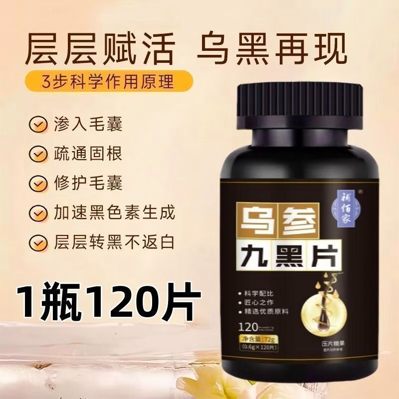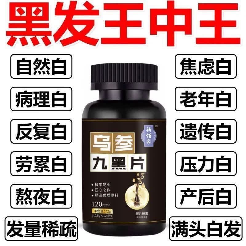 馨草纲目乌参九黑片搭配改善头发白发脱发成人黑发生发少中老年白发强健发 [白发不再] 120粒*1瓶