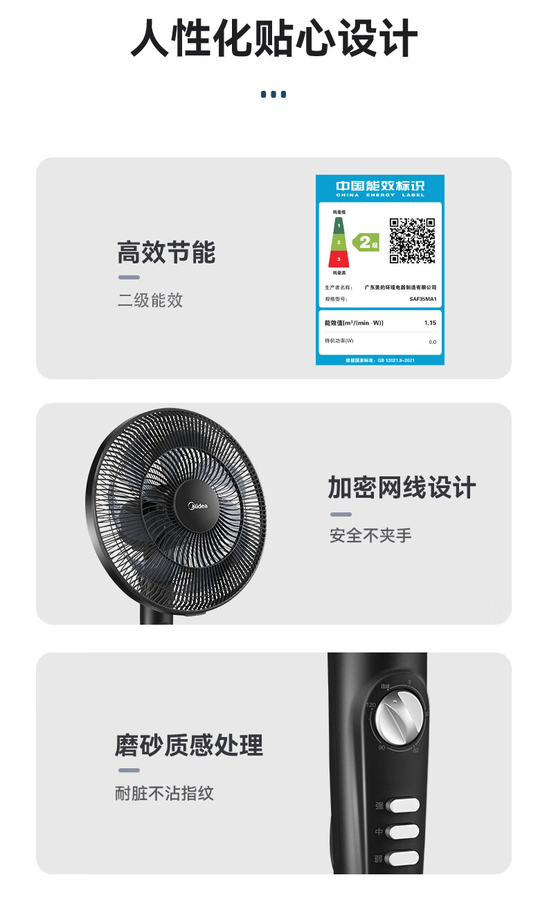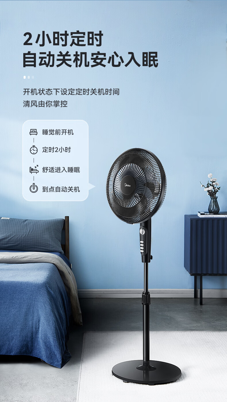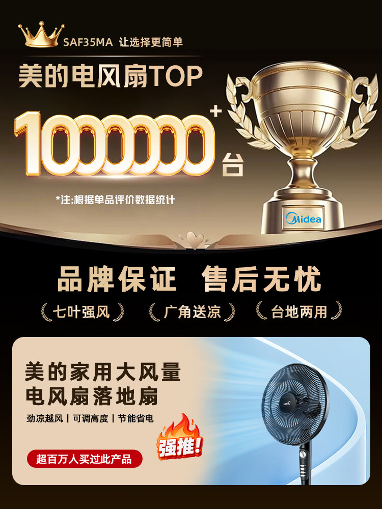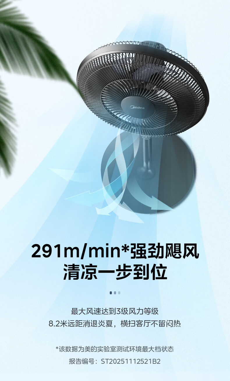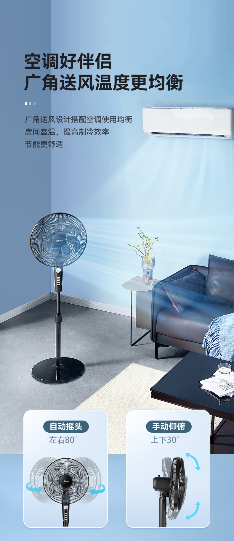 美的(Midea)电风扇家用大风力落地扇 高度可调远距离强劲风力 卧室客厅定时轻音节能风扇 户外循环摇头送凉风 【升级二级能效】35cm扇叶