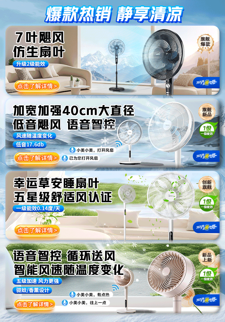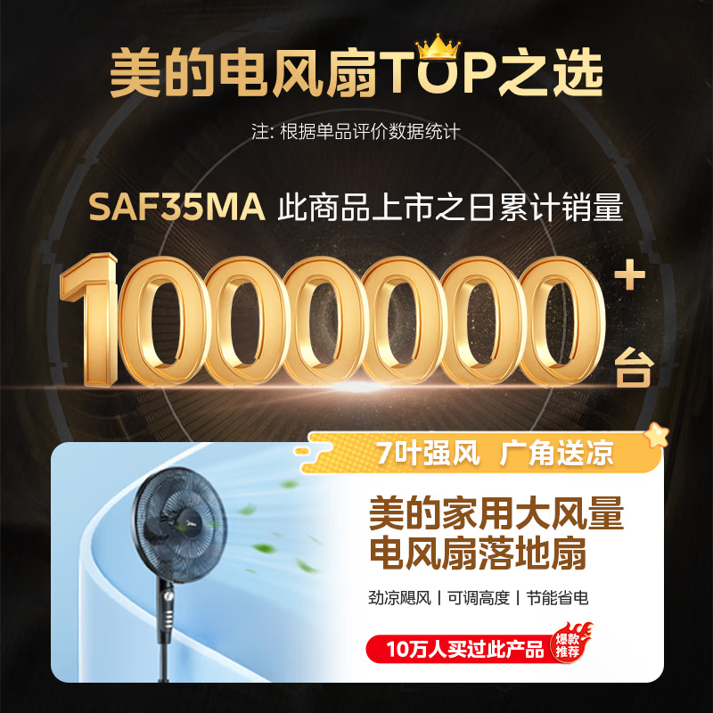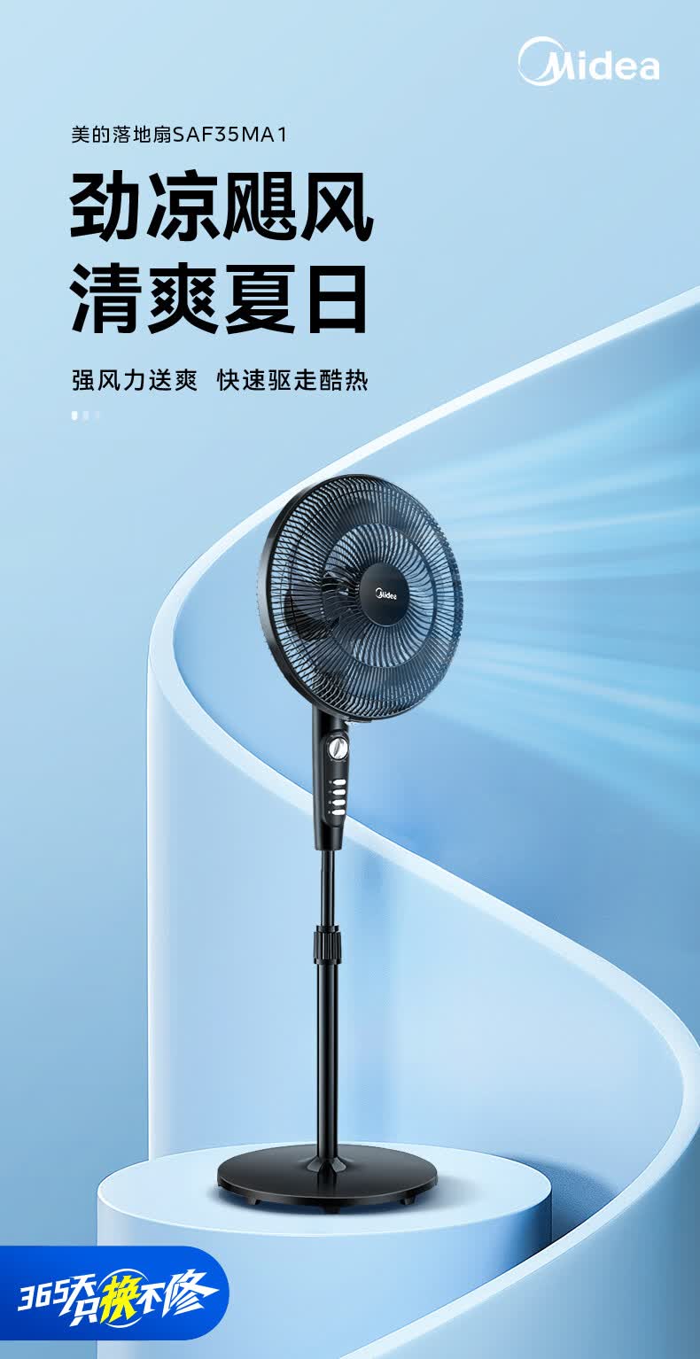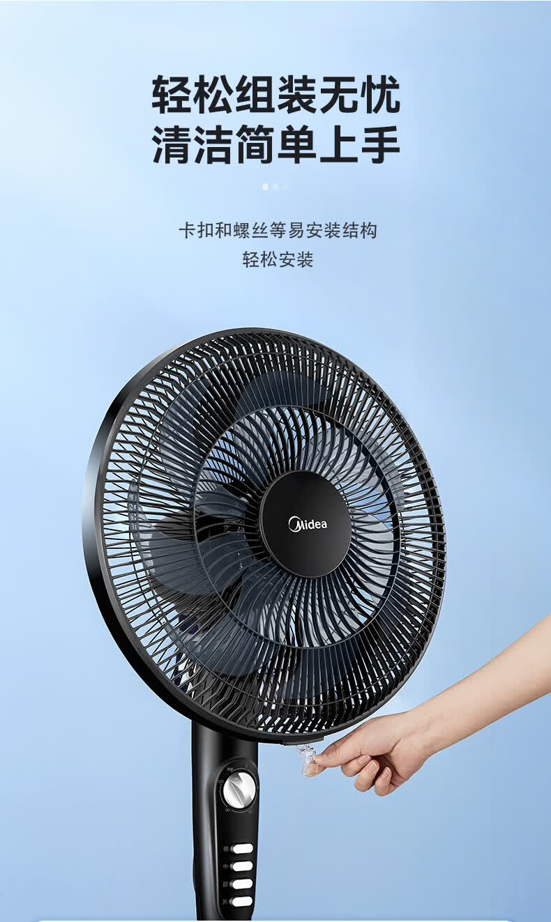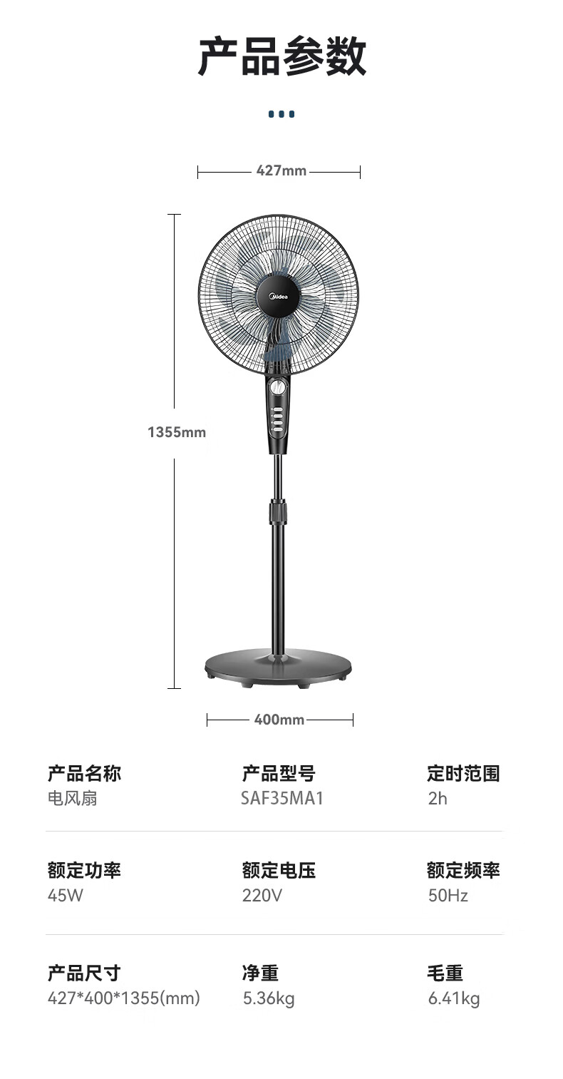 美的(Midea)电风扇家用大风力落地扇 高度可调远距离强劲风力 卧室客厅定时轻音节能风扇 户外循环摇头送凉风 【升级二级能效】35cm扇叶