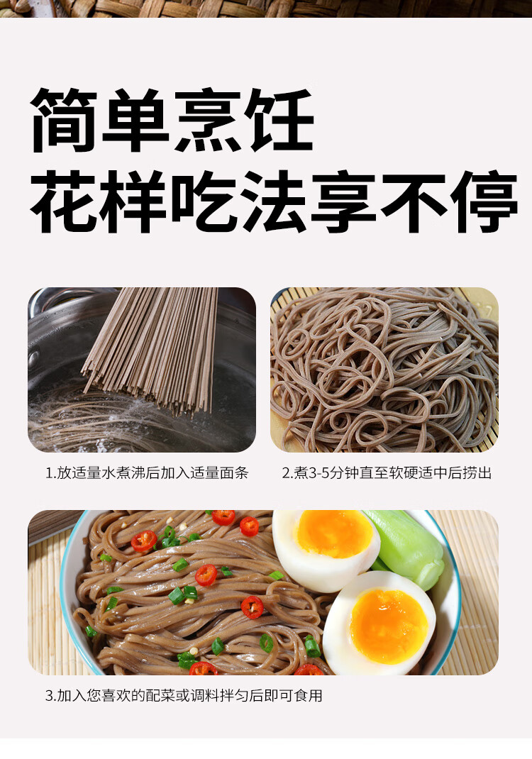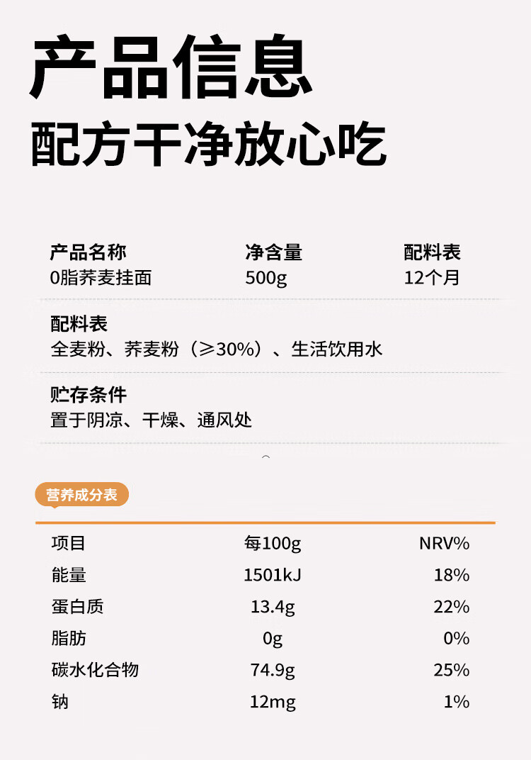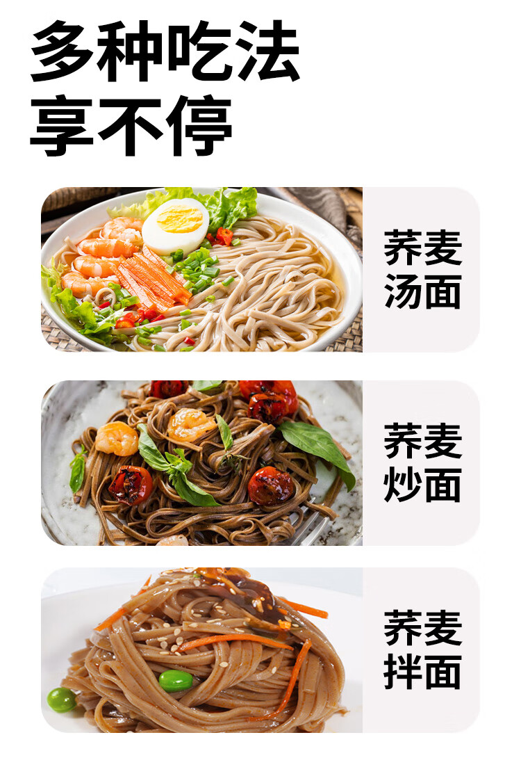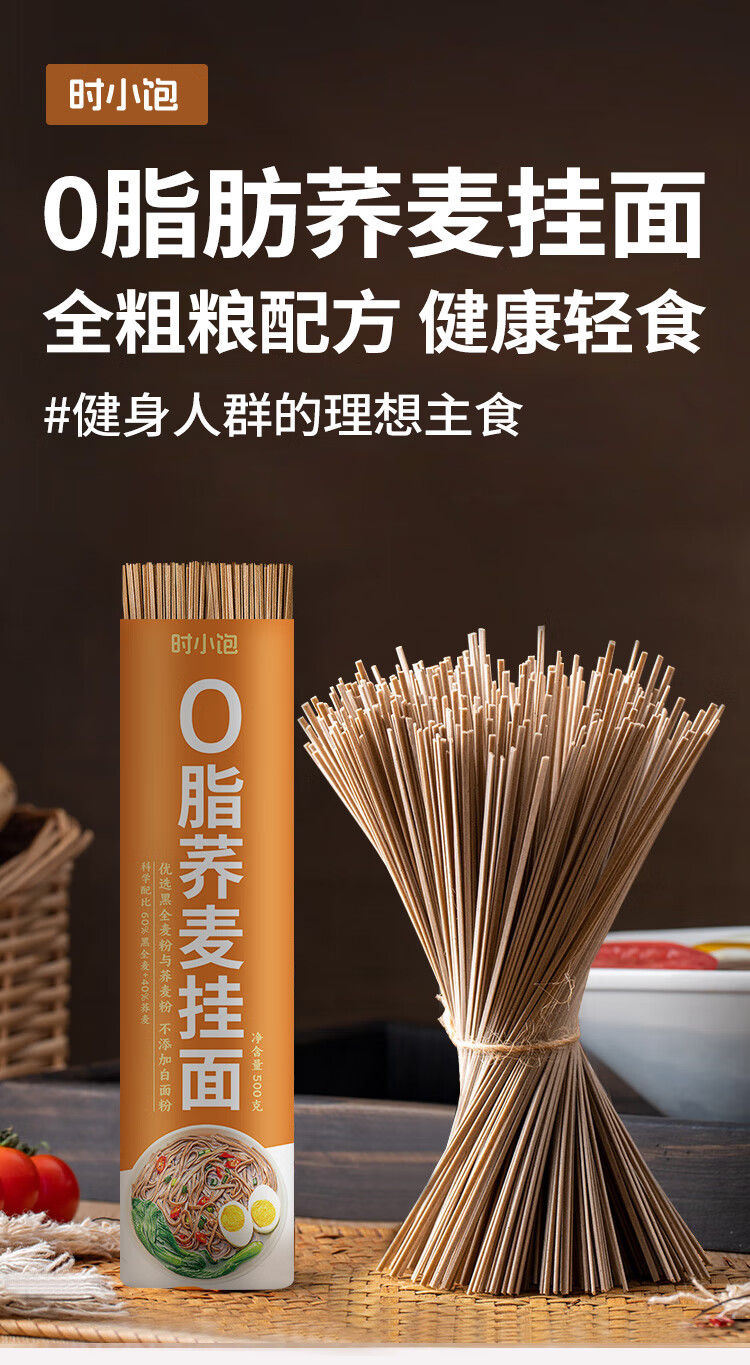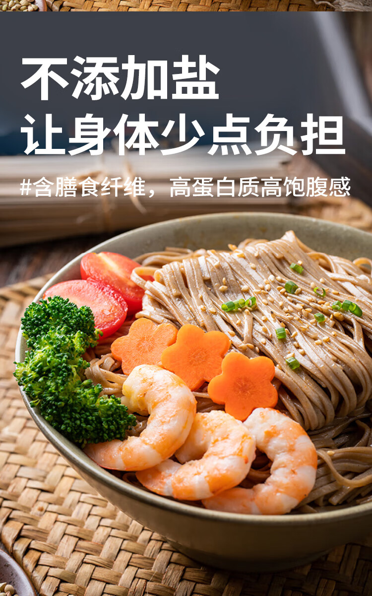 时小饱 0脂肪荞麦龙须面500g粗粮面条100%挂面糖尿病人杂粮面主食