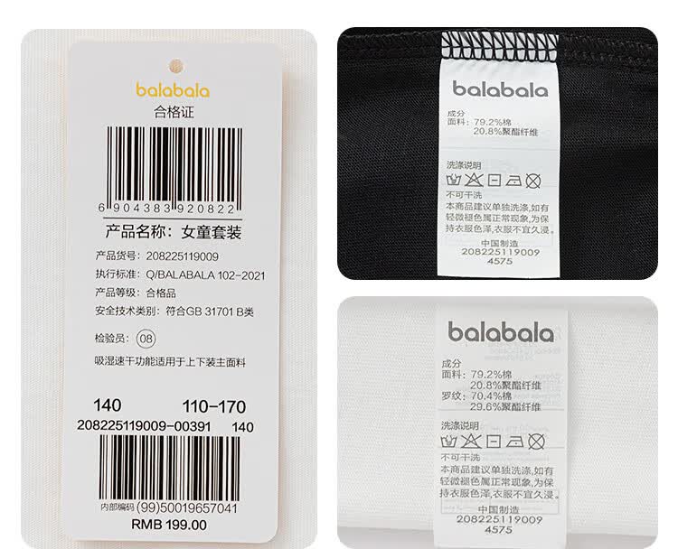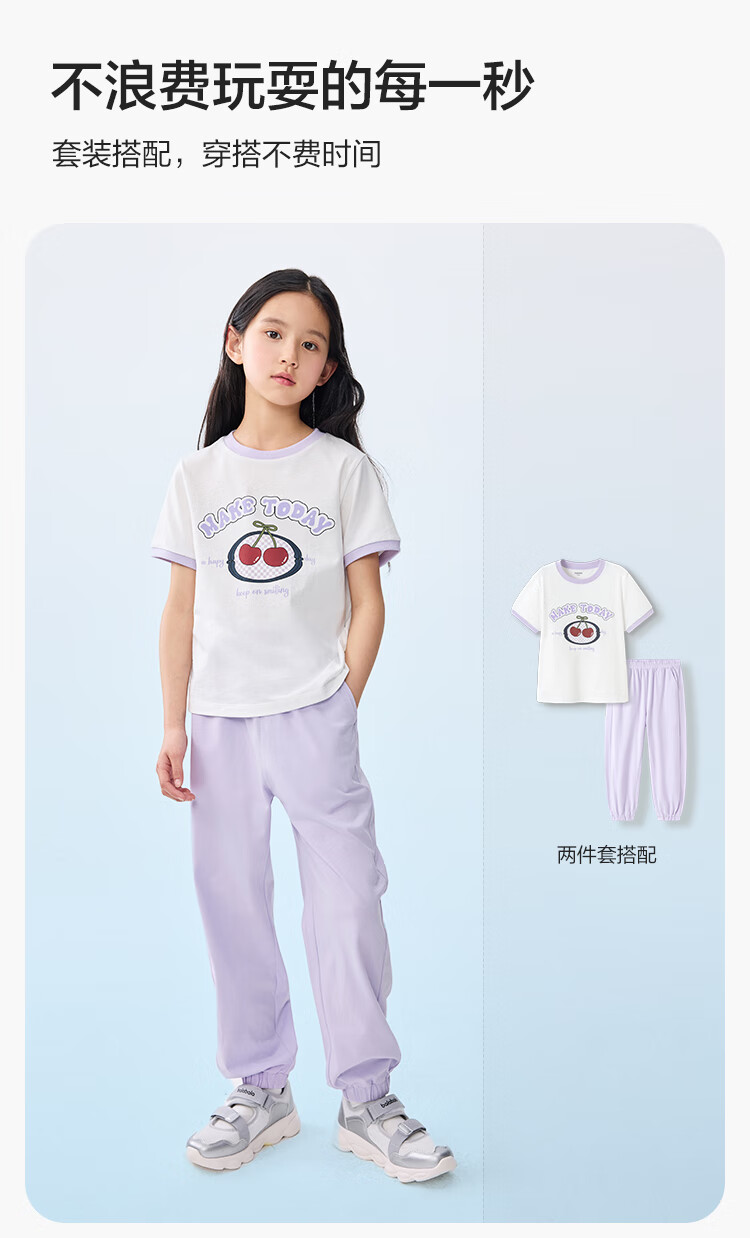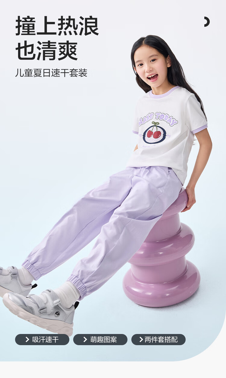 巴拉巴拉童装儿童短袖套装女童2025夏装两件套速干长裤学院风208225119009