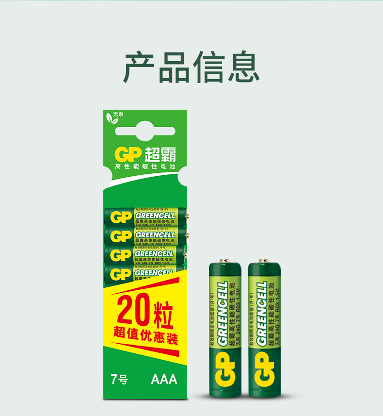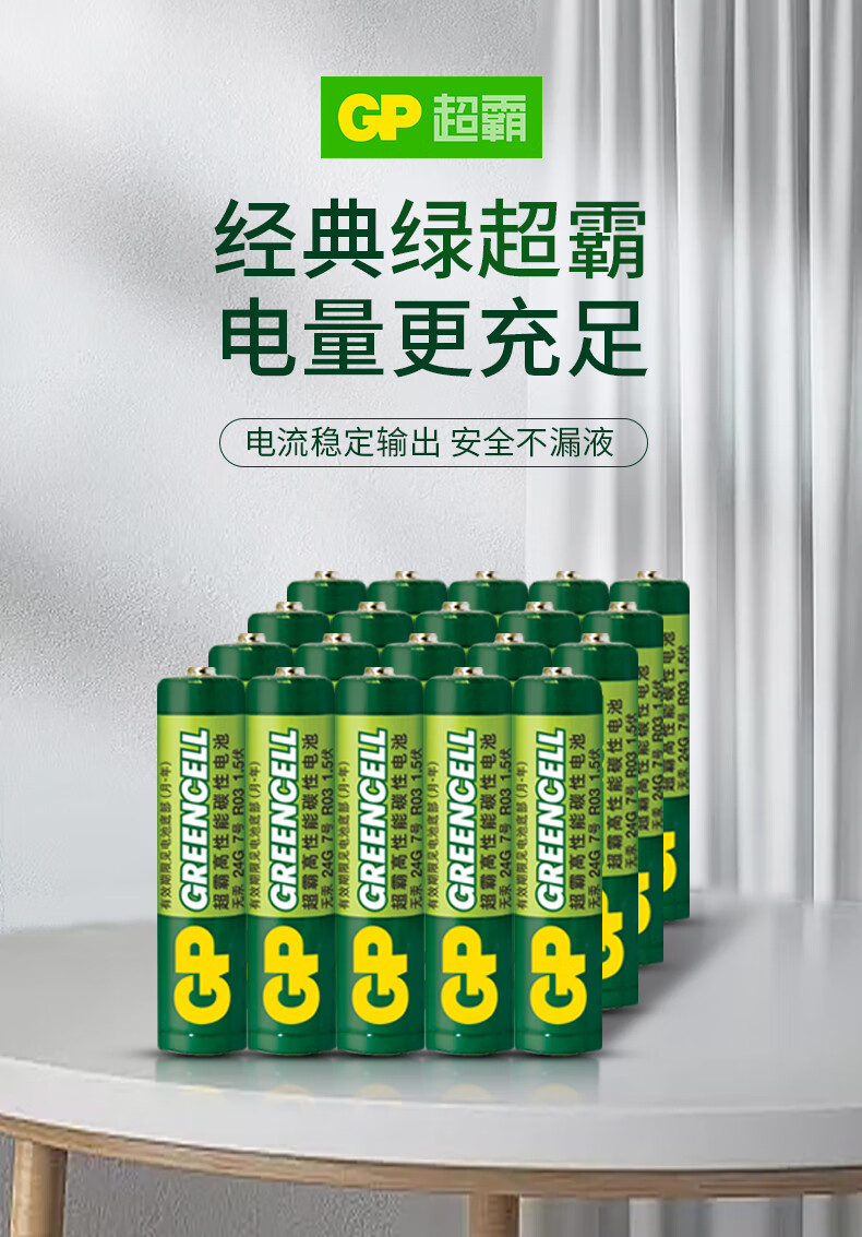 超霸(GP)7号电池20粒七号碳性干电池适用于低耗电玩具/耳温枪/血氧仪/血压计/血糖仪等7号/AAA/R03单件包邮