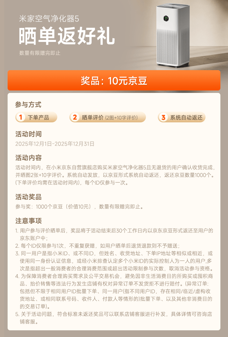 米家小米空气净化器5 【缓解花粉过敏】除甲醛除菌除异味 家用 除雾霾PM2.5 低噪设计