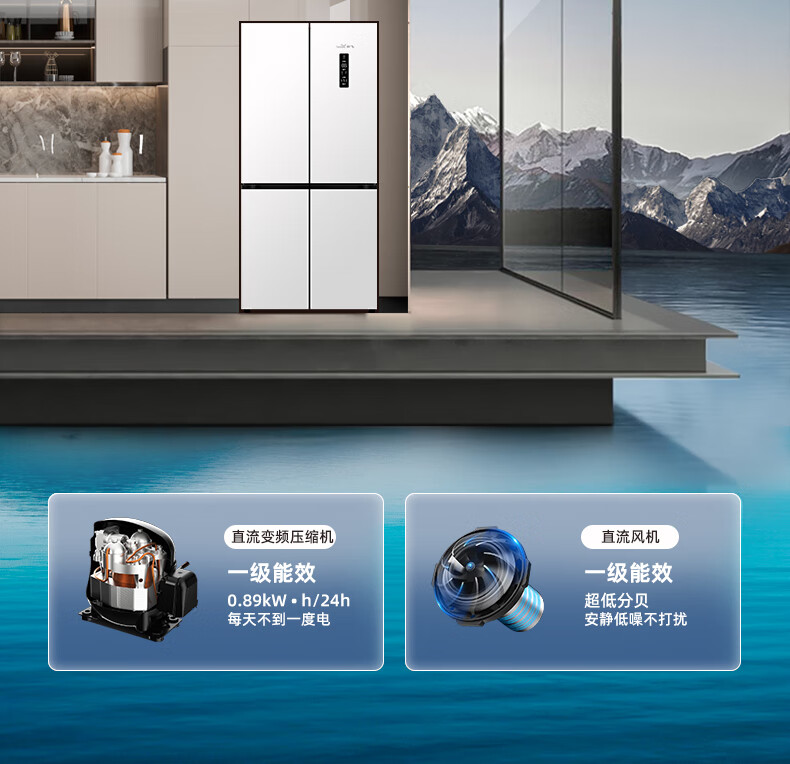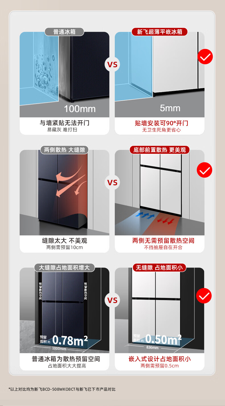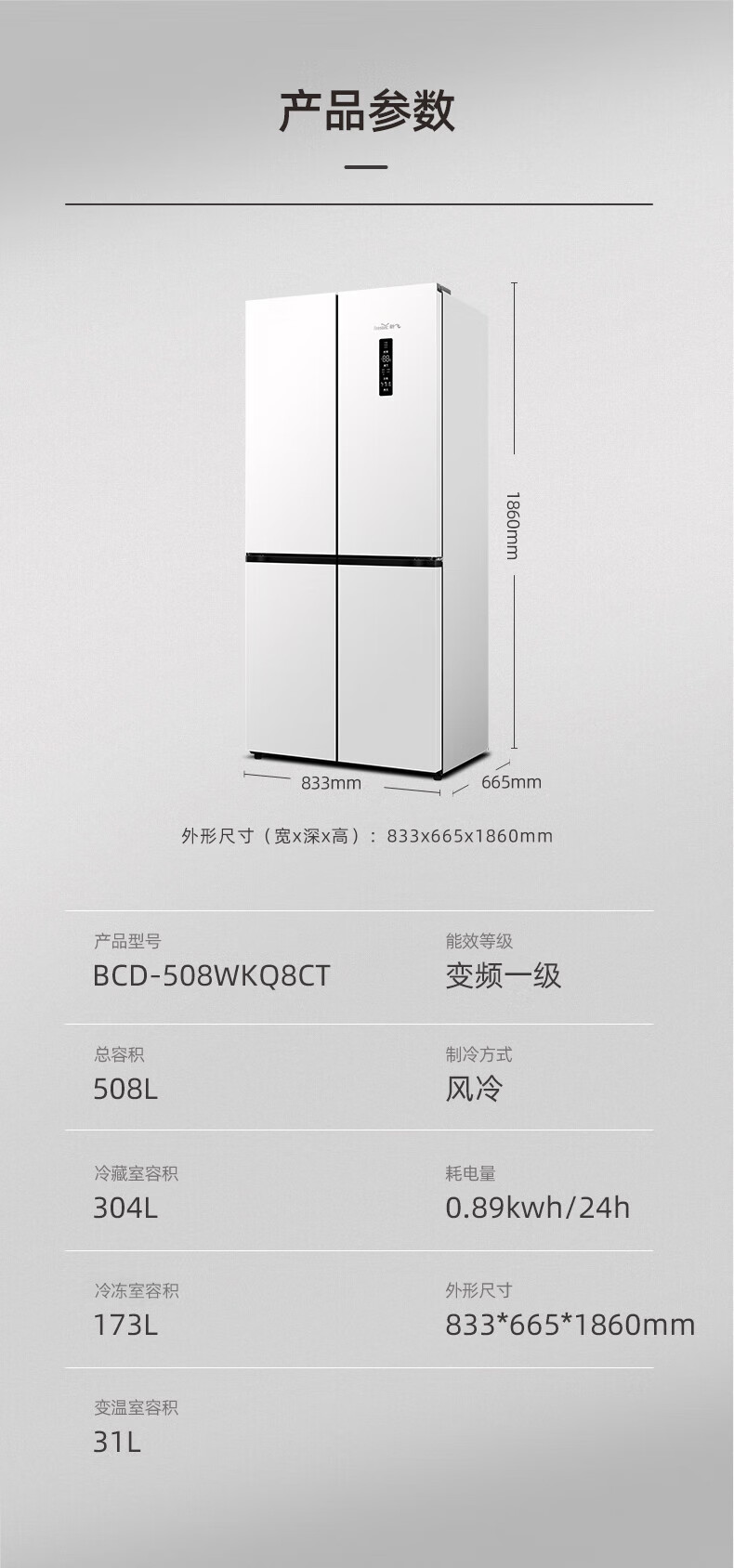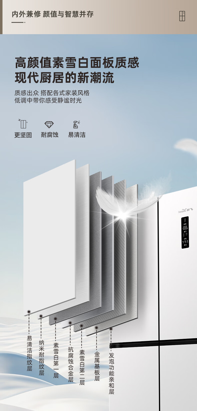 新飞508L十字门负离子主动除菌移动制冰舱超薄零嵌一级风冷无霜大容量冰箱BCD-508WKQ8CT