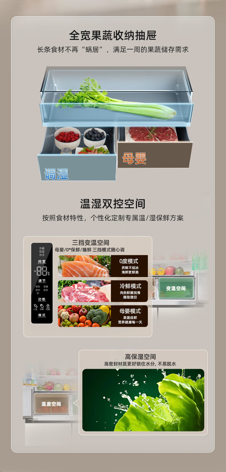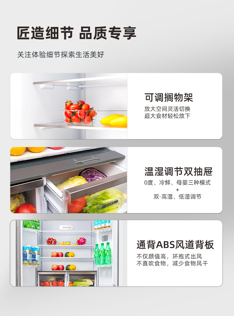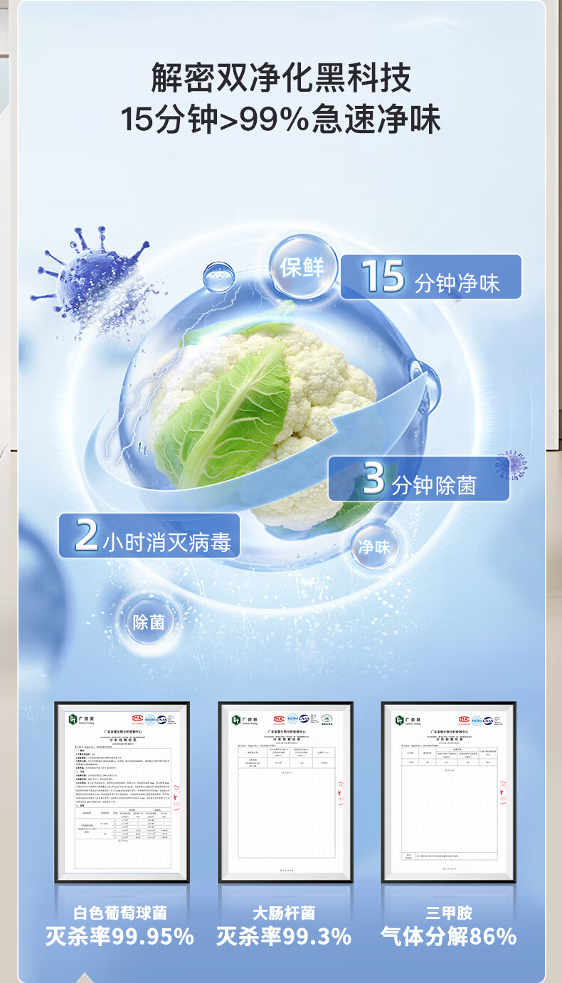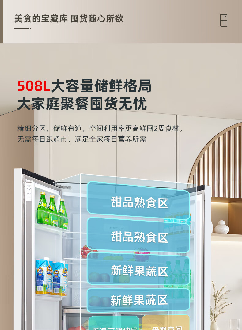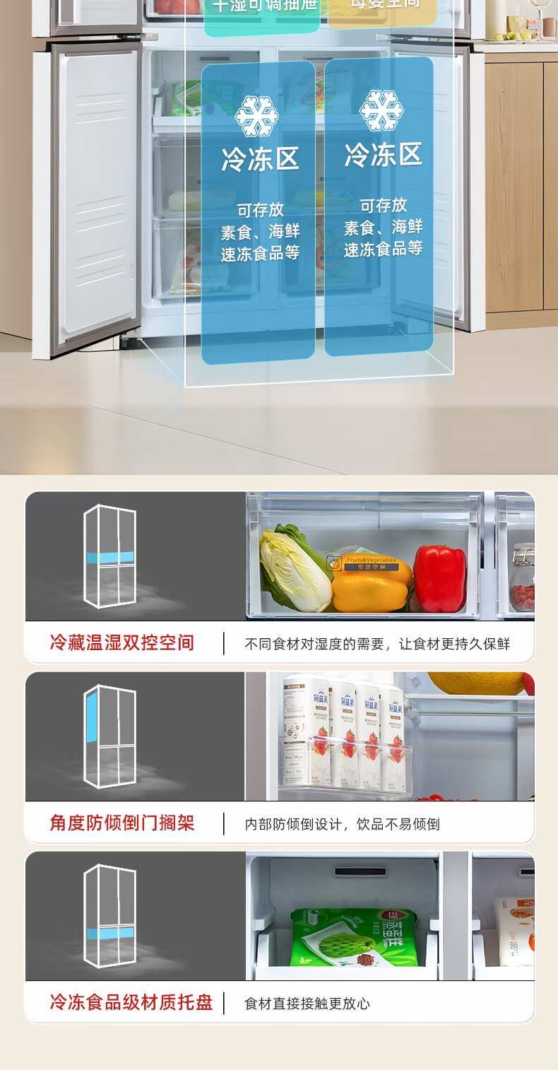 新飞508L十字门负离子主动除菌移动制冰舱超薄零嵌一级风冷无霜大容量冰箱BCD-508WKQ8CT