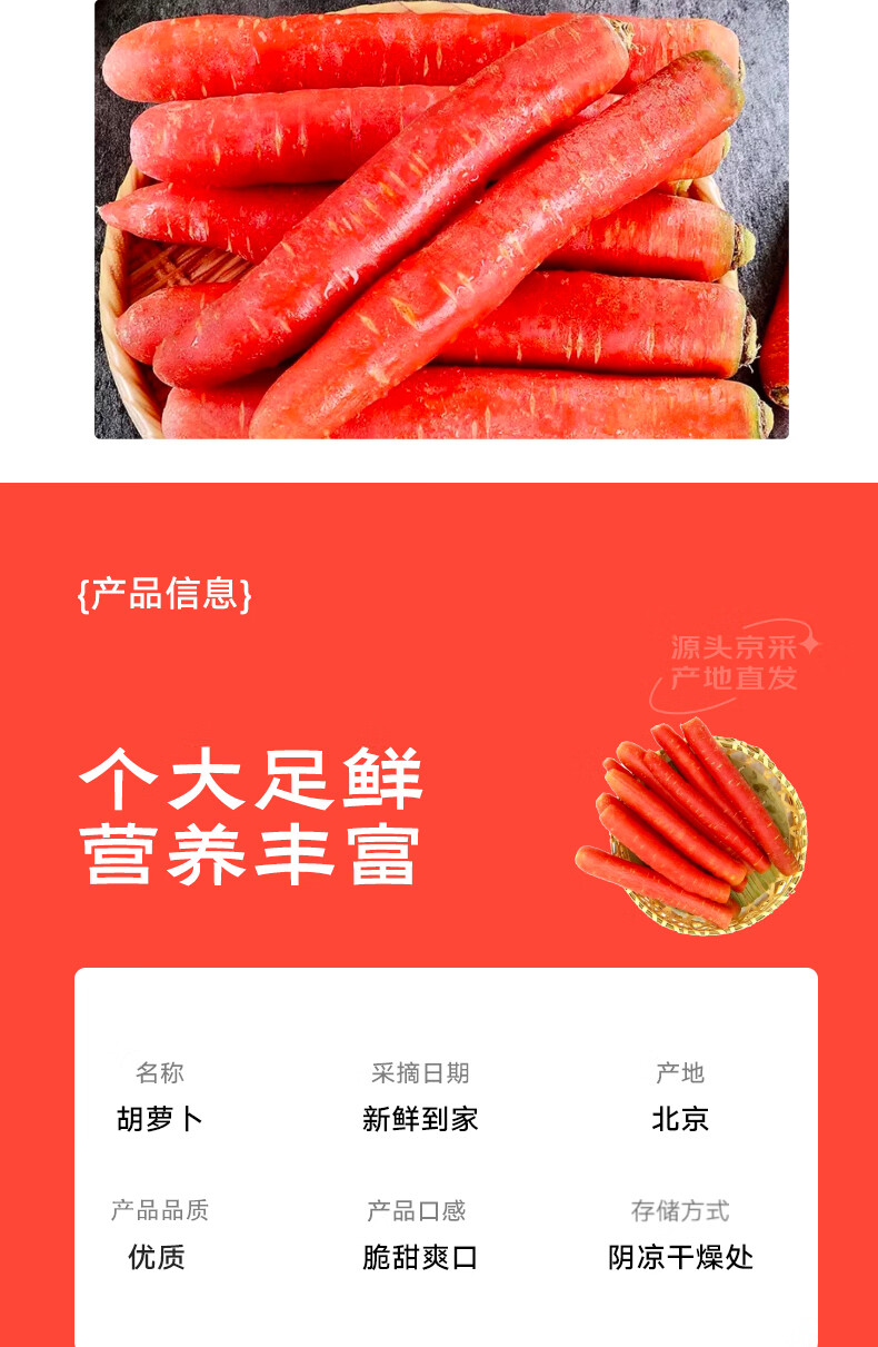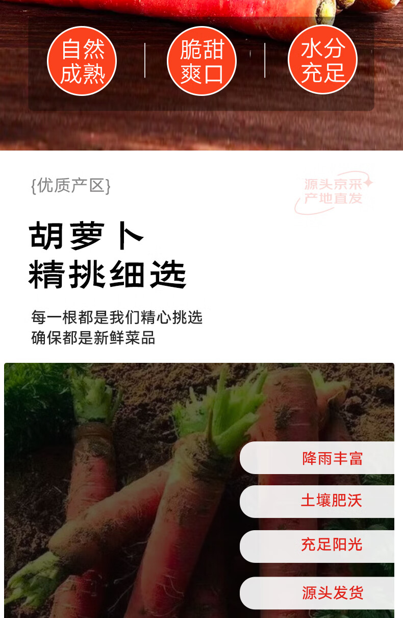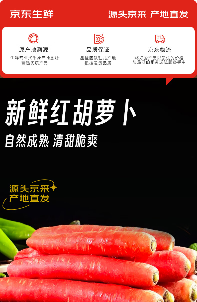 京鲜生水果胡萝卜 新鲜萝卜1.8斤 新鲜蔬菜 源头直发 单果100g