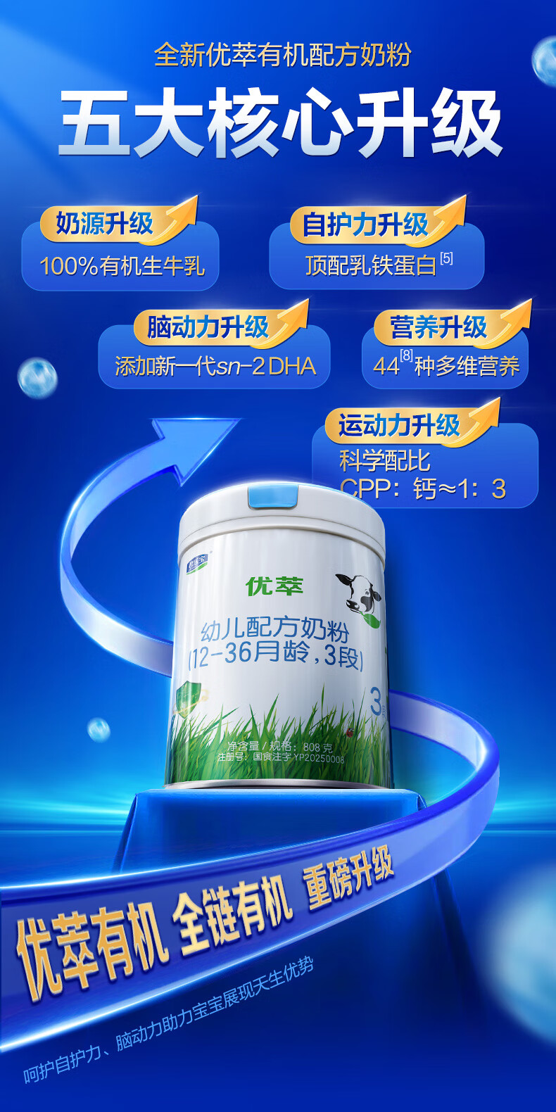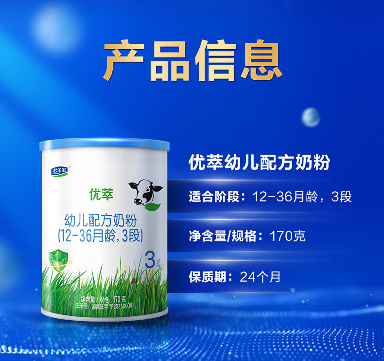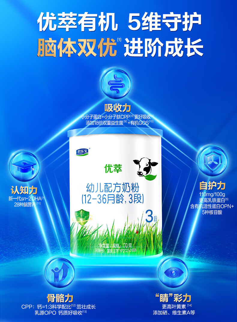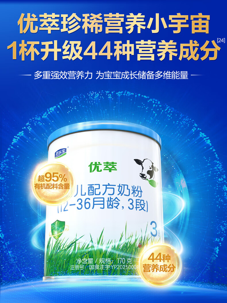 君乐宝有机优萃3段幼儿配方奶粉170g听装(12-36个月幼儿适用)新旧随机