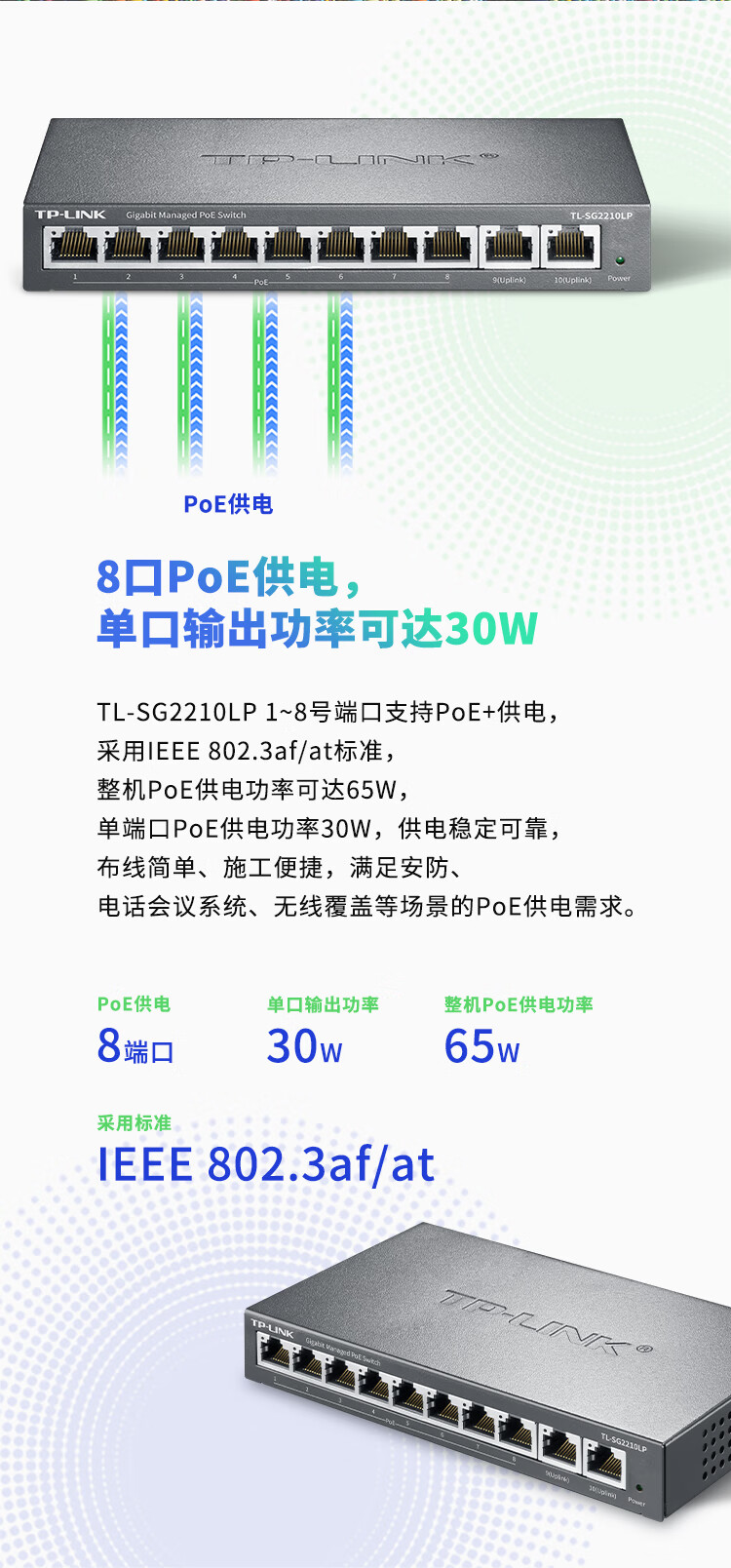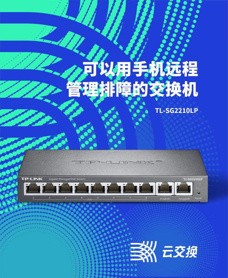 普联(TP-LINK)10口千兆8口PoE交换机 网络分线器分流器交换器 云管理 端口汇聚 NAS适用TL-SG2210LP