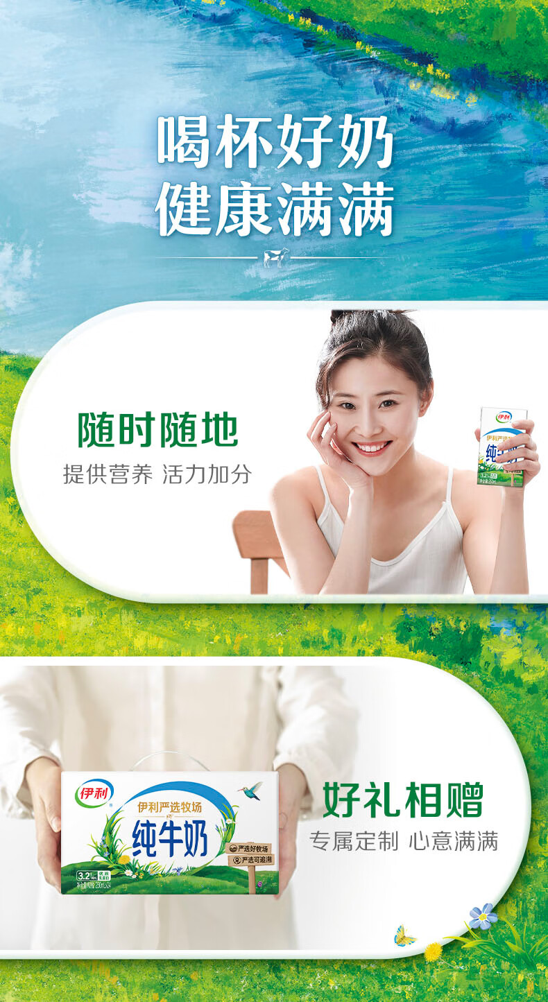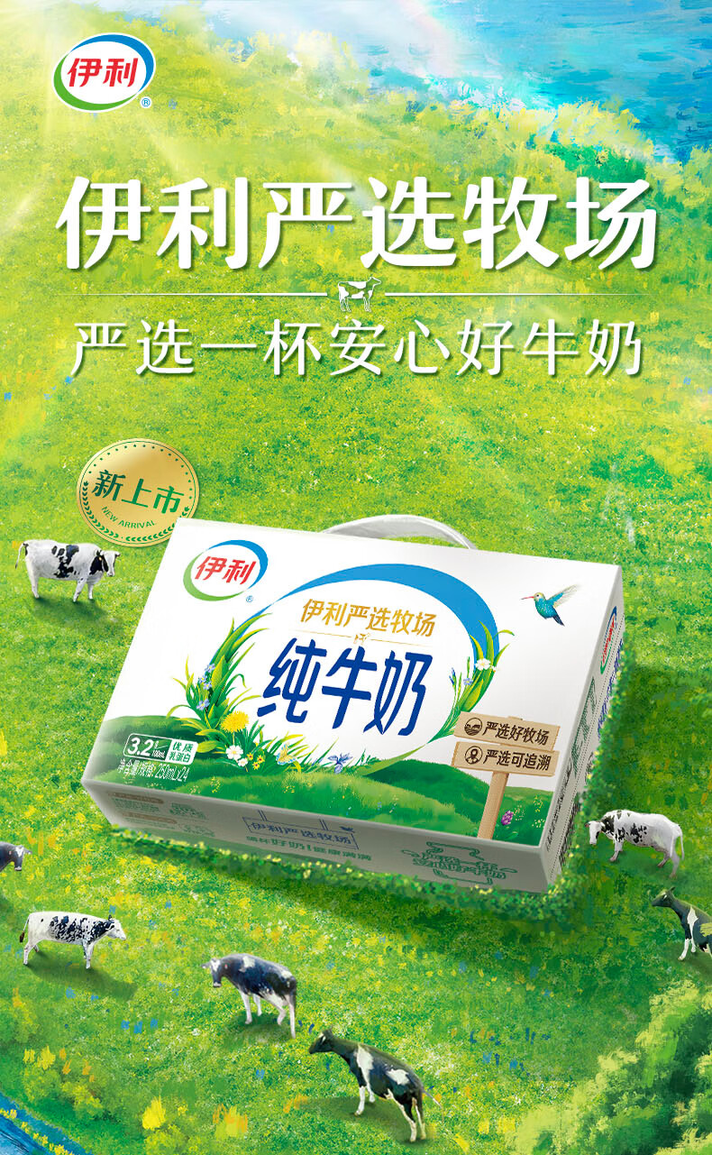 伊利纯牛奶250ml*24盒 优质乳蛋白 严选牧场 礼盒装 9-10月产
